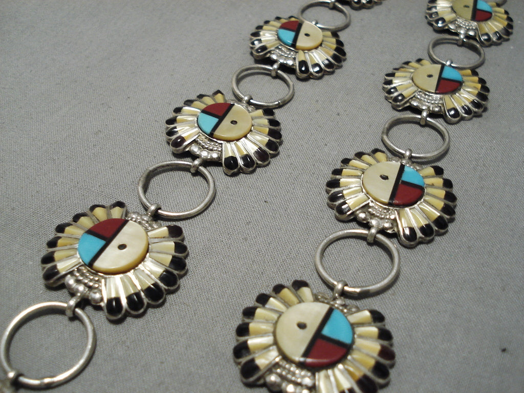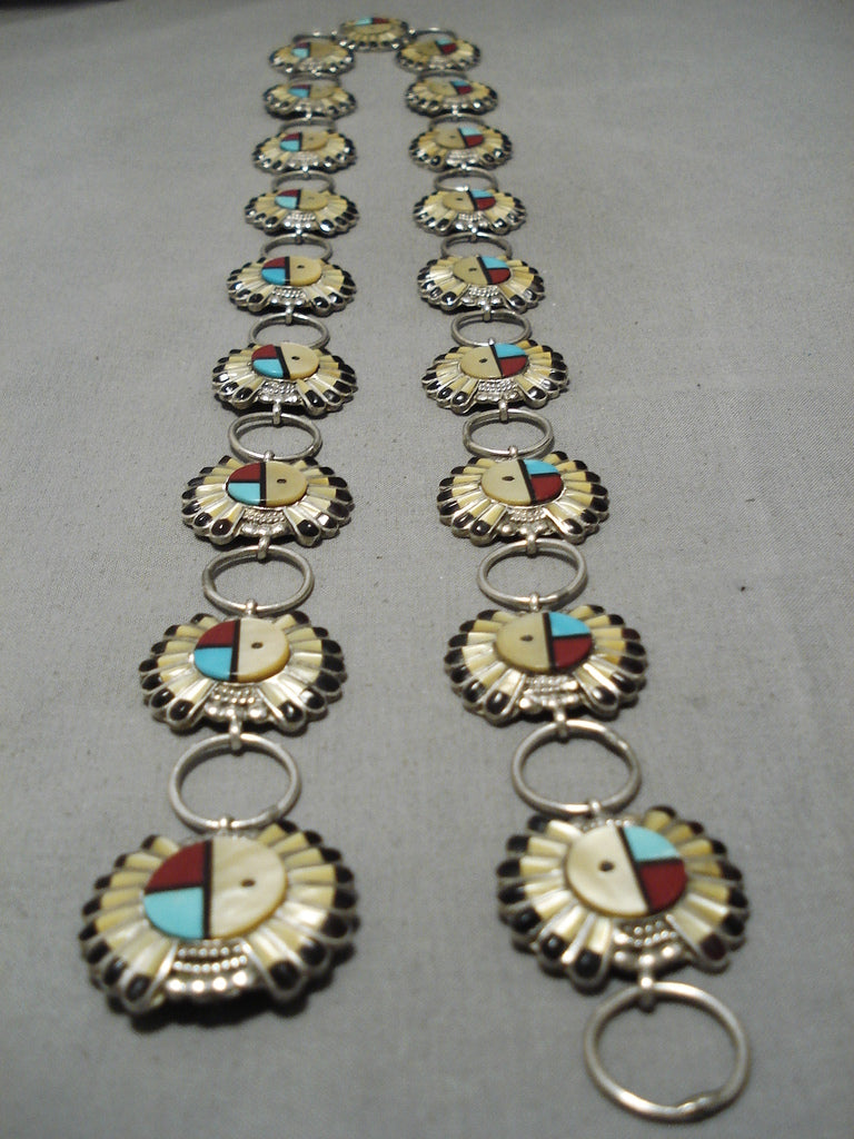 One Of Best Most Intricate Vintage Zuni Native American Turquoise Concho Belt