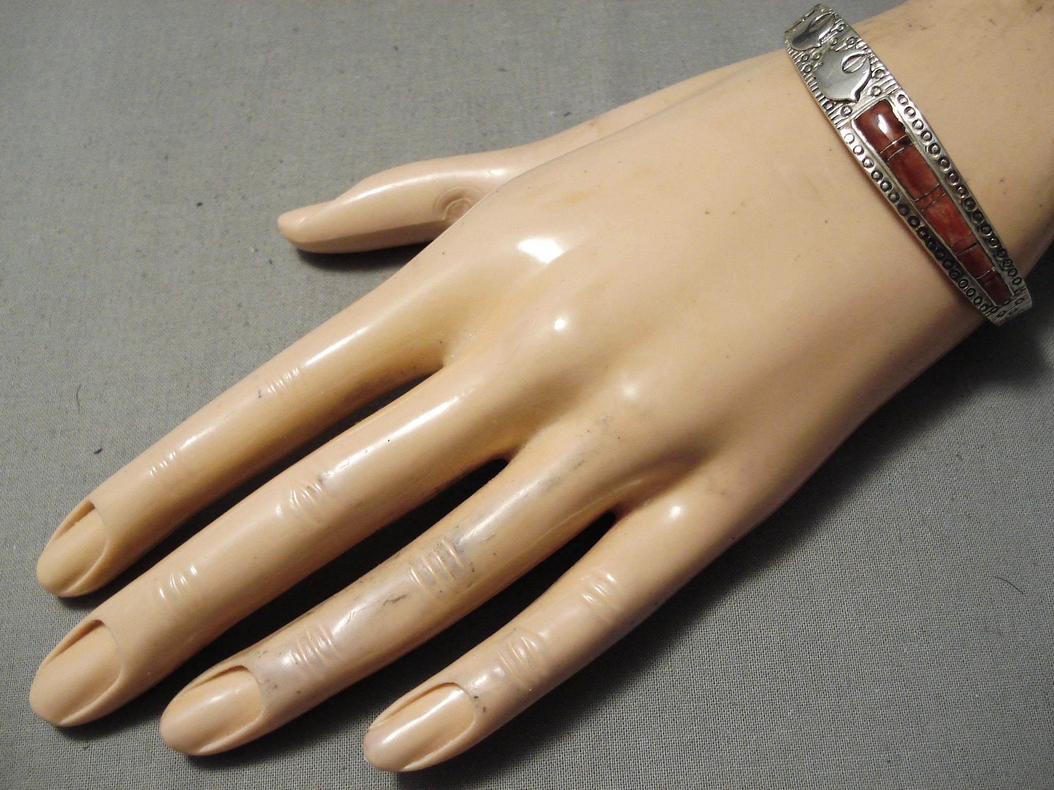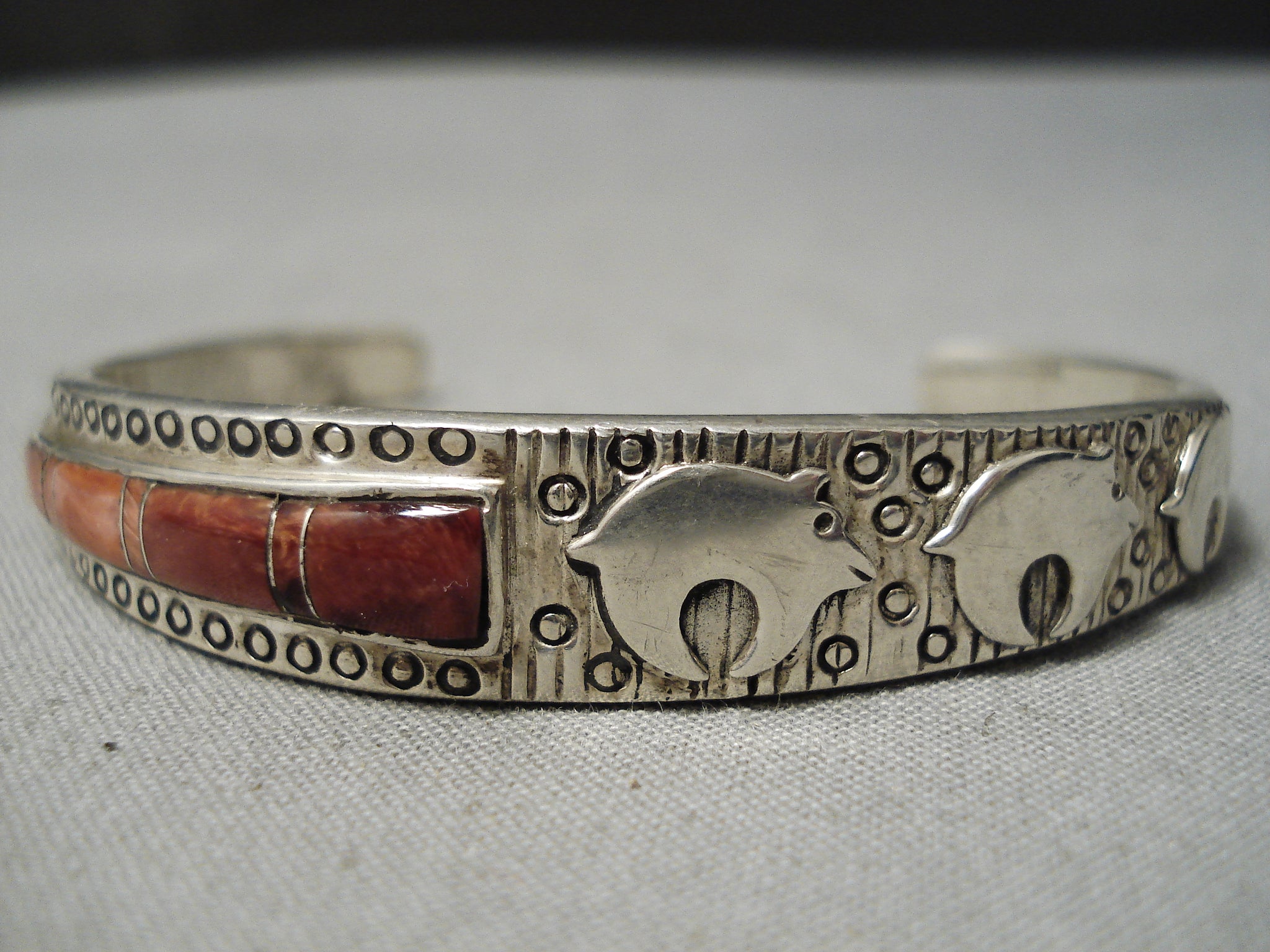 One Of Best Vintage Native American Navajo Bev Thomas Sterling Silver Inlay Bear Bracelet