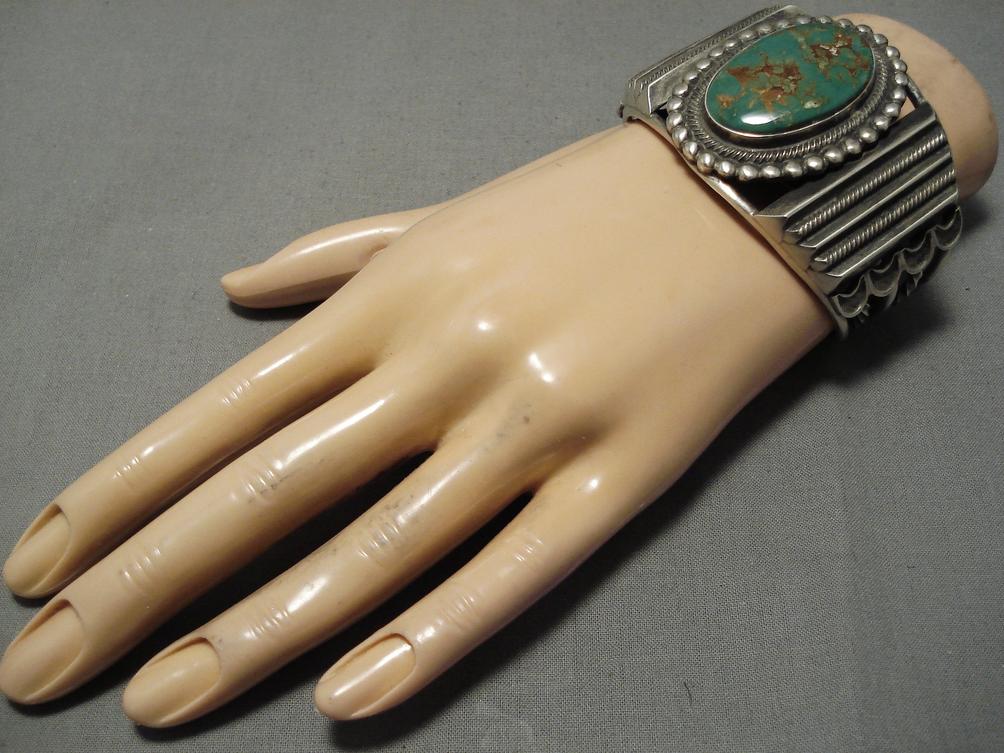 One Of Best Vintage Native American Navajo Ricky Martinez Turquoise Sterling Silver Bracelet