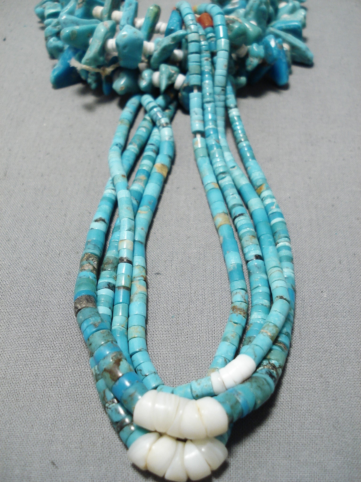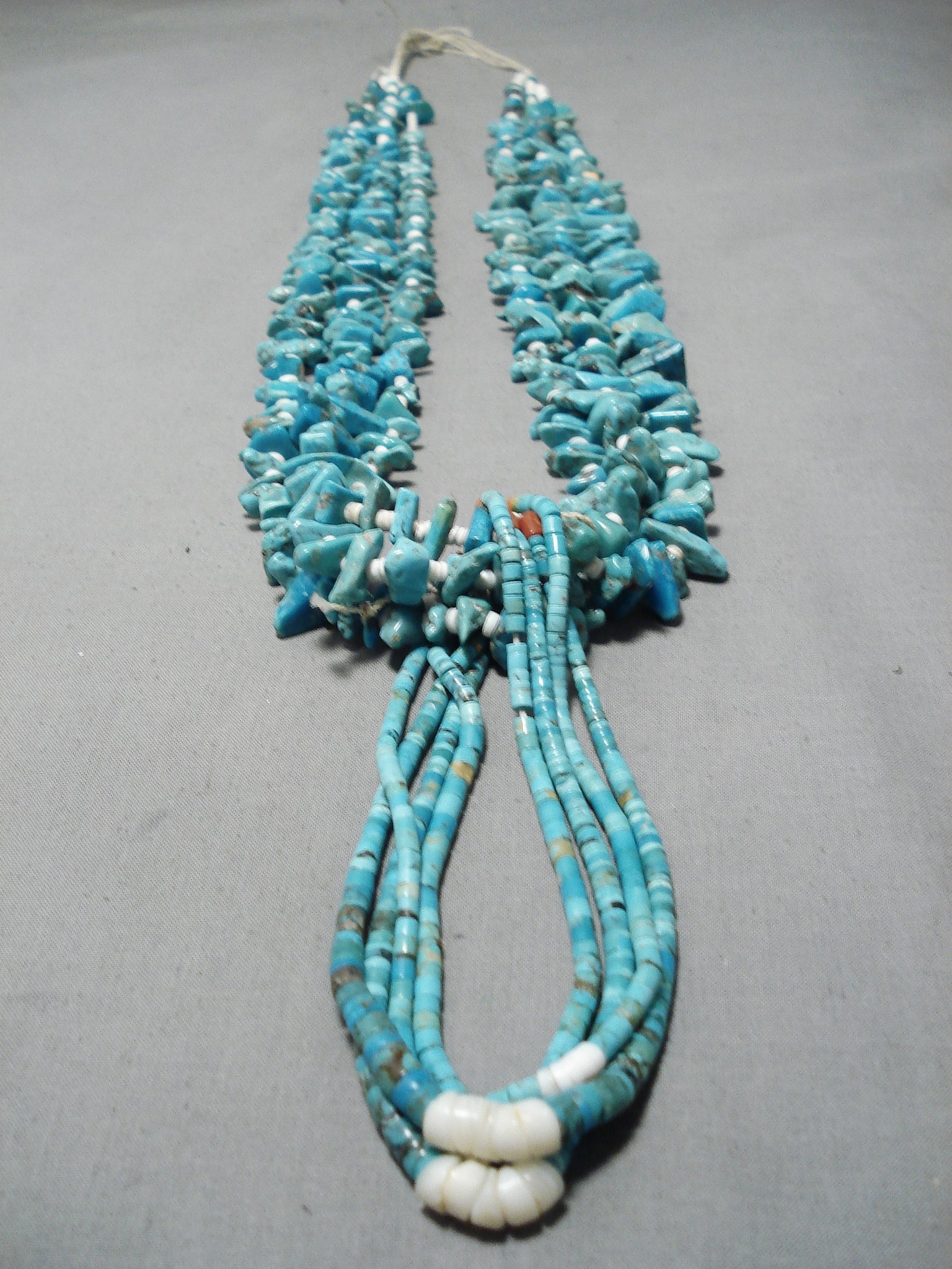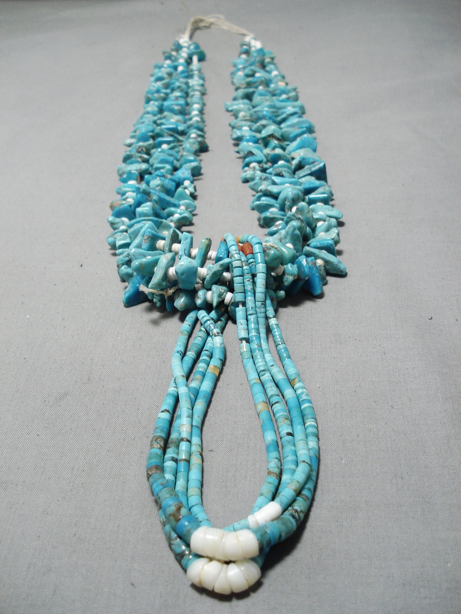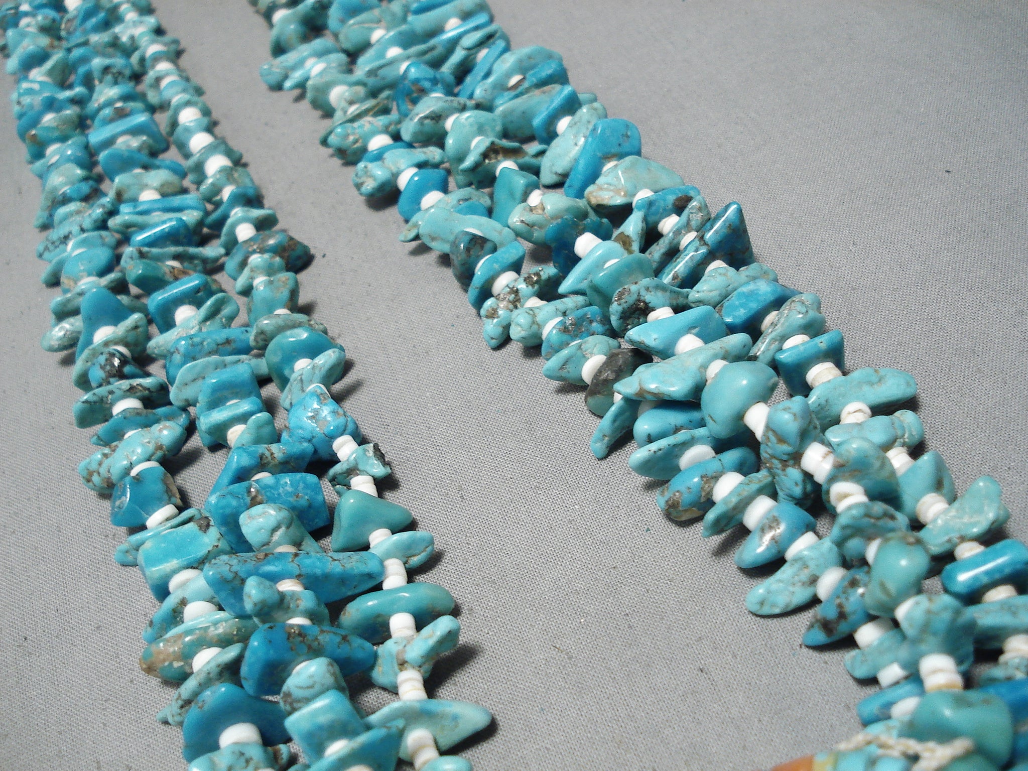 One Of Best Vintage Native American Navajo Turquoise Nugget Jacla Necklace Old