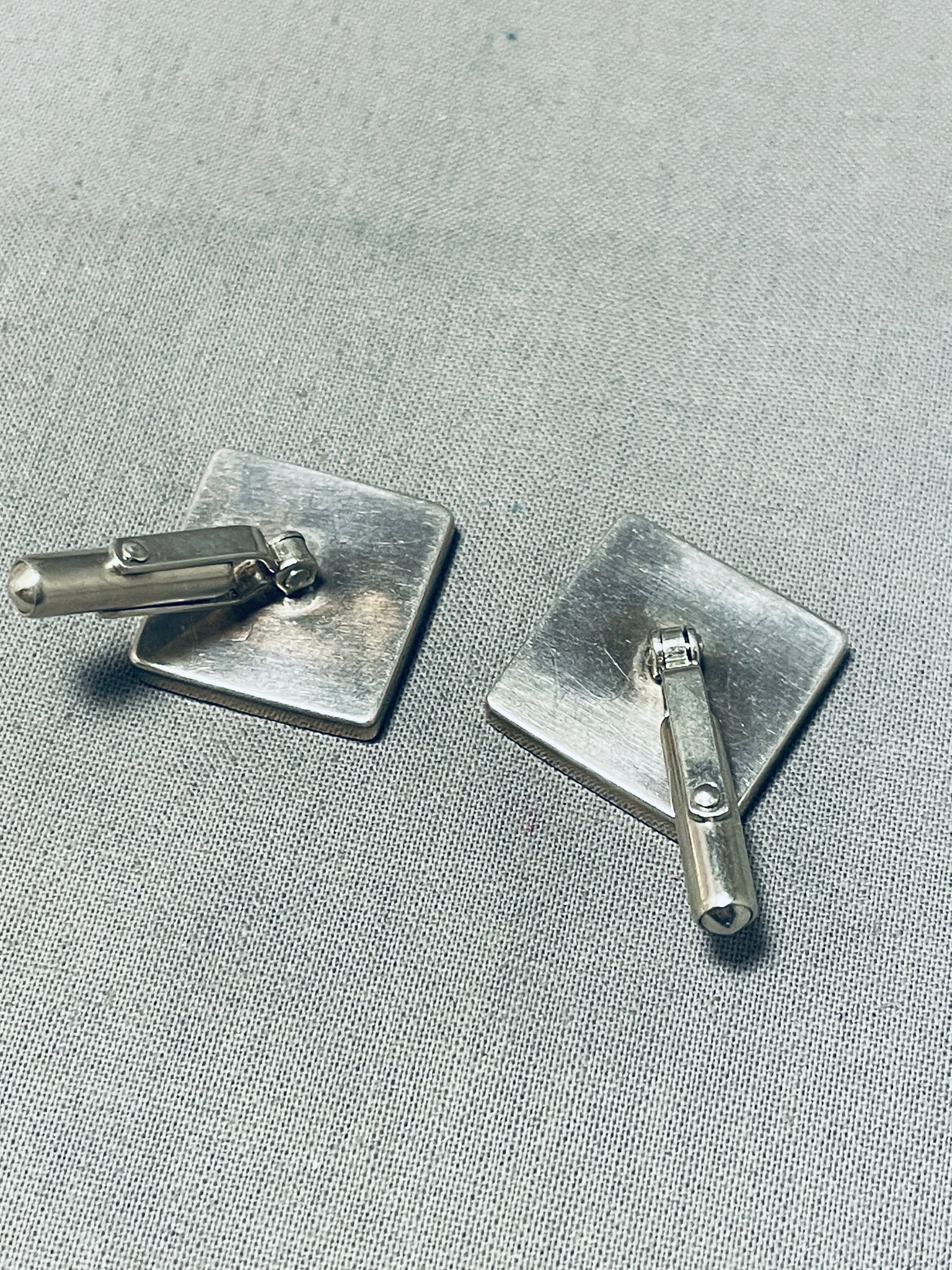 One Of Best Vintage Native American Zuni Spiderweb Turquois Einlay Sterling Silver Cufflinks
