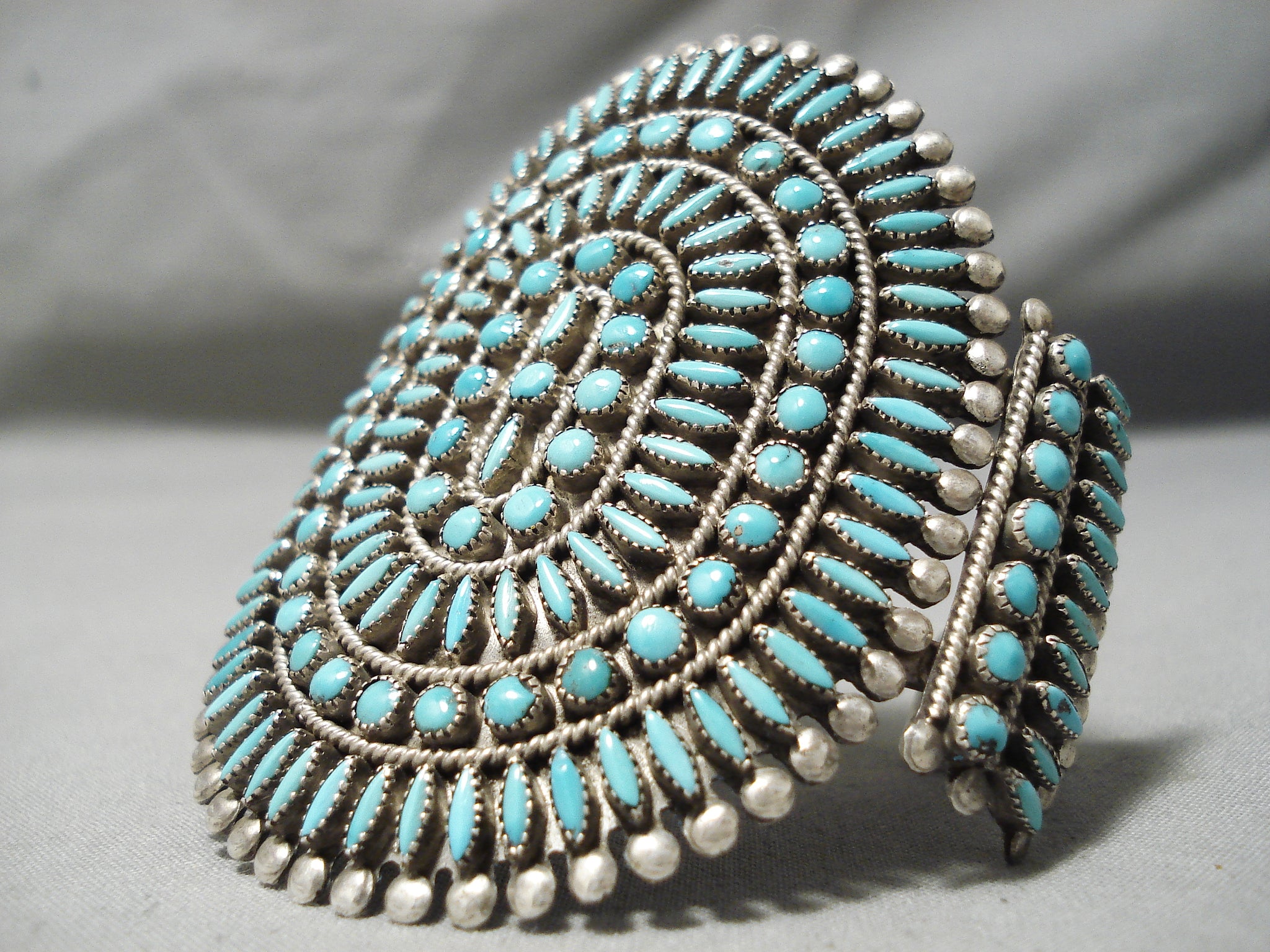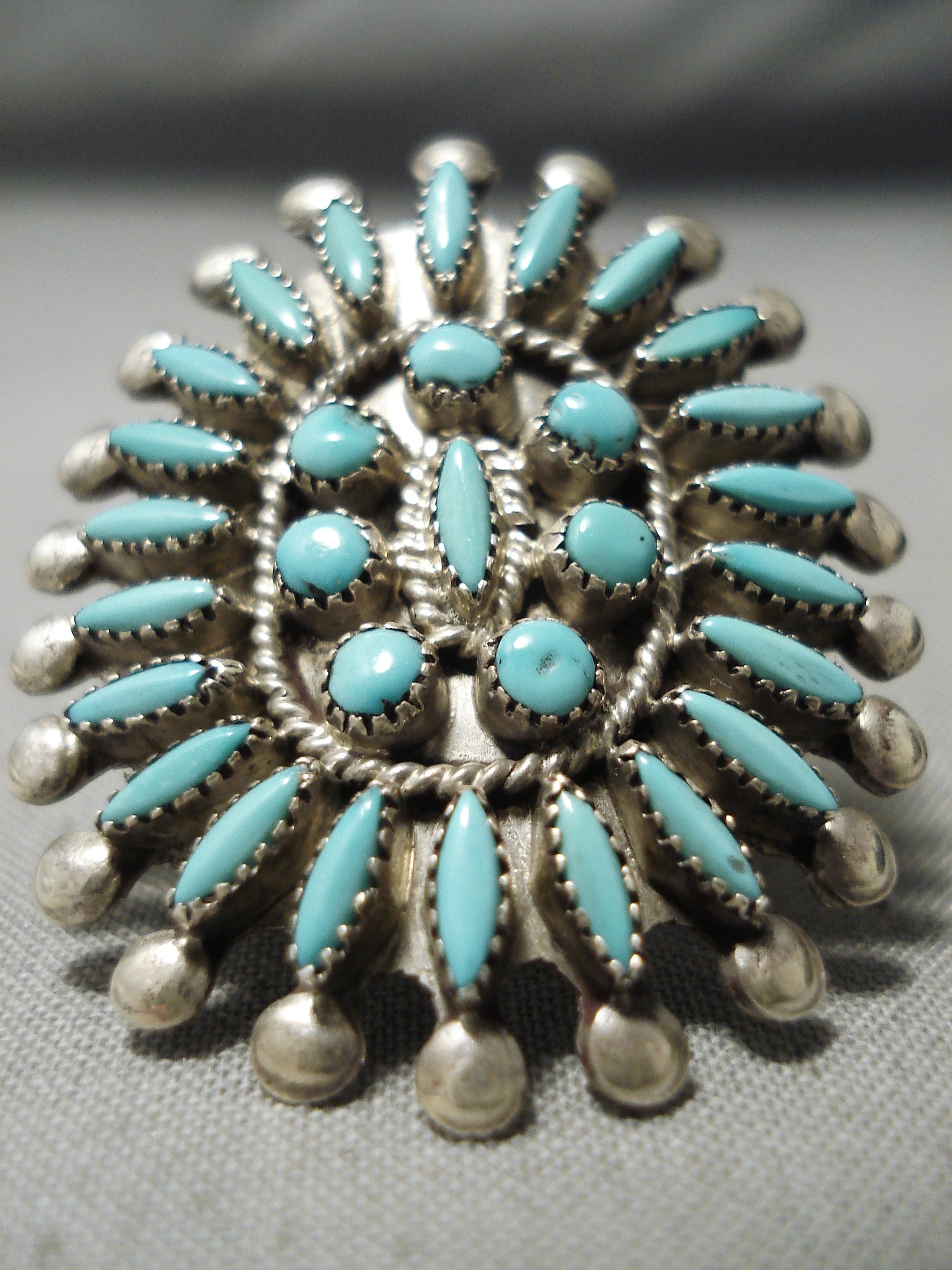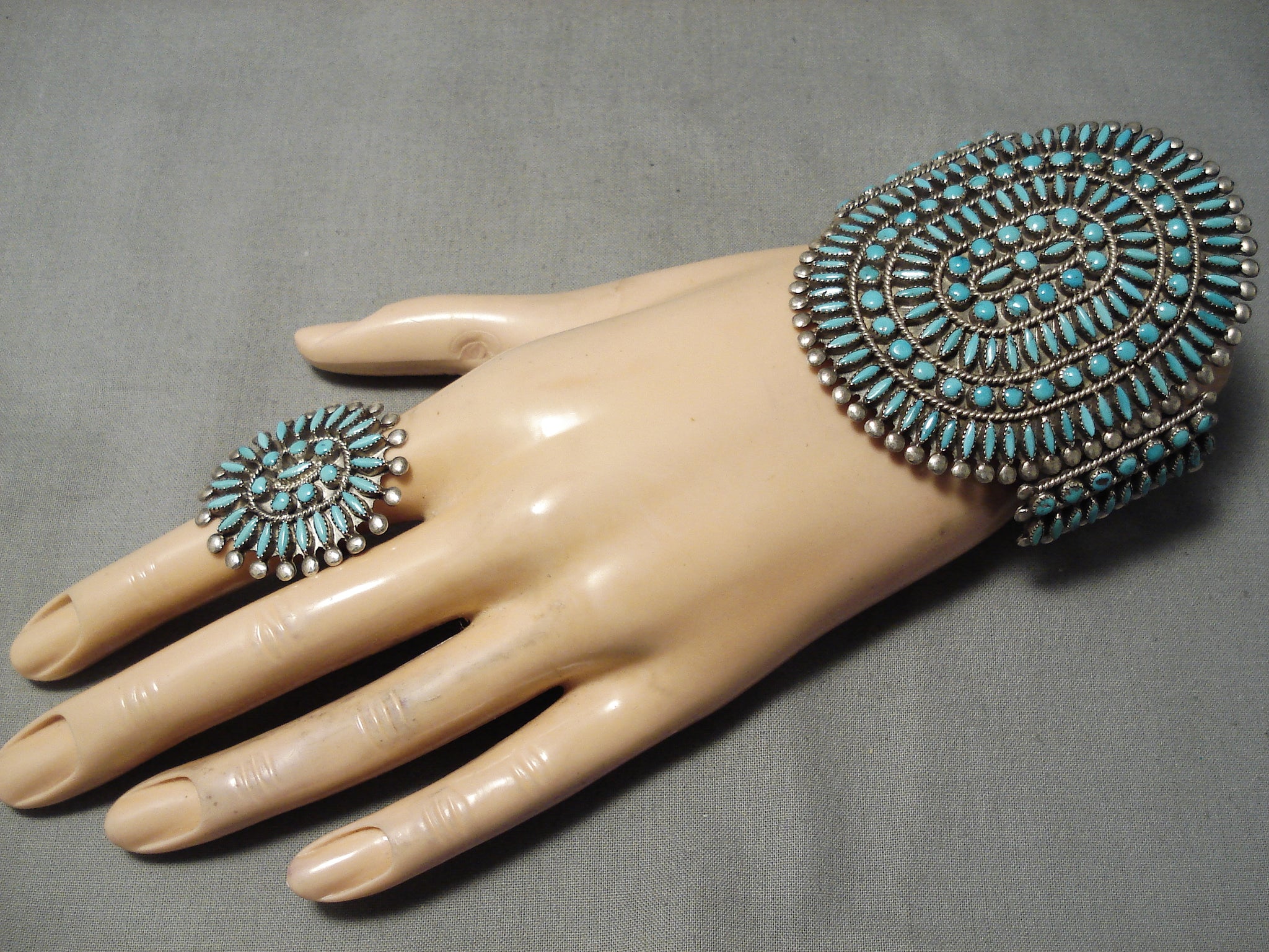 One Of Best Vintage Native American Zuni Turquoise Sterling Silver Bracelet Ring Set