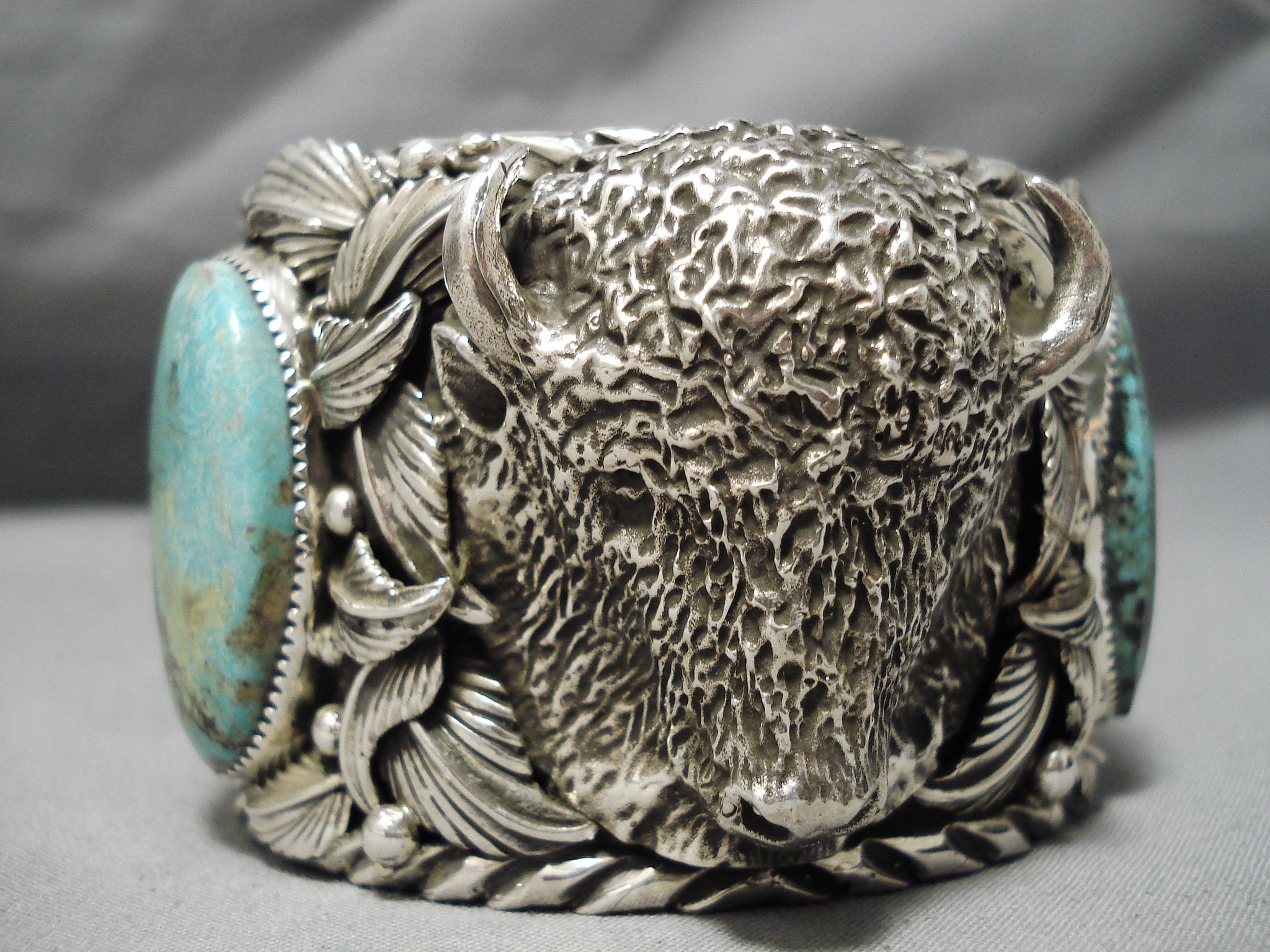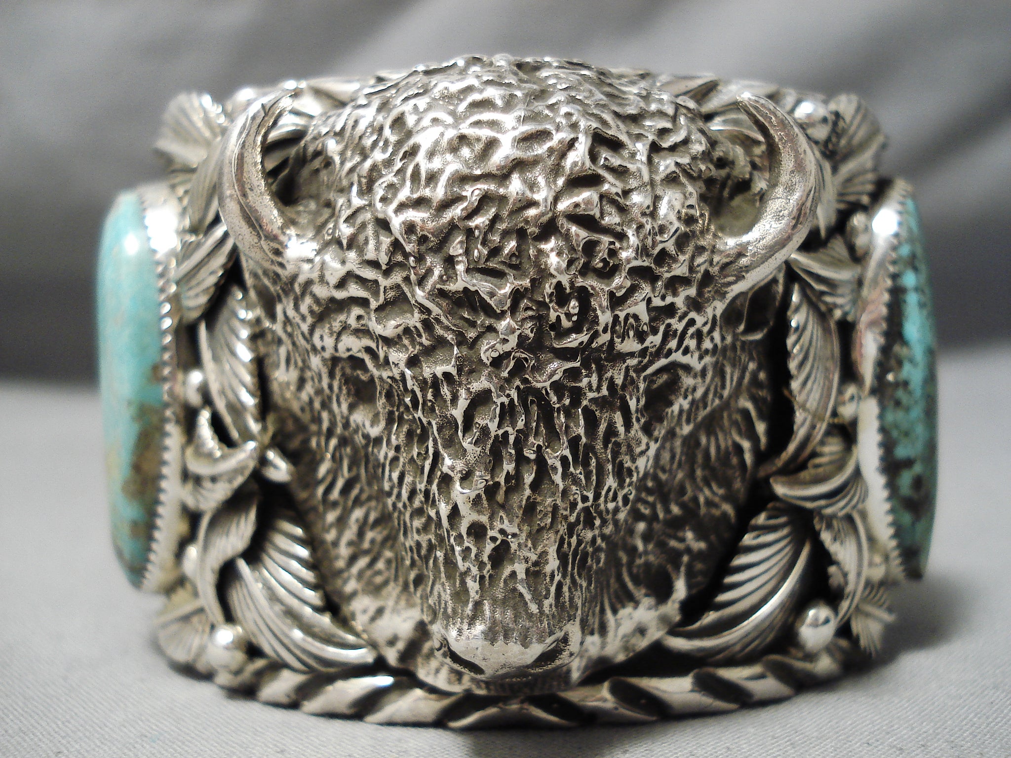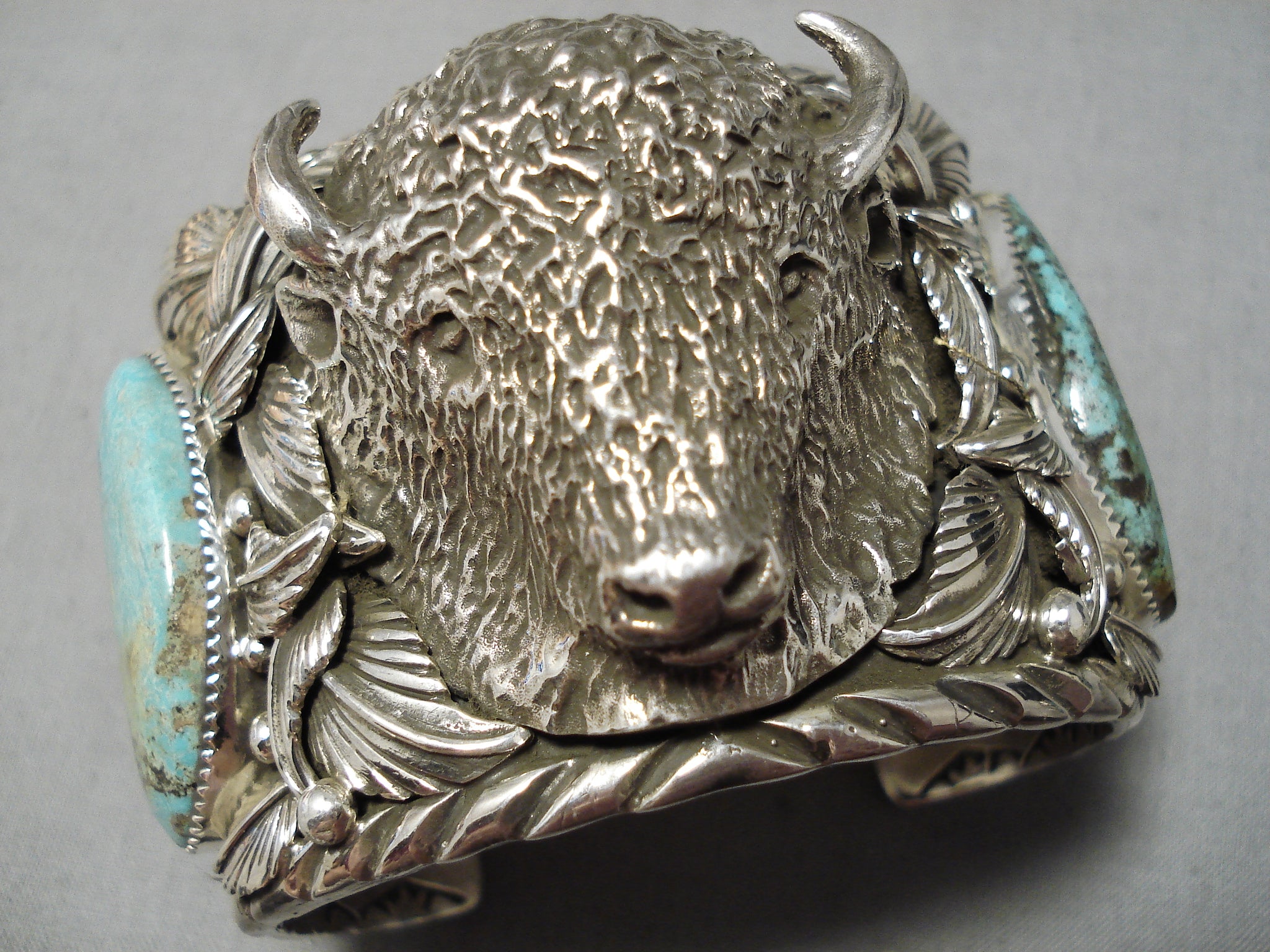 One Of Biggest Best Heavy Native American Navajo Buffalo Turquoise Sterling Silver Bracelet