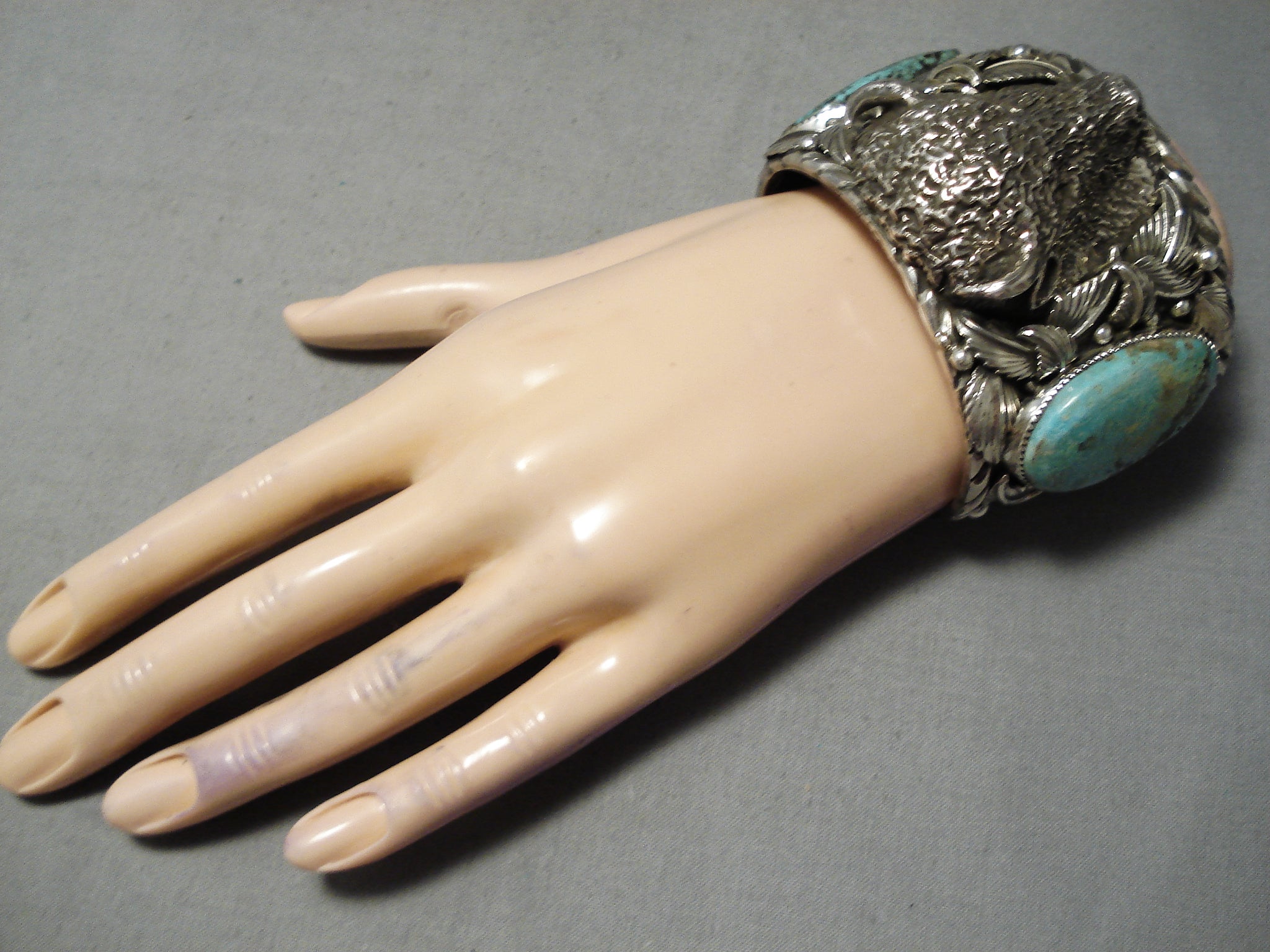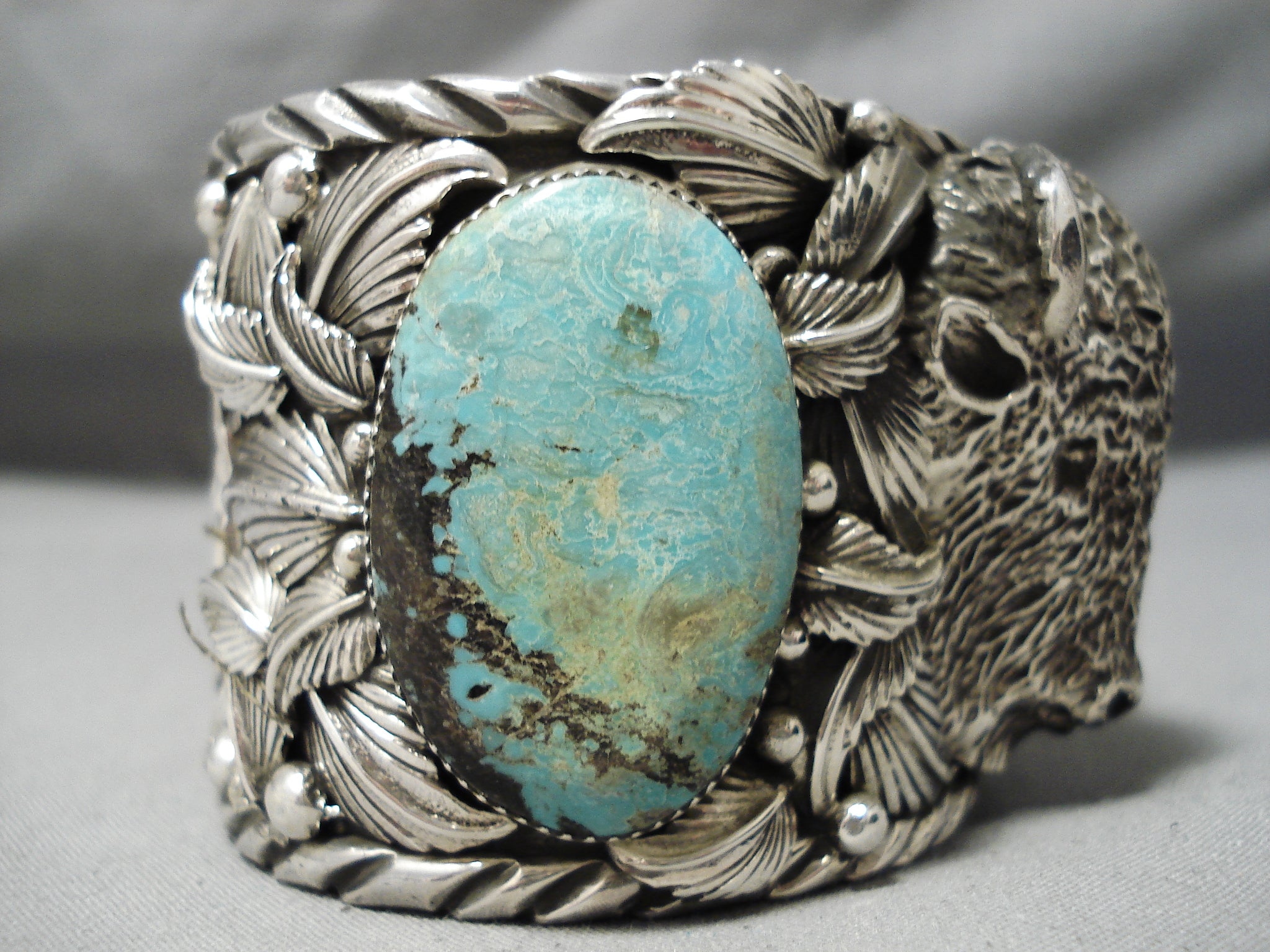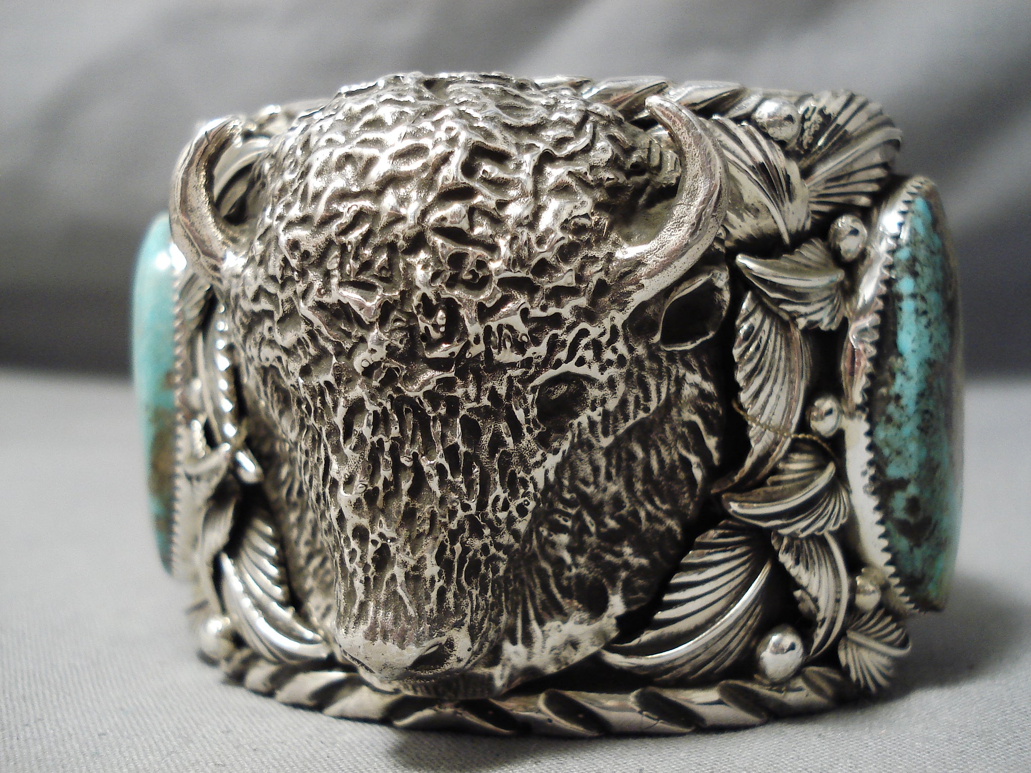 One Of Biggest Best Heavy Native American Navajo Buffalo Turquoise Sterling Silver Bracelet
