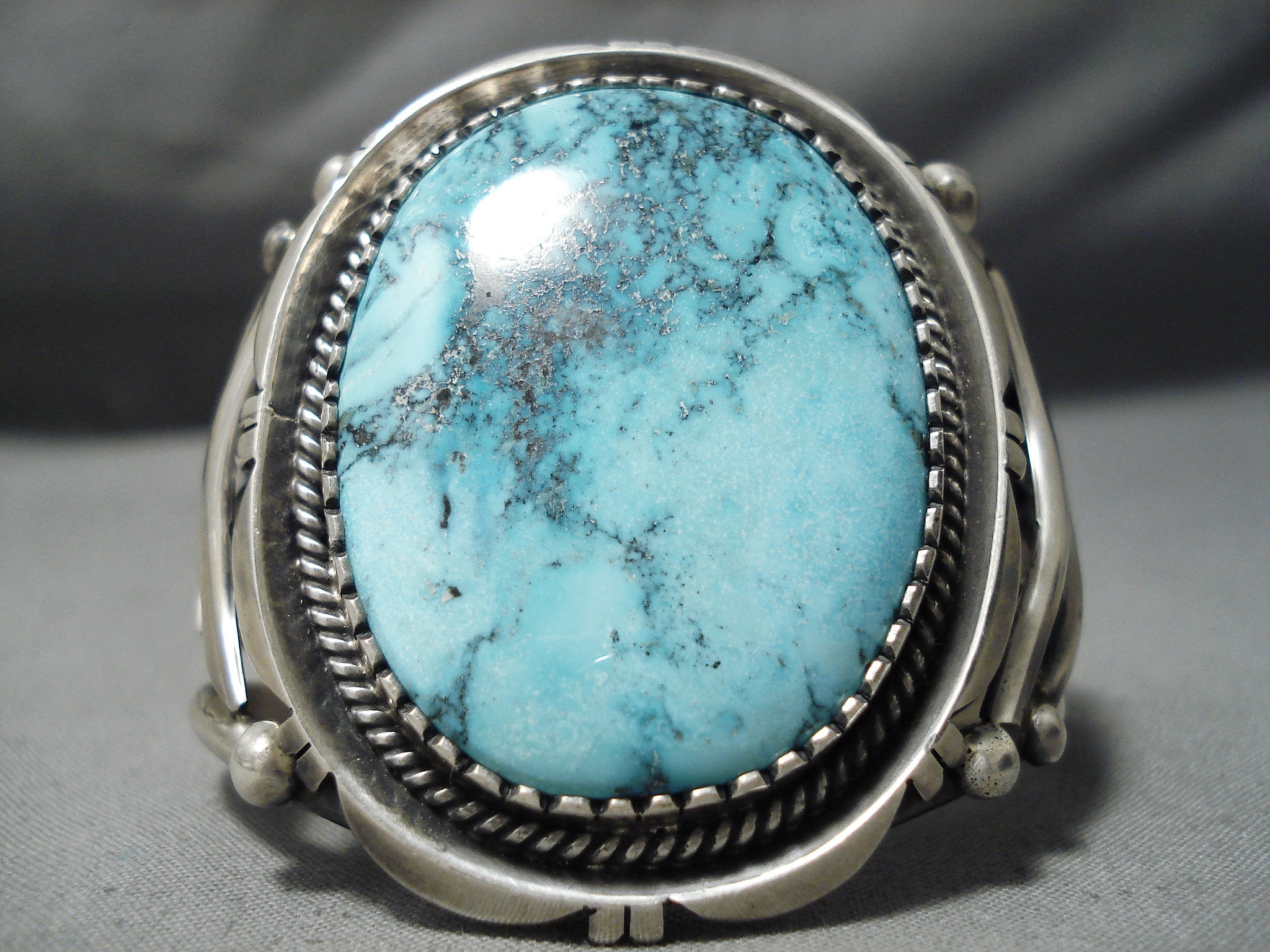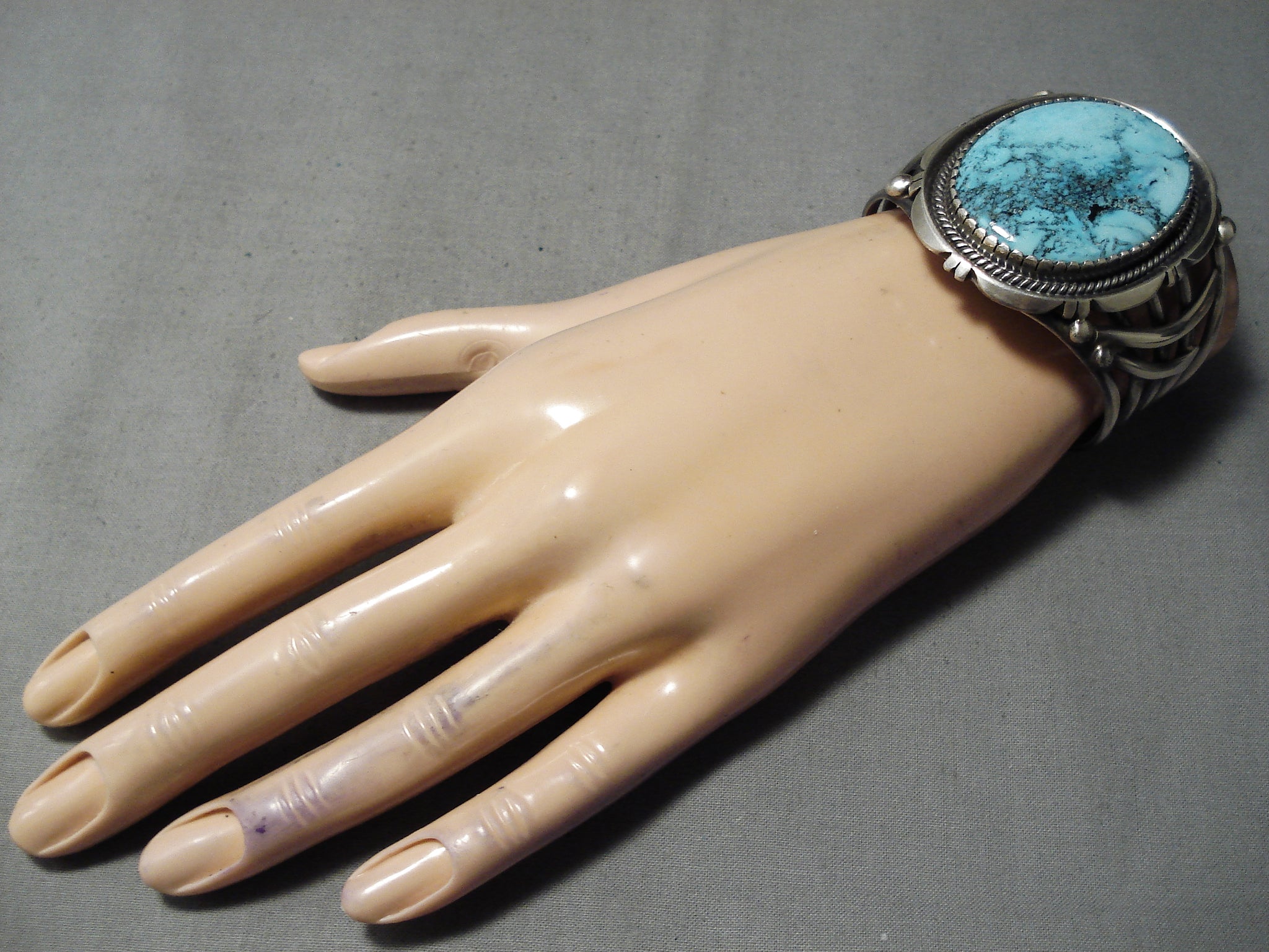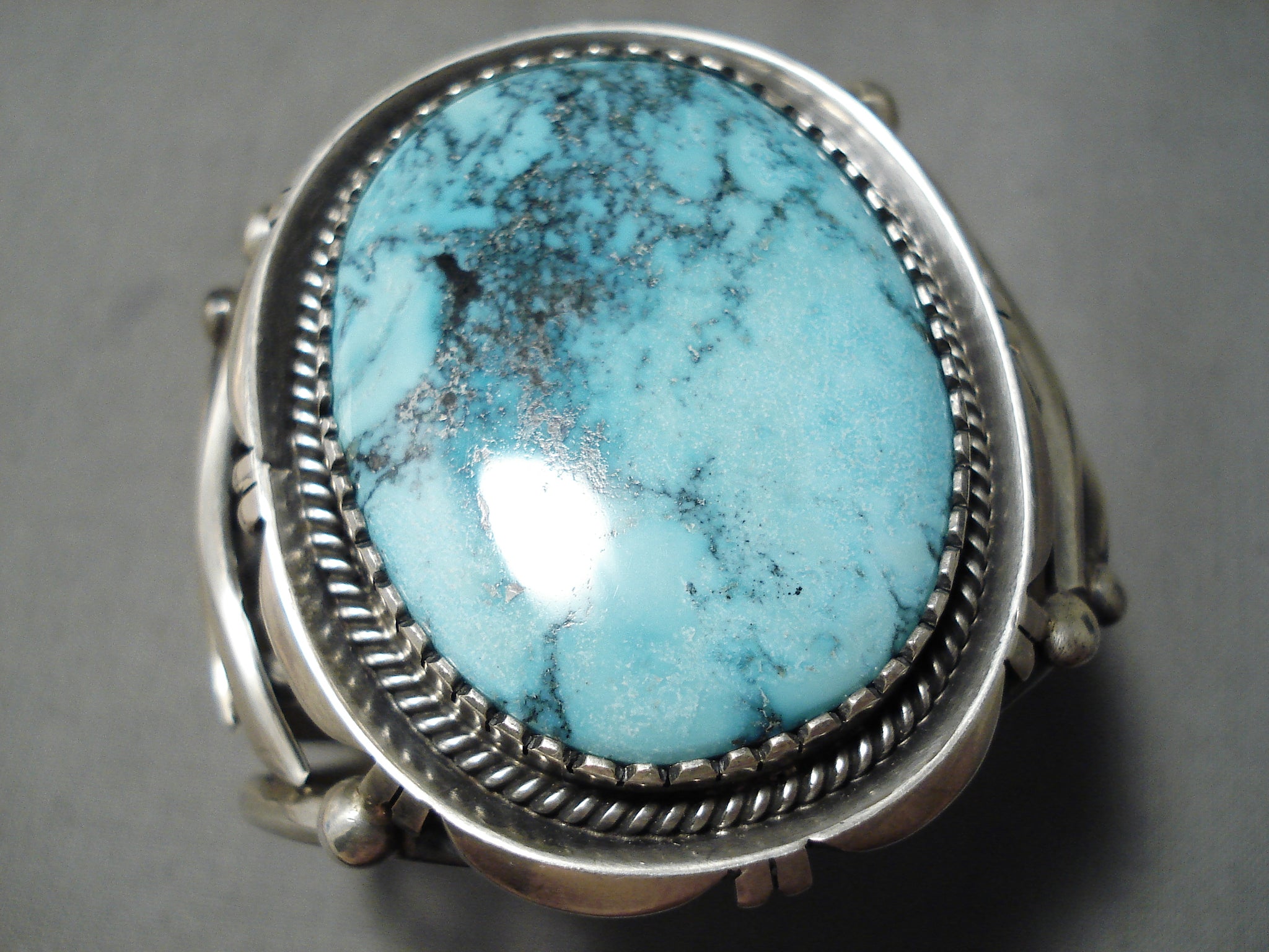 One Of Biggest Best Vintage Native American Navajo Verdy Jake Turquoise Sterling Silver Bracelet