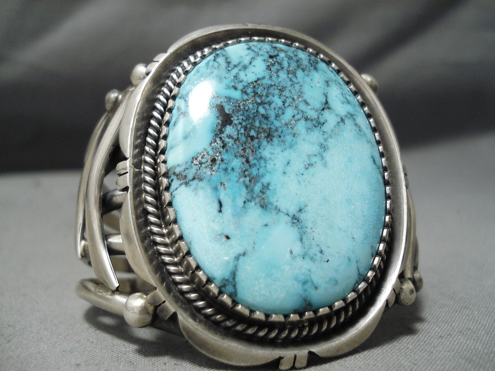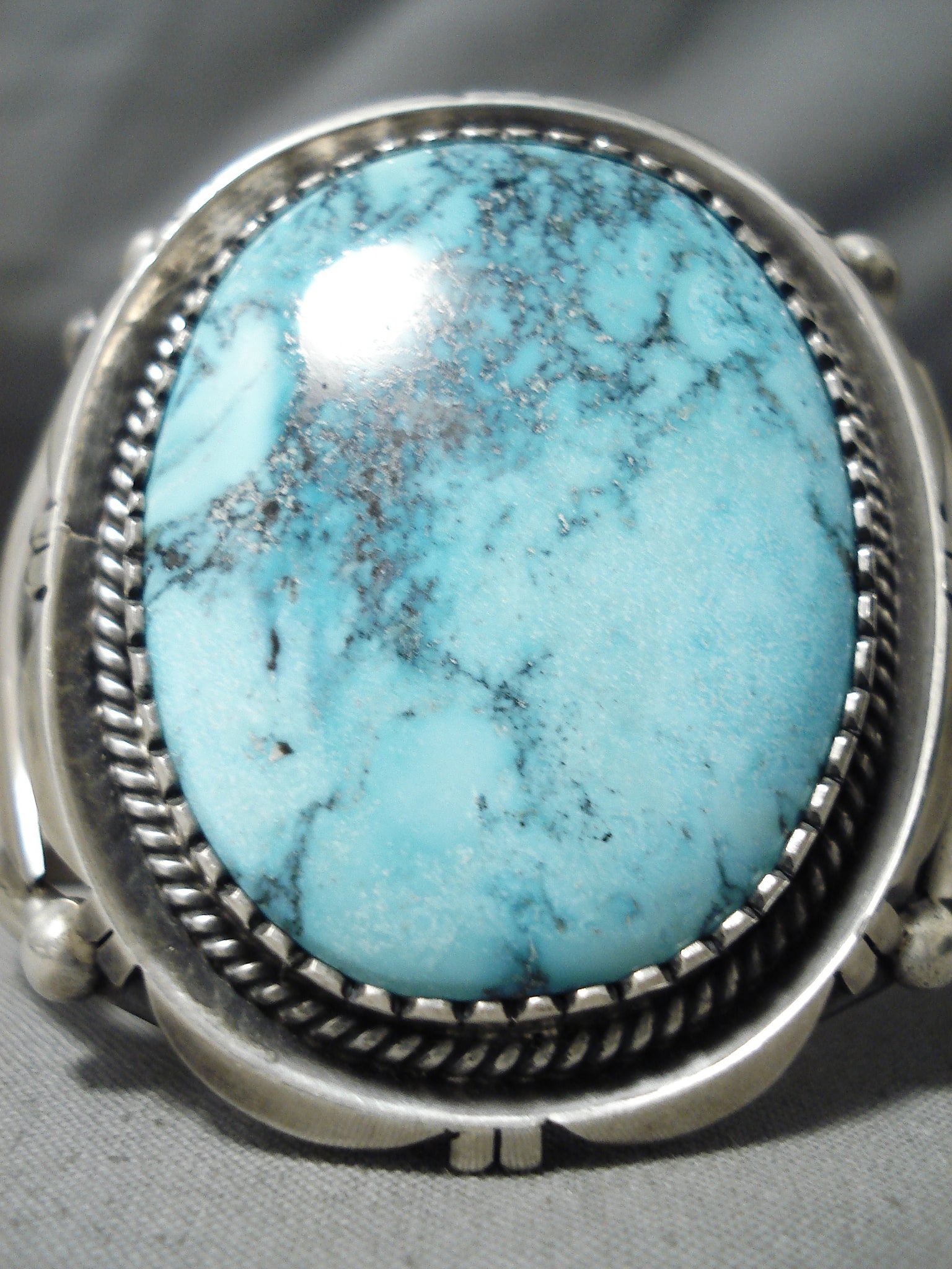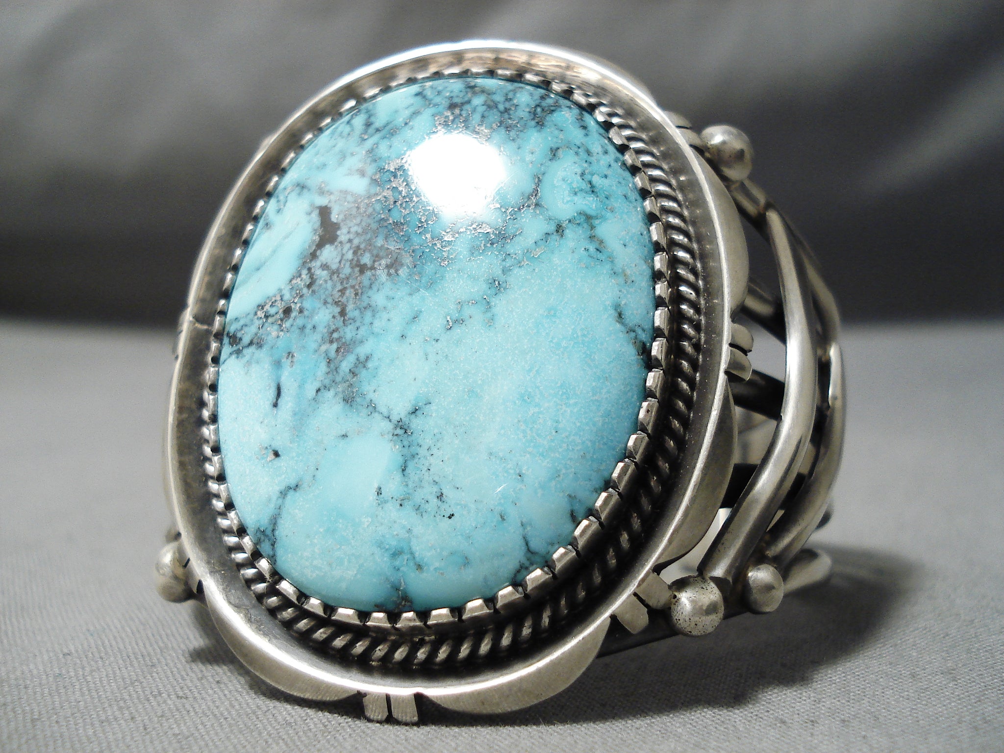 One Of Biggest Best Vintage Native American Navajo Verdy Jake Turquoise Sterling Silver Bracelet