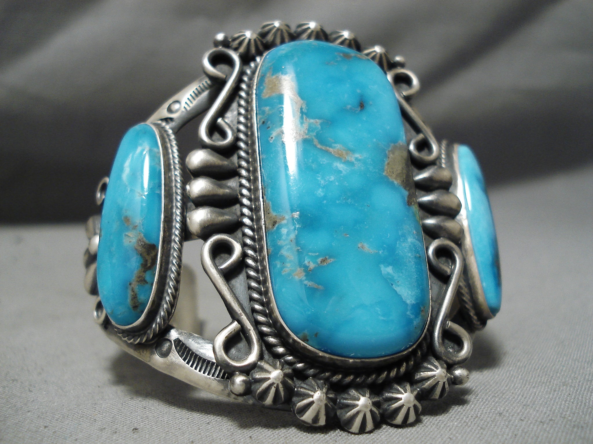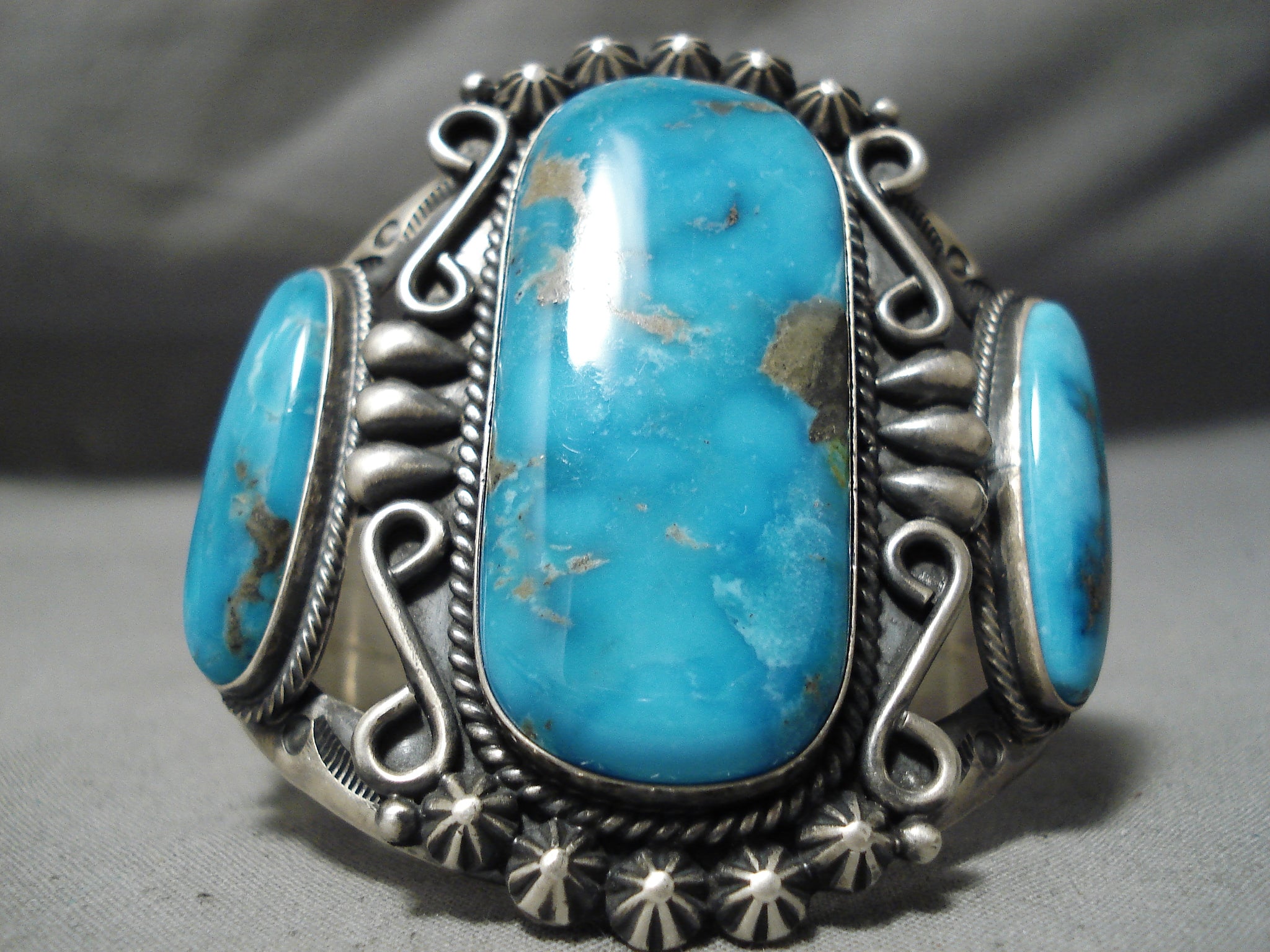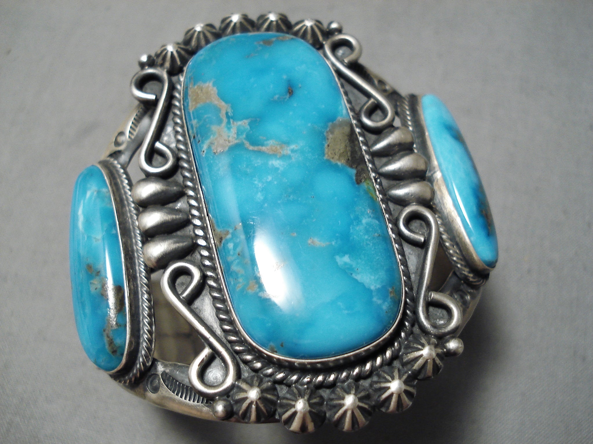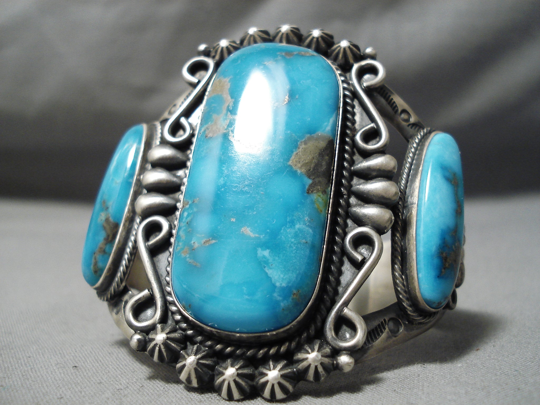 One Of Biggest Vintage Native American Navajo Blue Diamond Turquoise Sterling Silver Bracelet