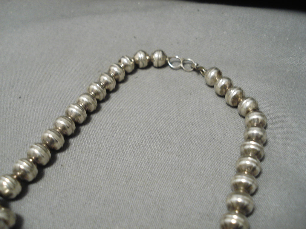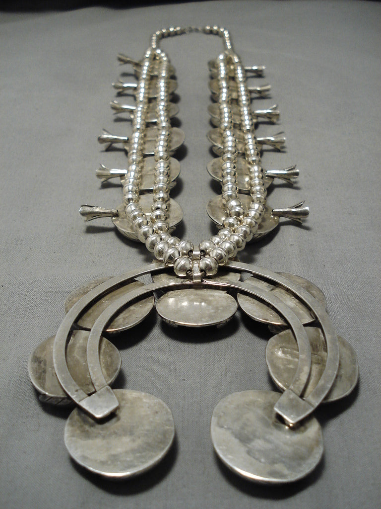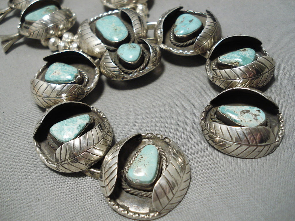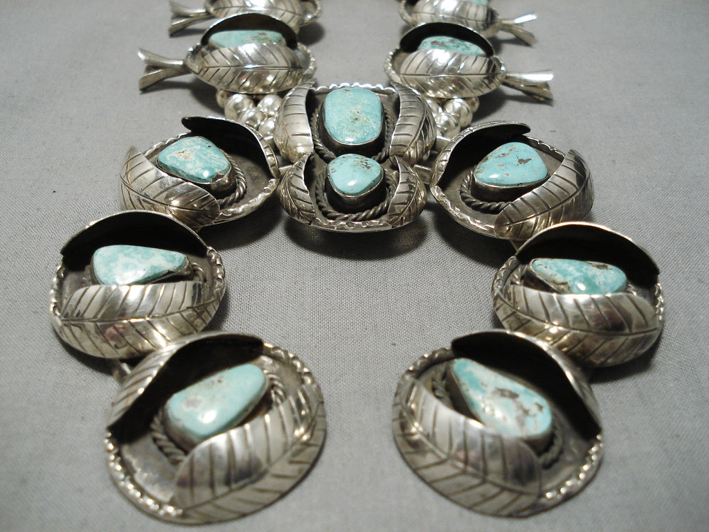 One Of Biggest Vintage Native American Navajo Turquoise Sterling Silver Squash Blossom Necklace