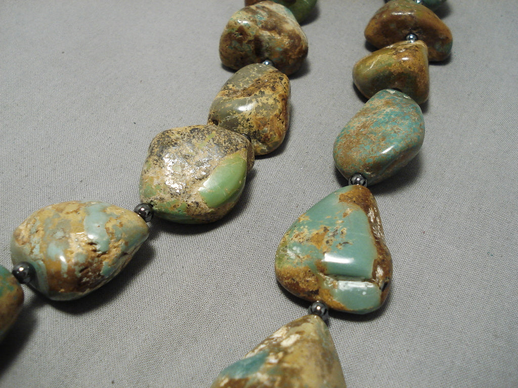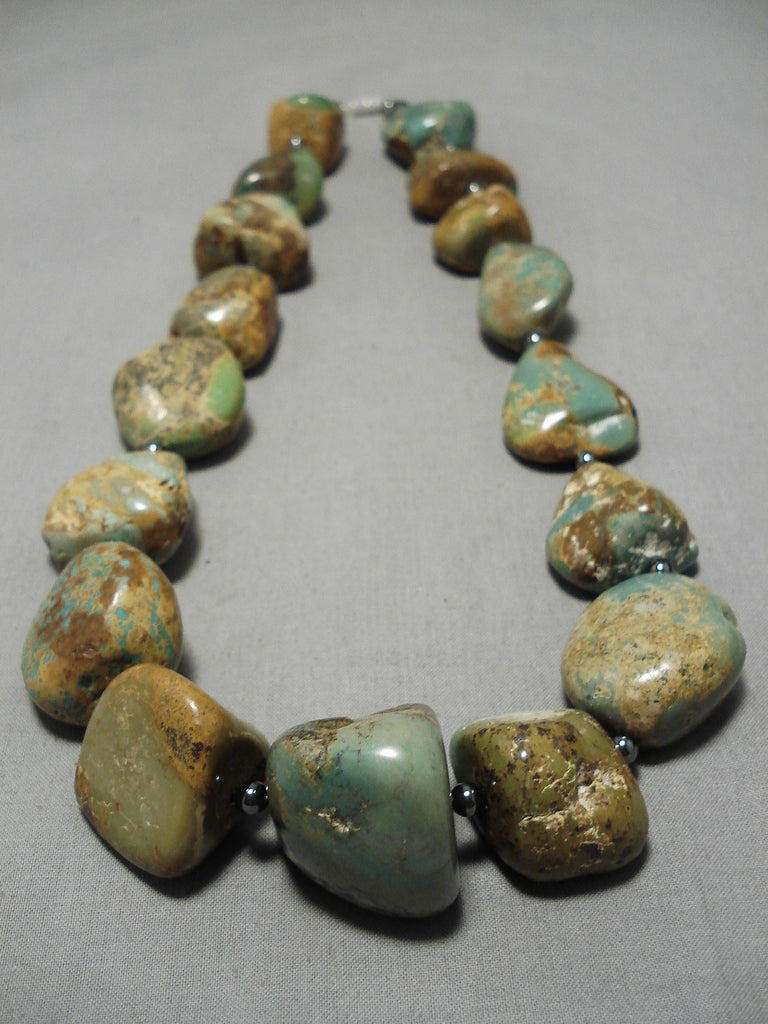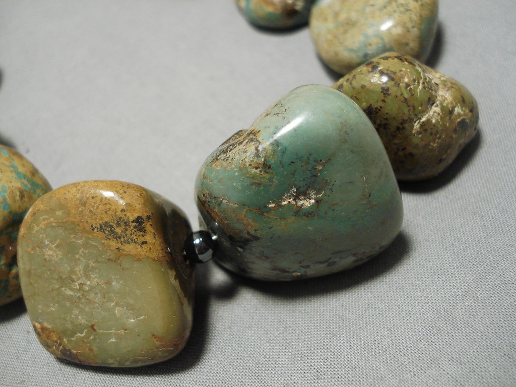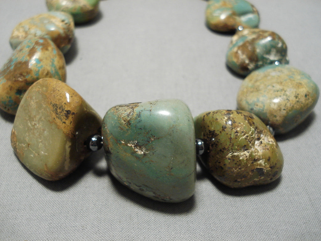 One Of Largest Vintage Native American Navajo Royston Turquoise Nugget Sterling Silver Necklace