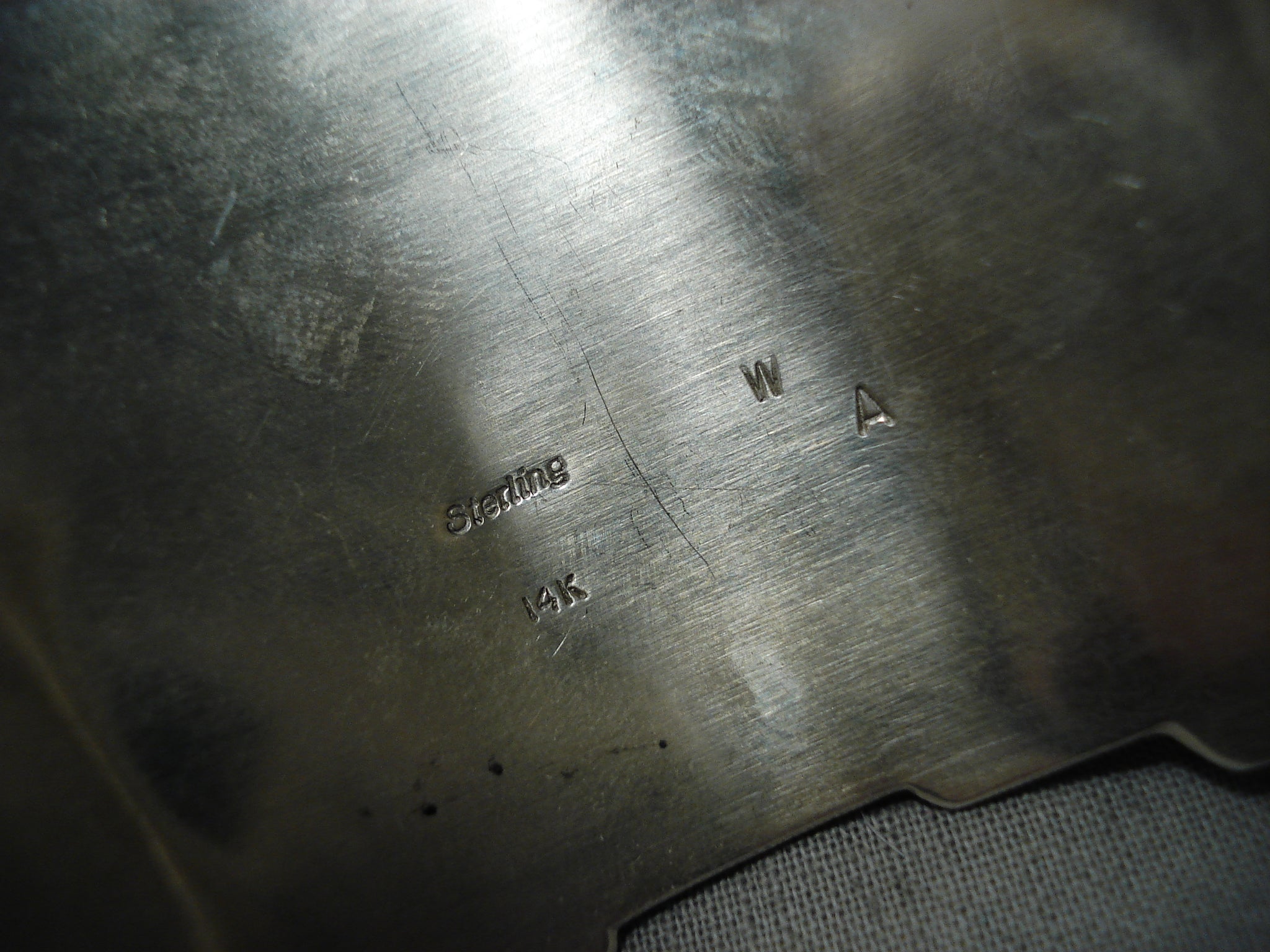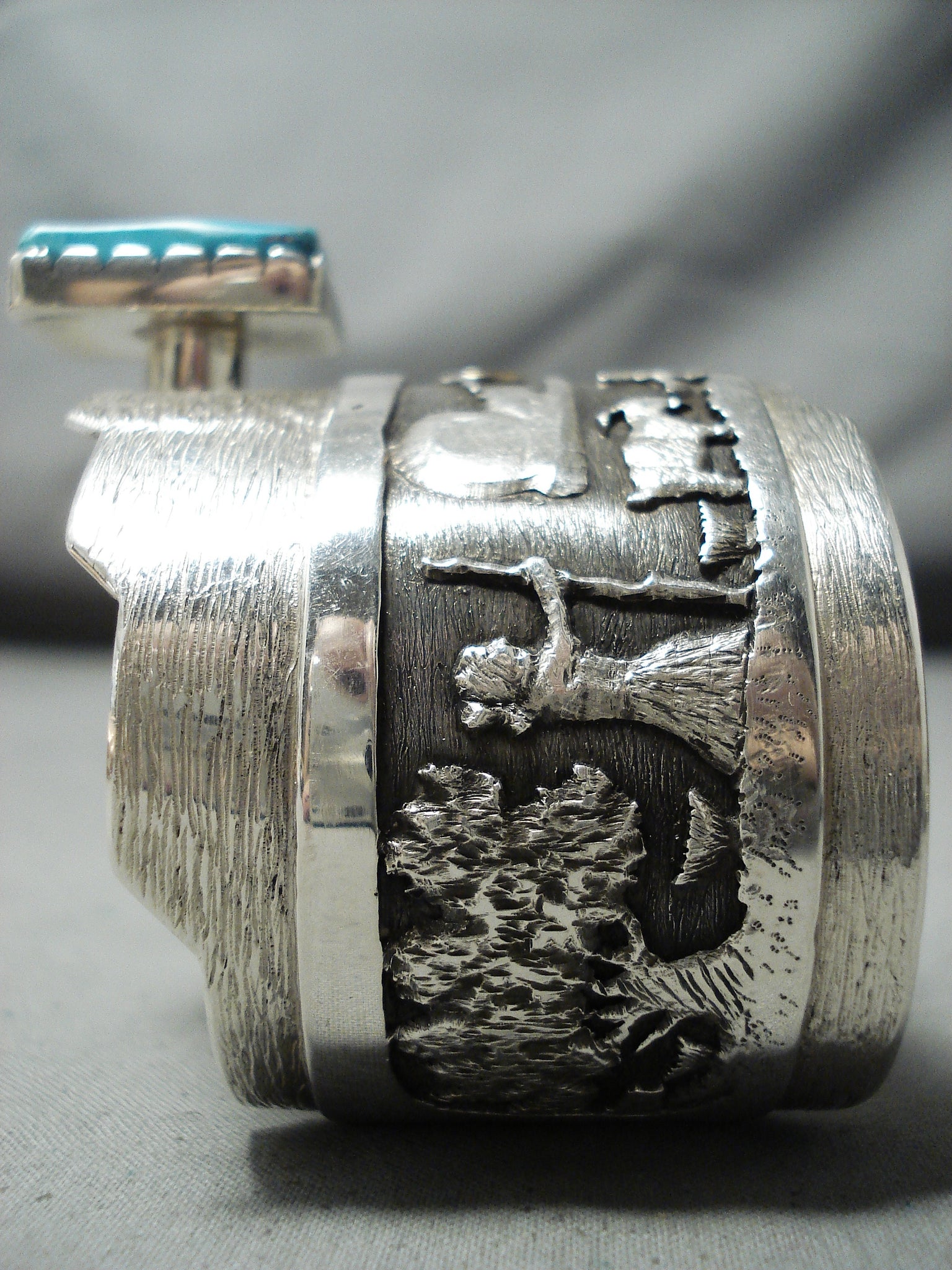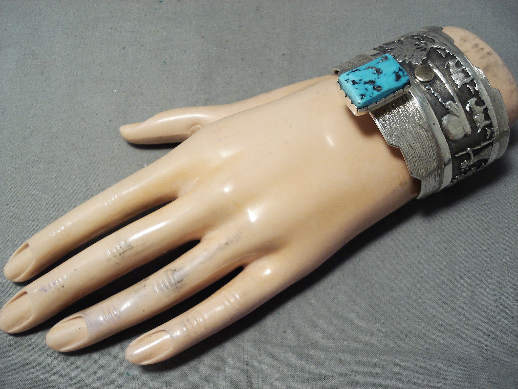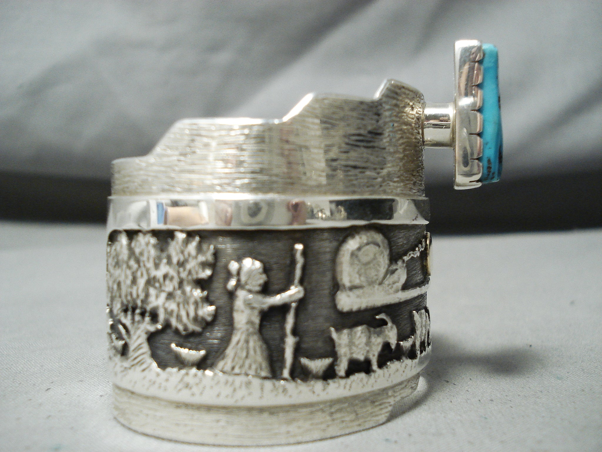One Of Most Detailed Vintage Native American Navajo Turquoise 14k Gold Sterling Silver Bracelet