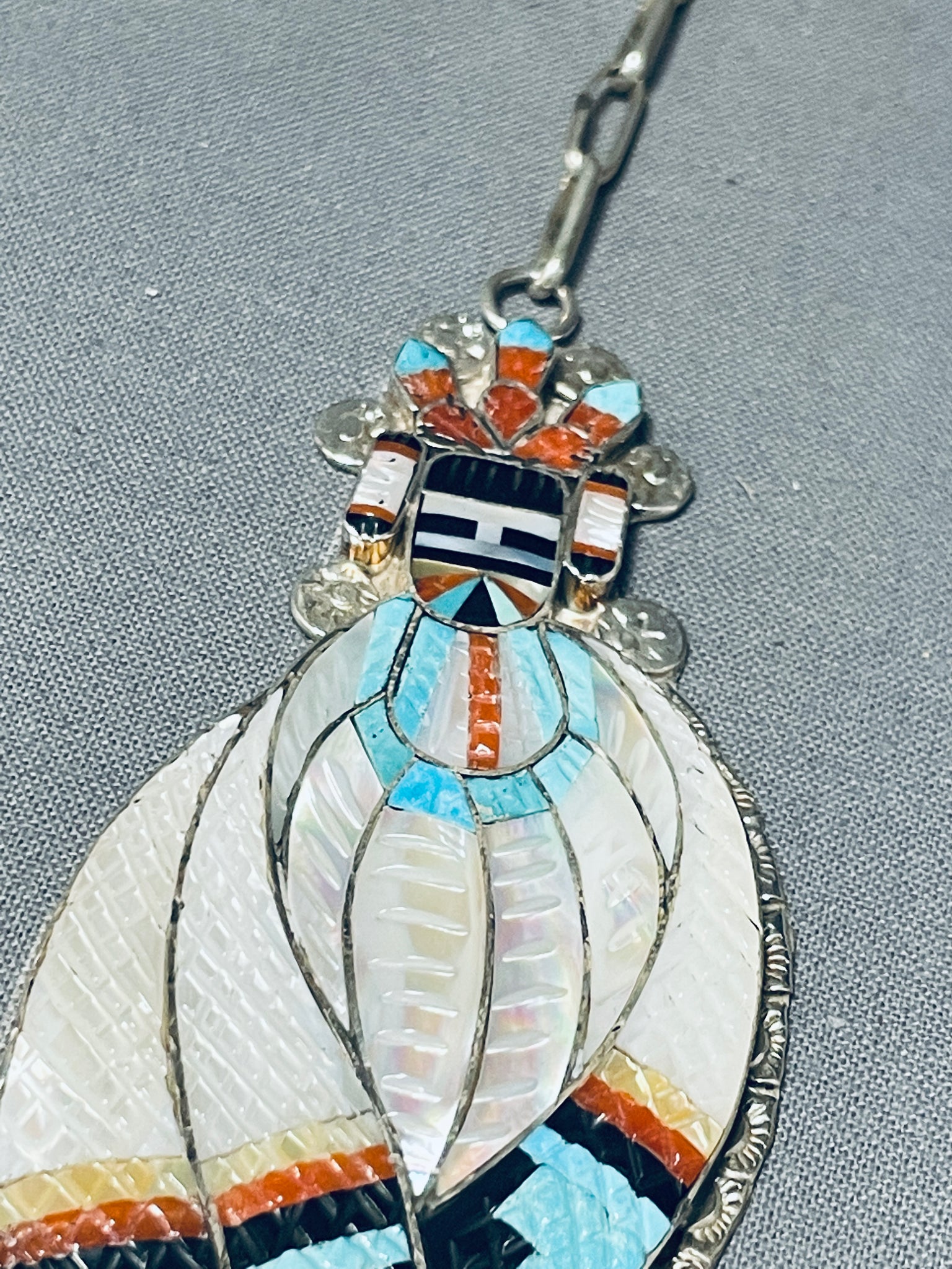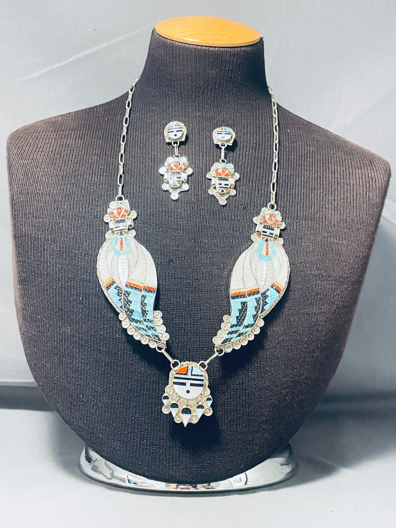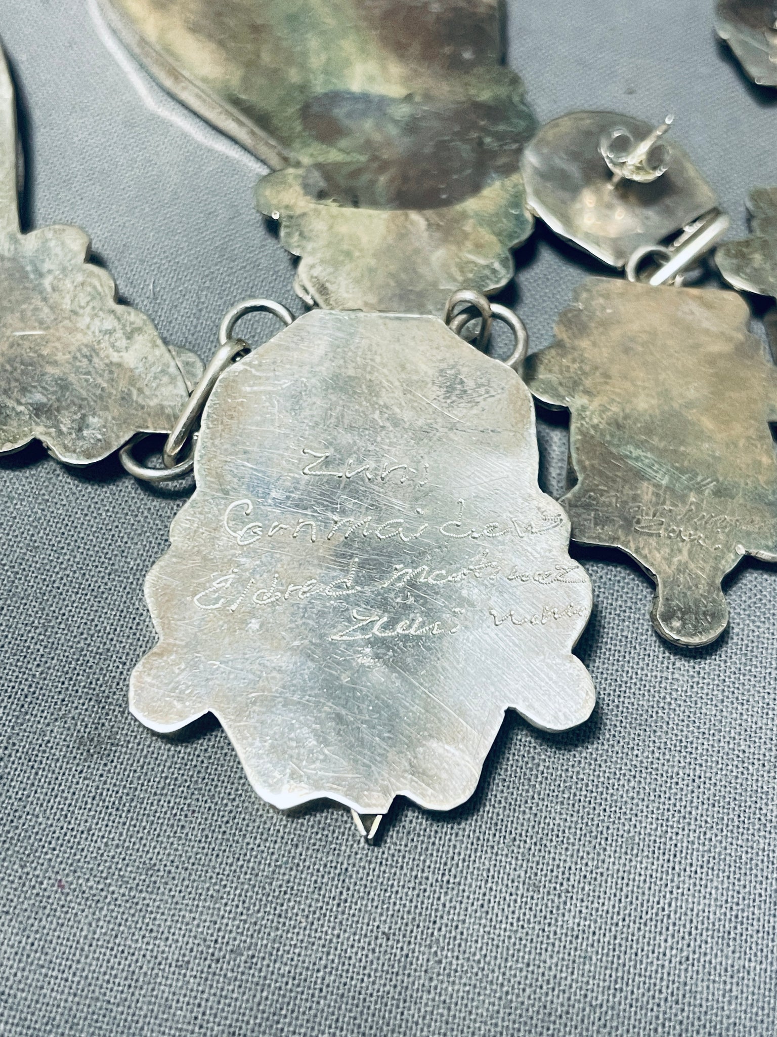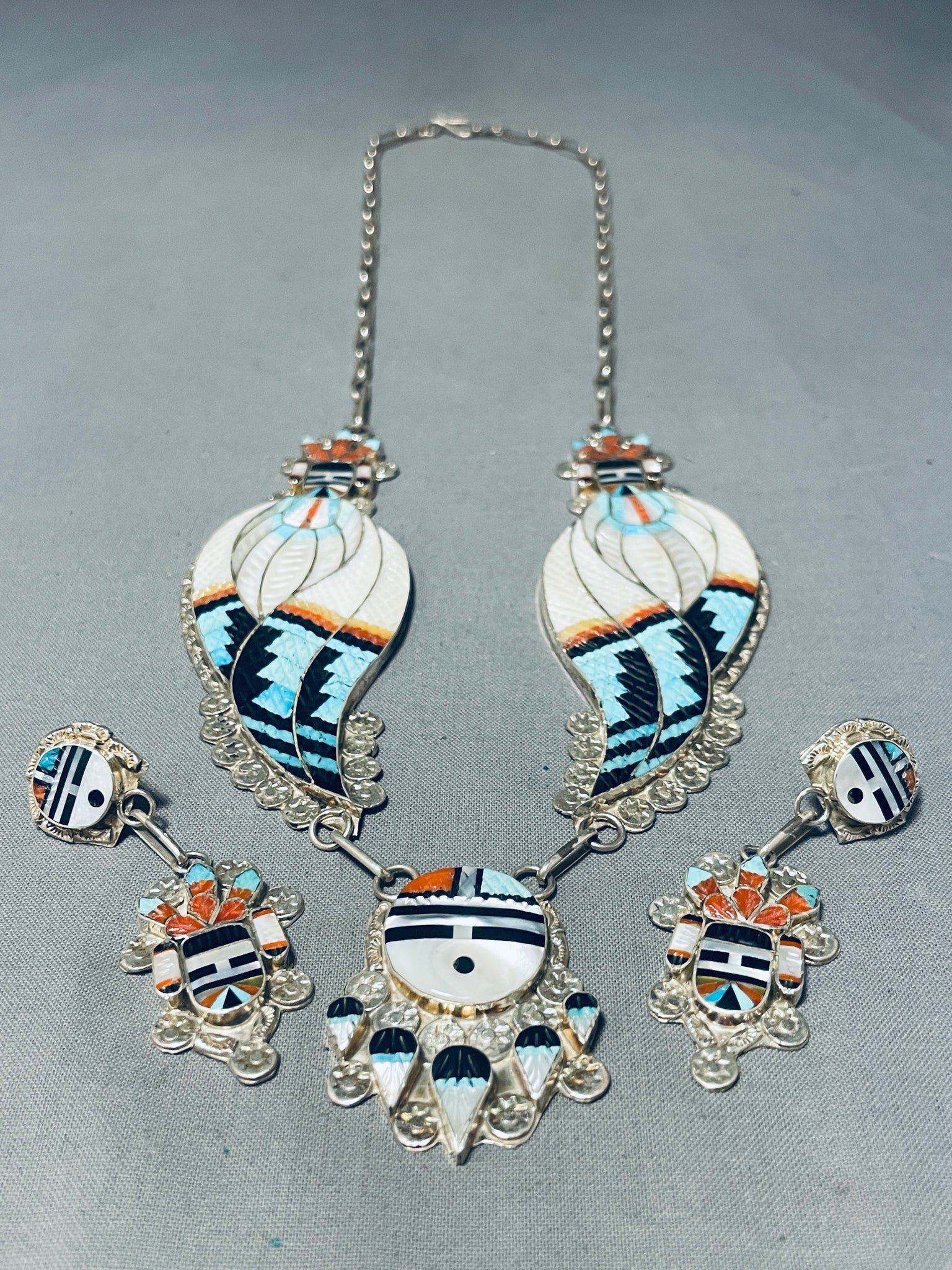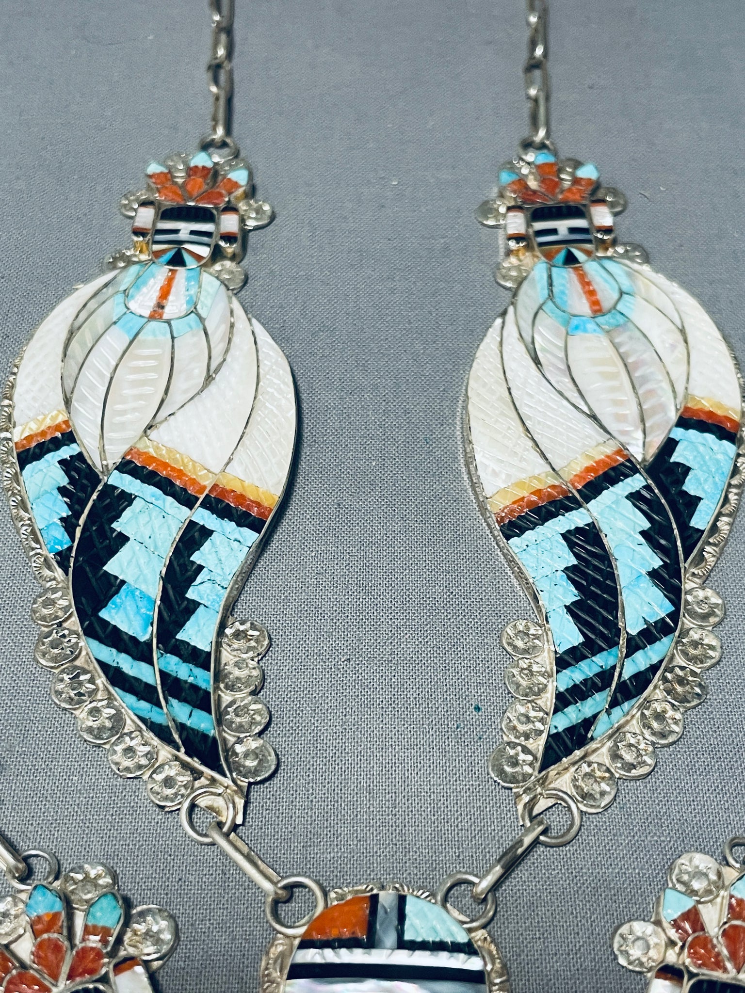 One Of Most Intricate Ever Vintage Native American Zuni Turquoise Inlay Sterling Silver Necklace
