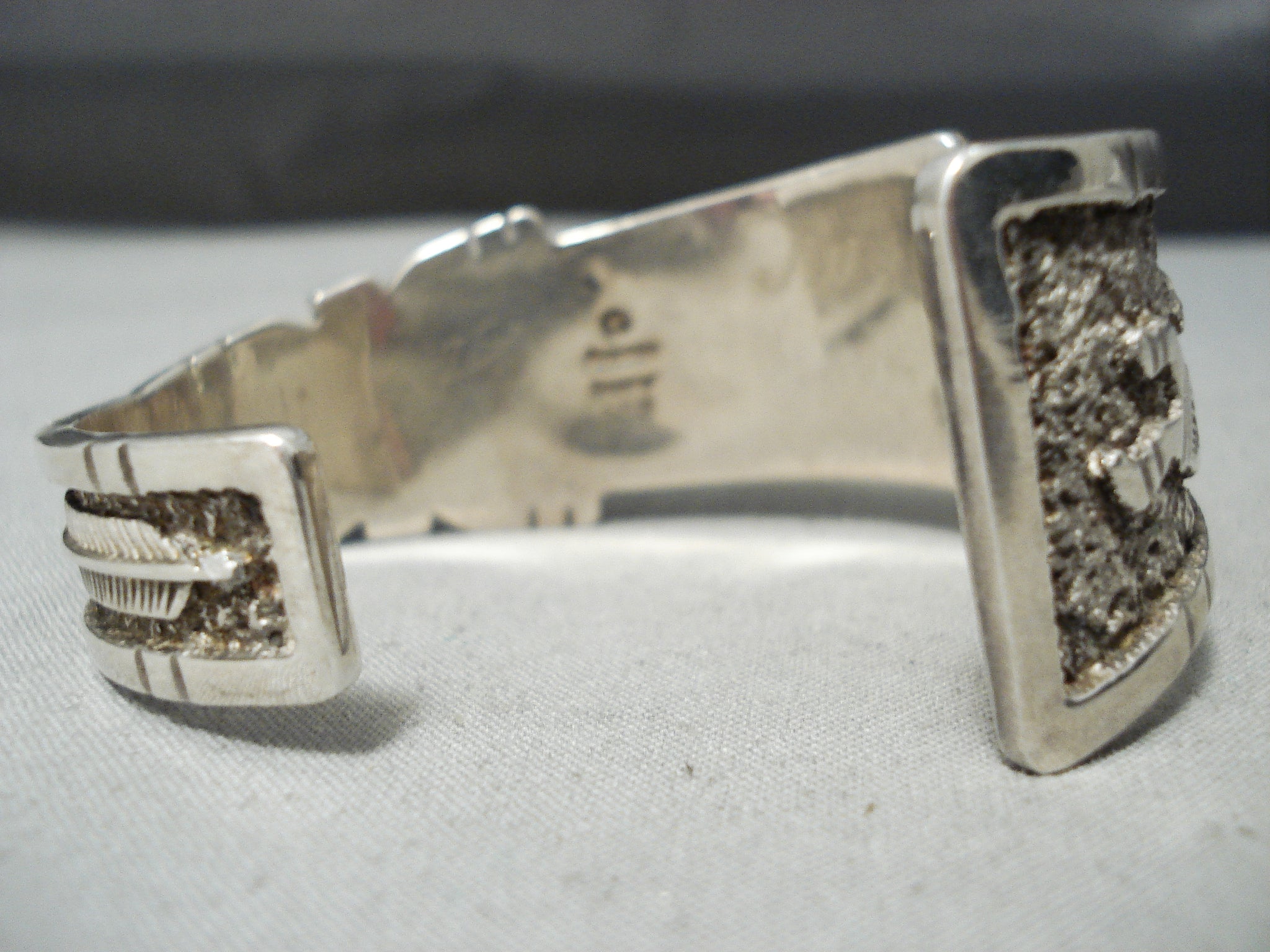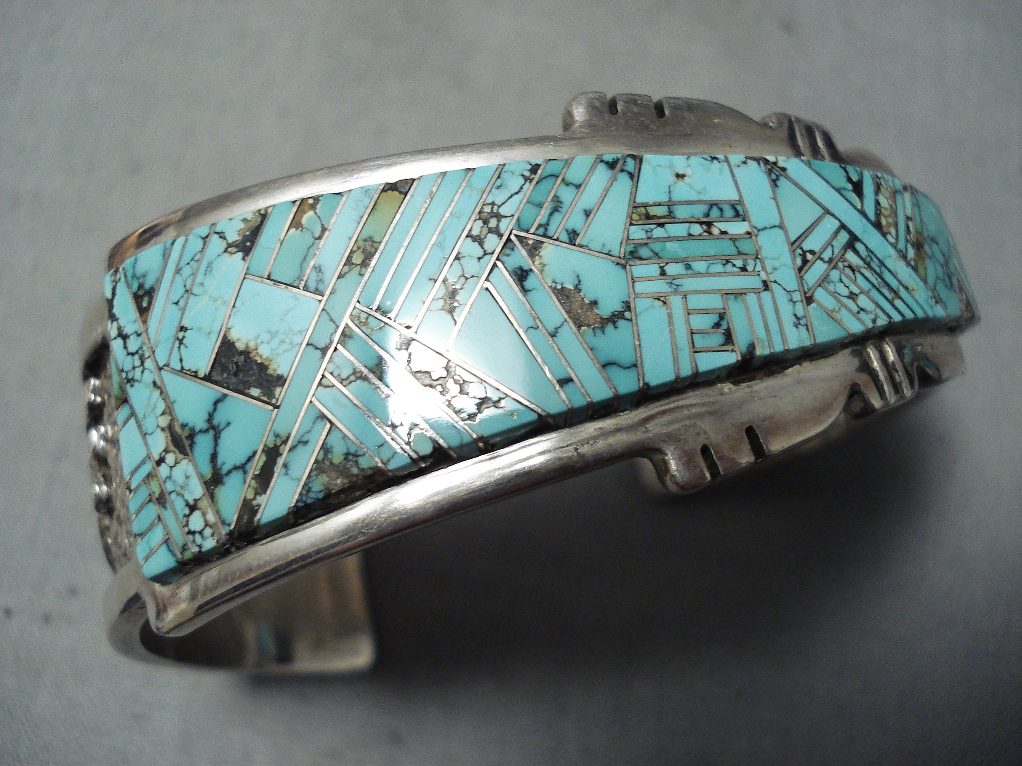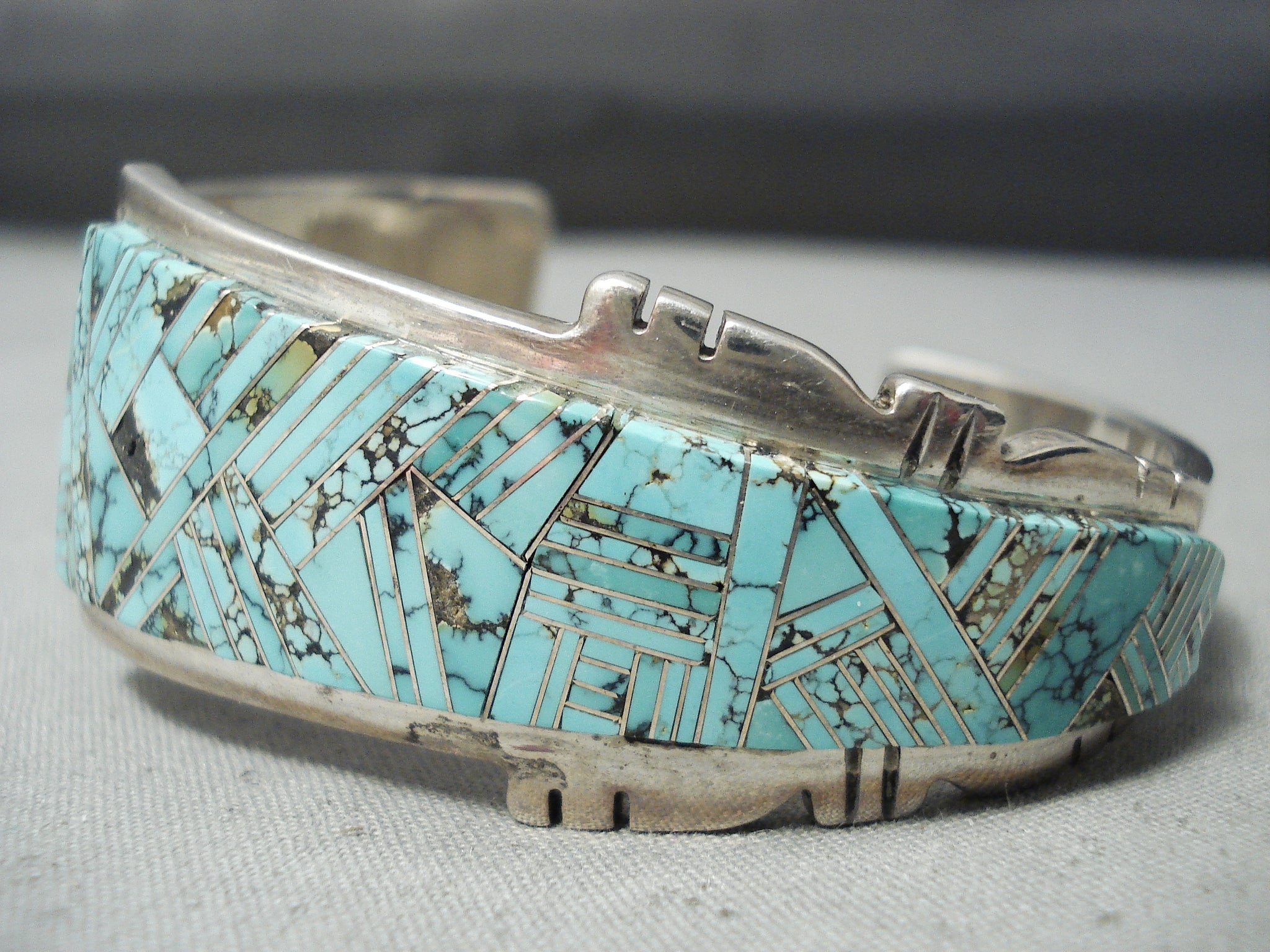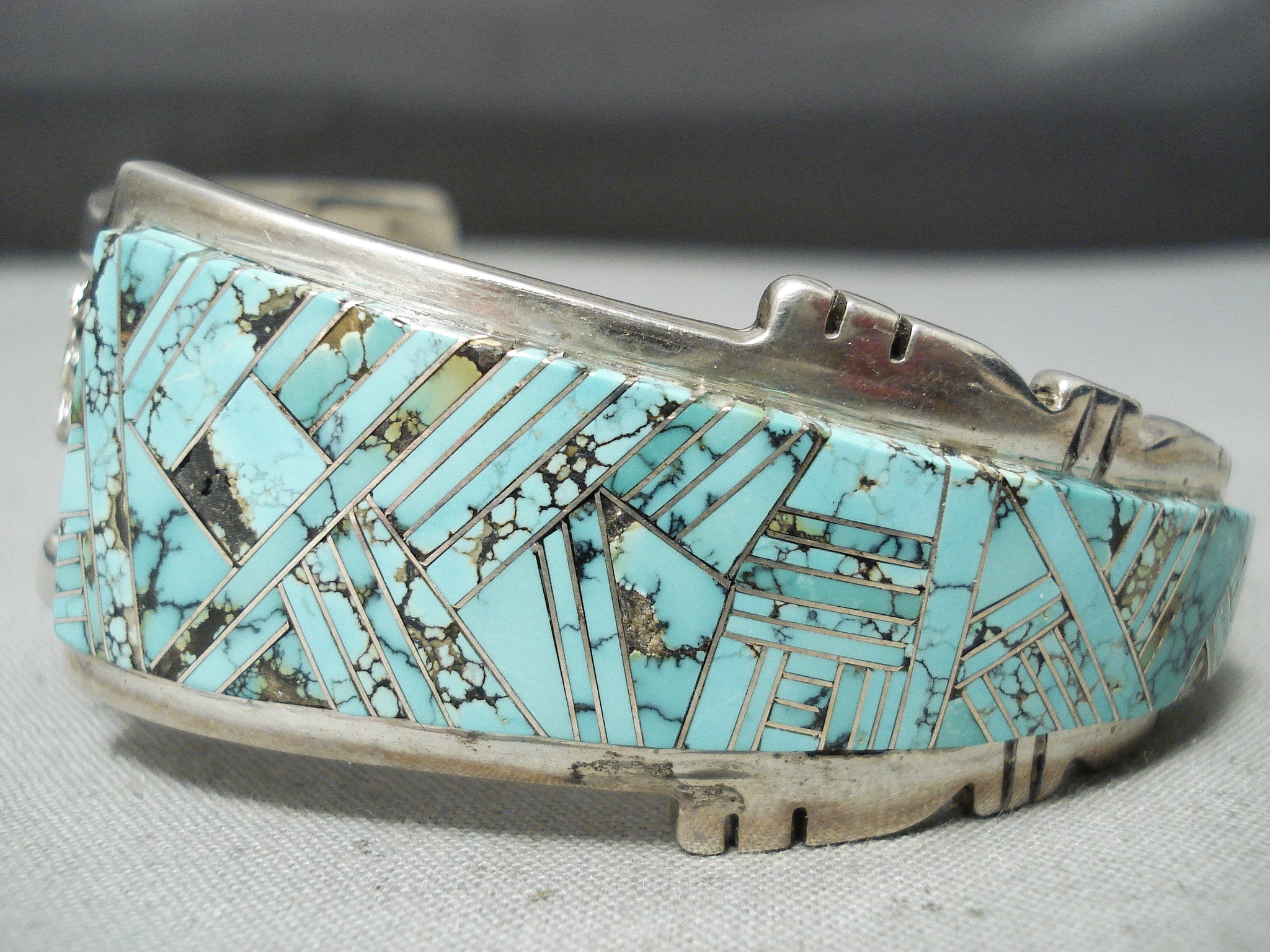 One Of Most Intricate Vintage Native American Navajo Turquoise Inlay Sterling Silver Bracelet