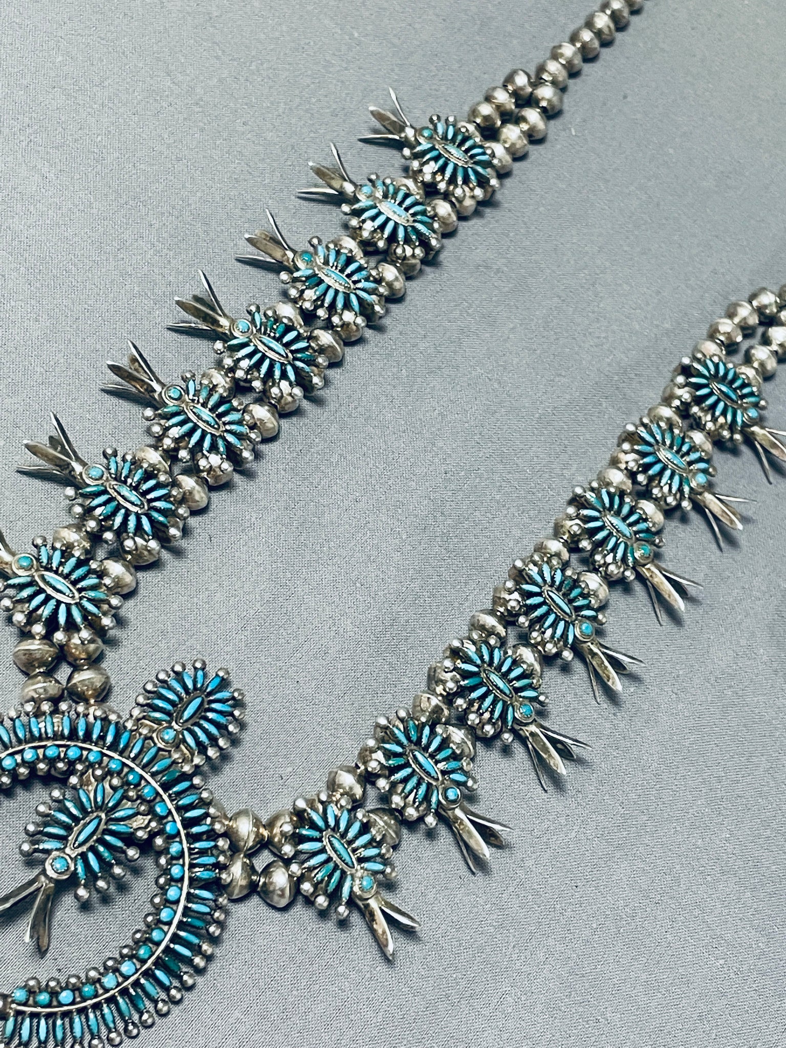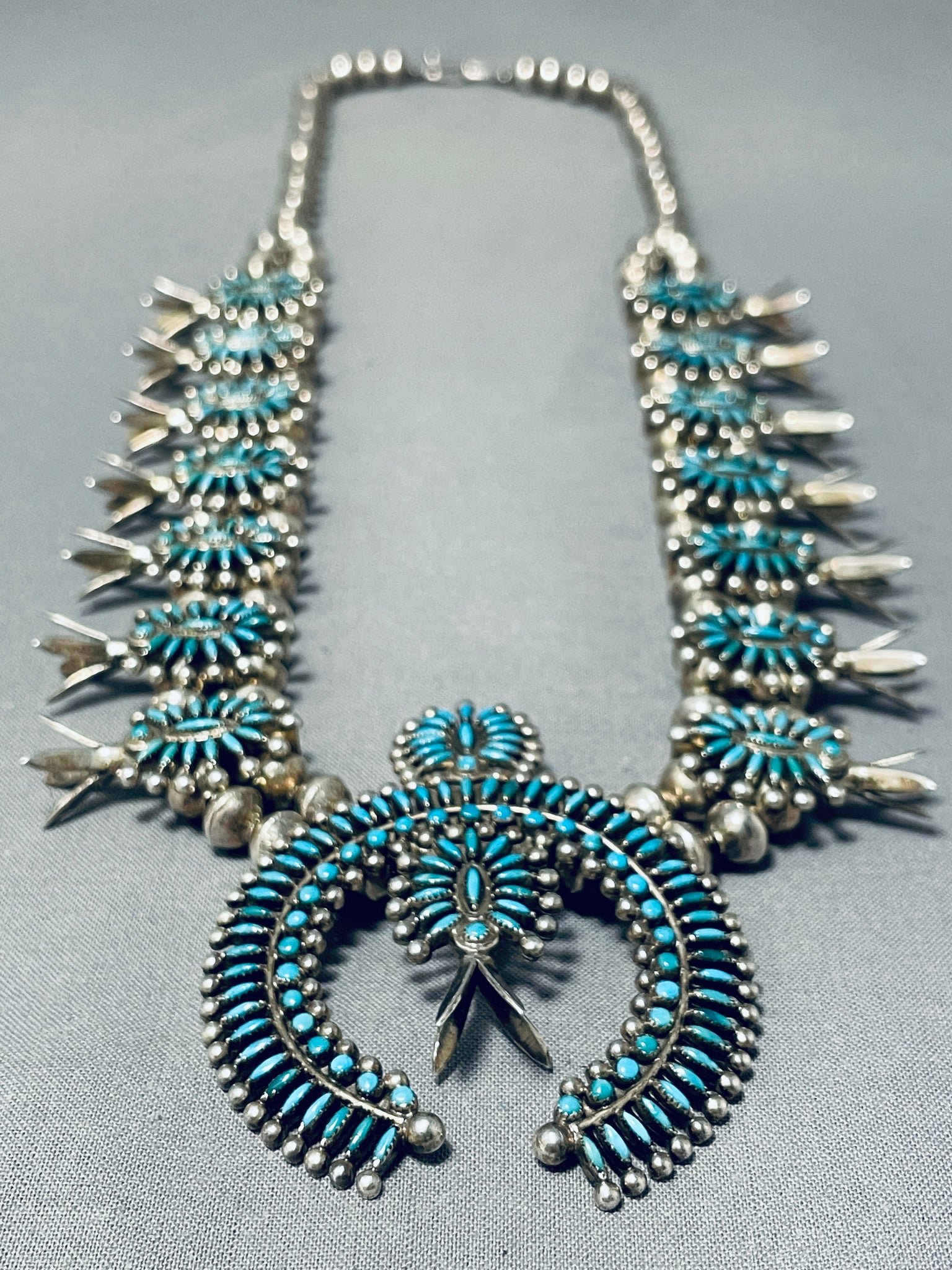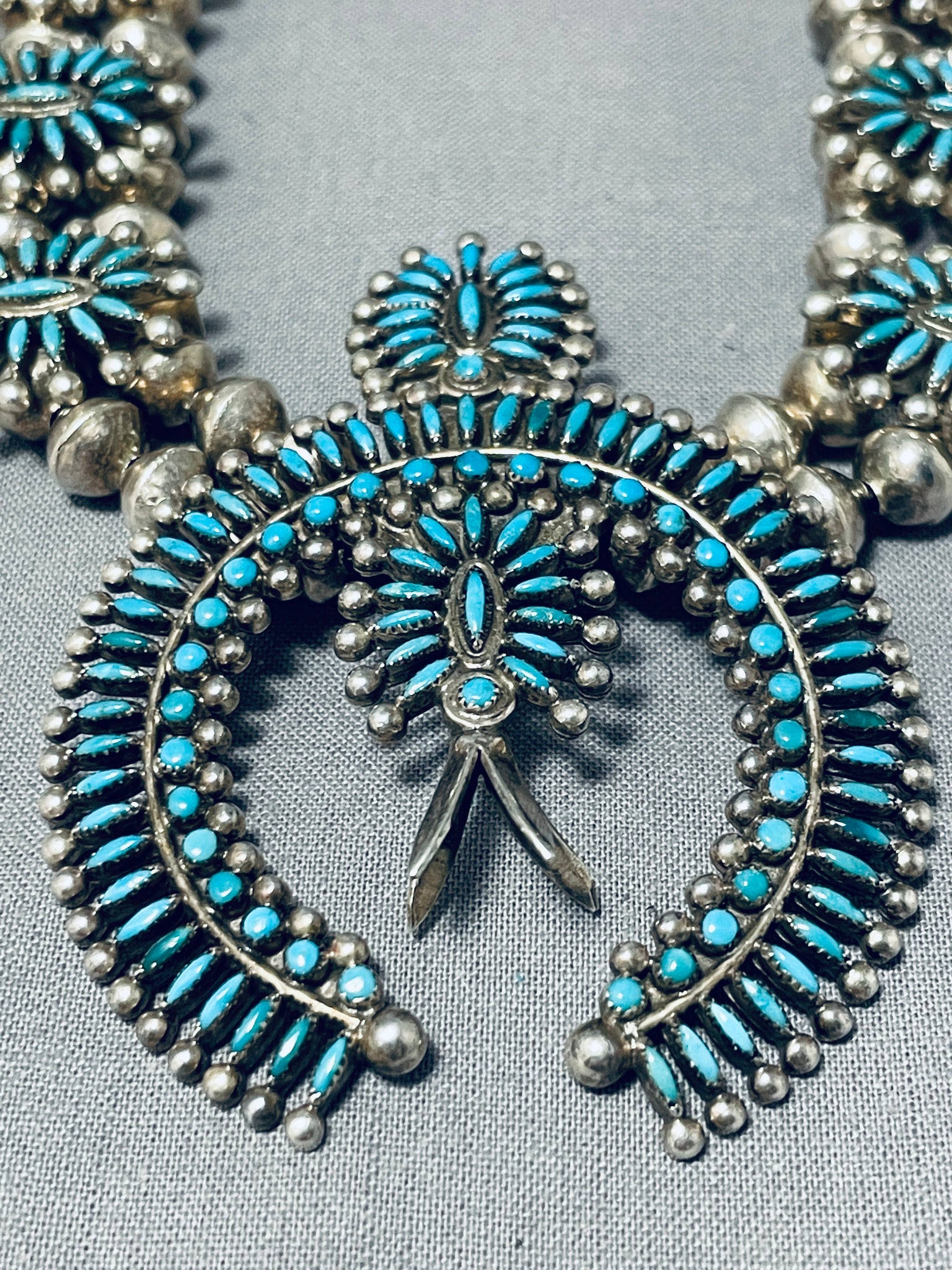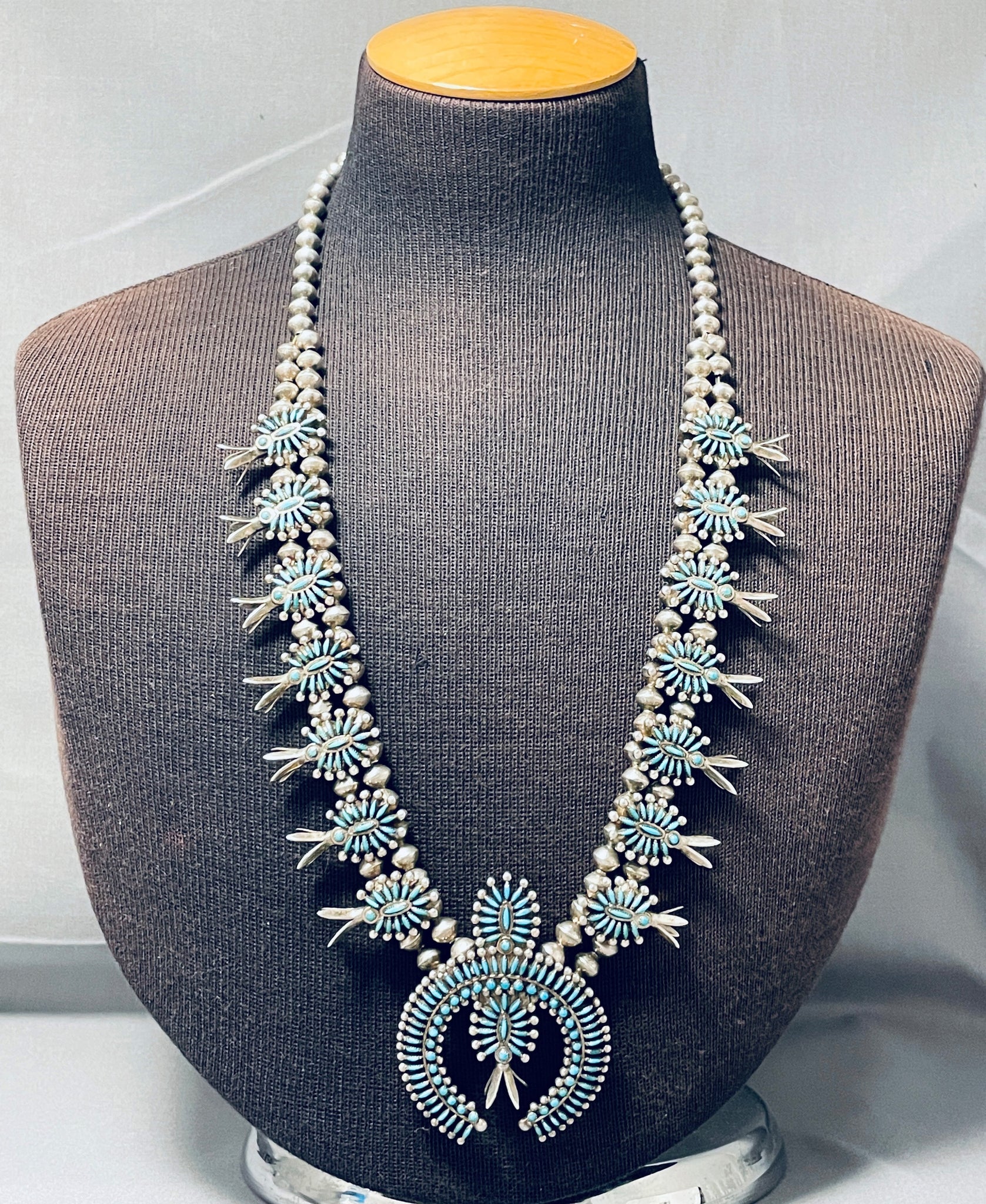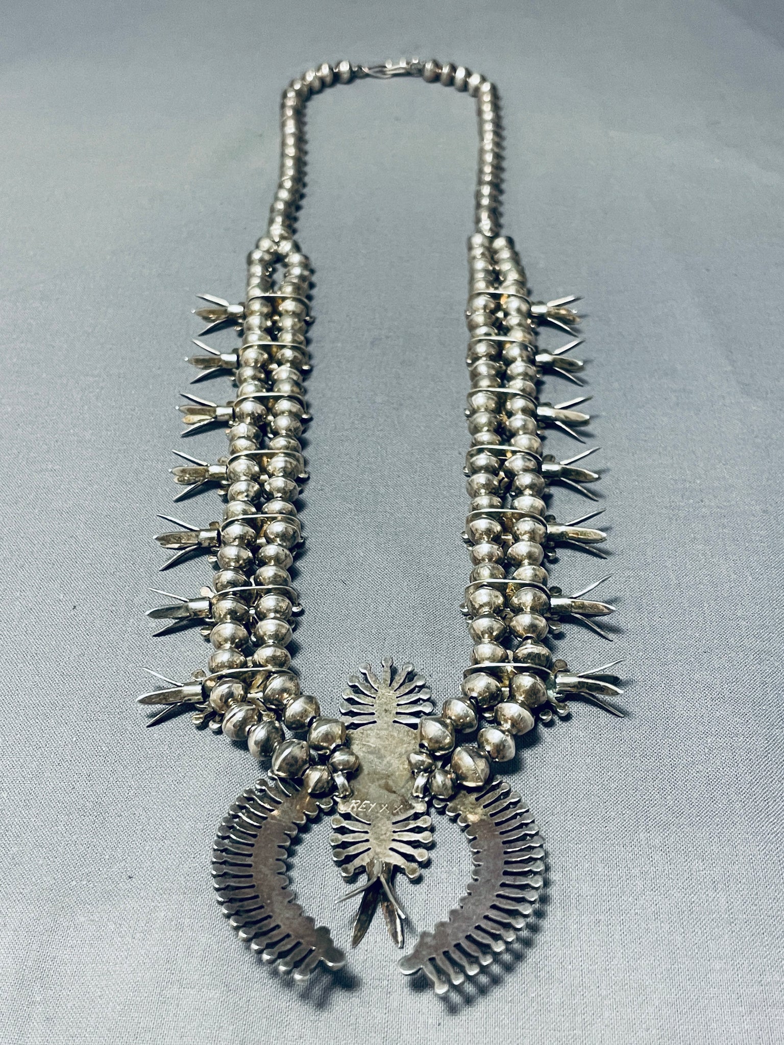 One Of Most Intricate Vintage Native American Zuni Sterling Silver Squash Blossom Necklace