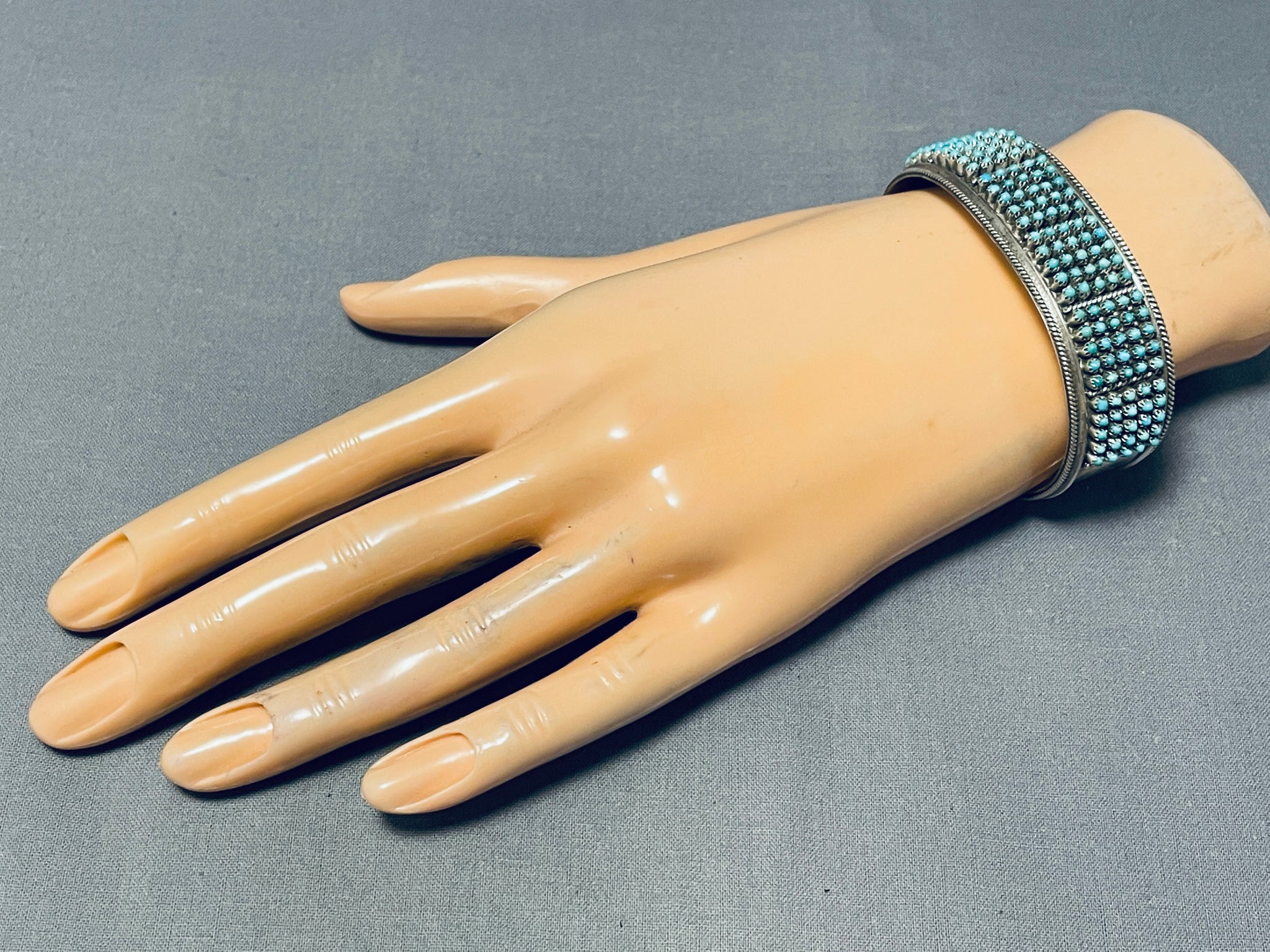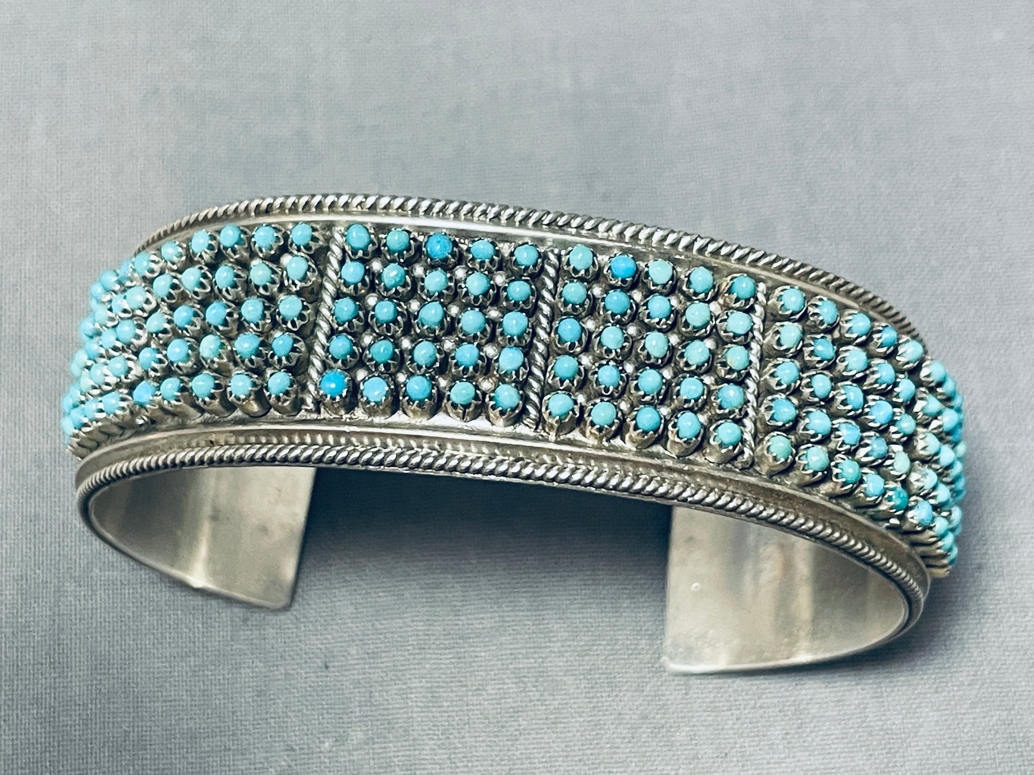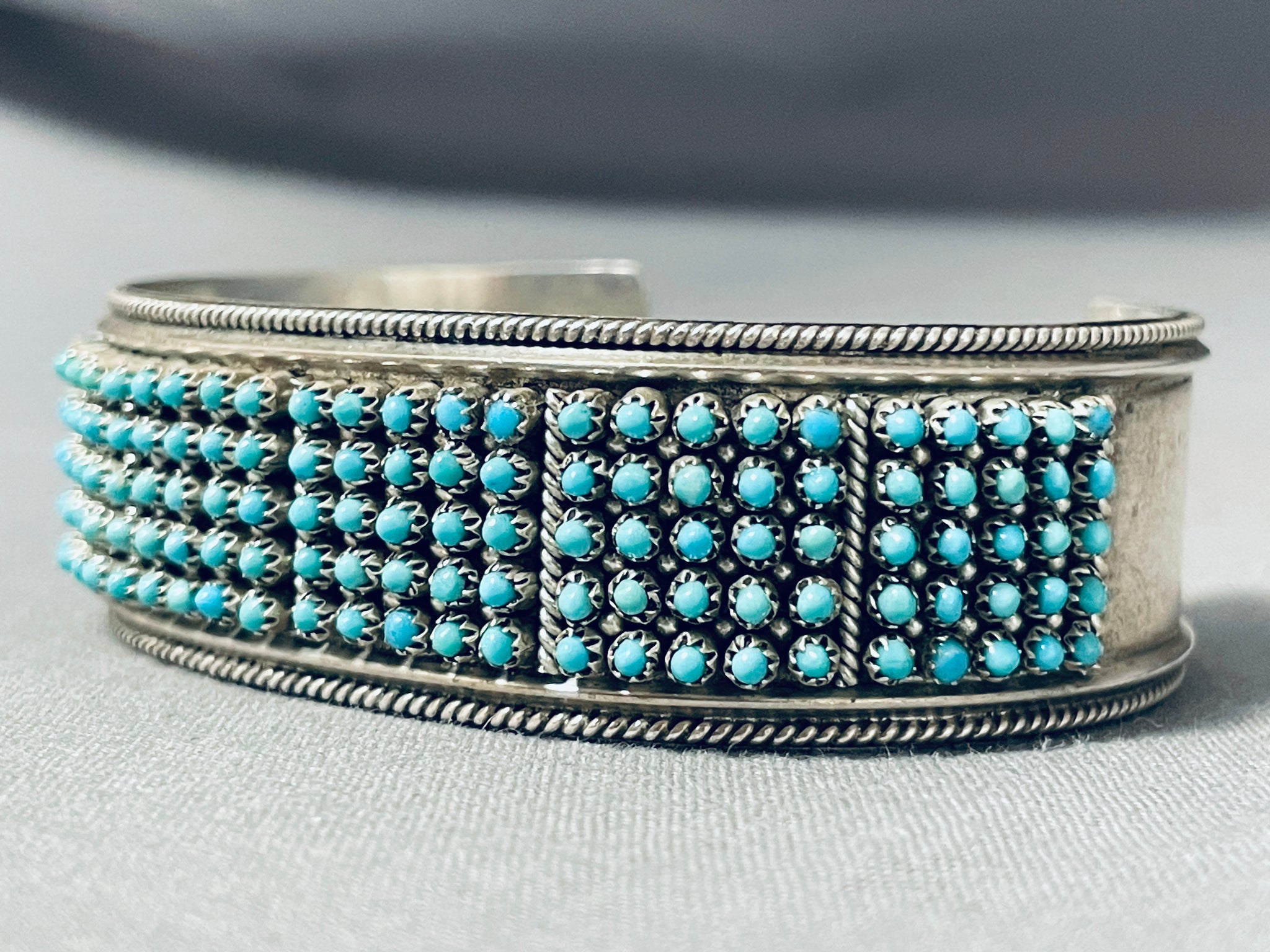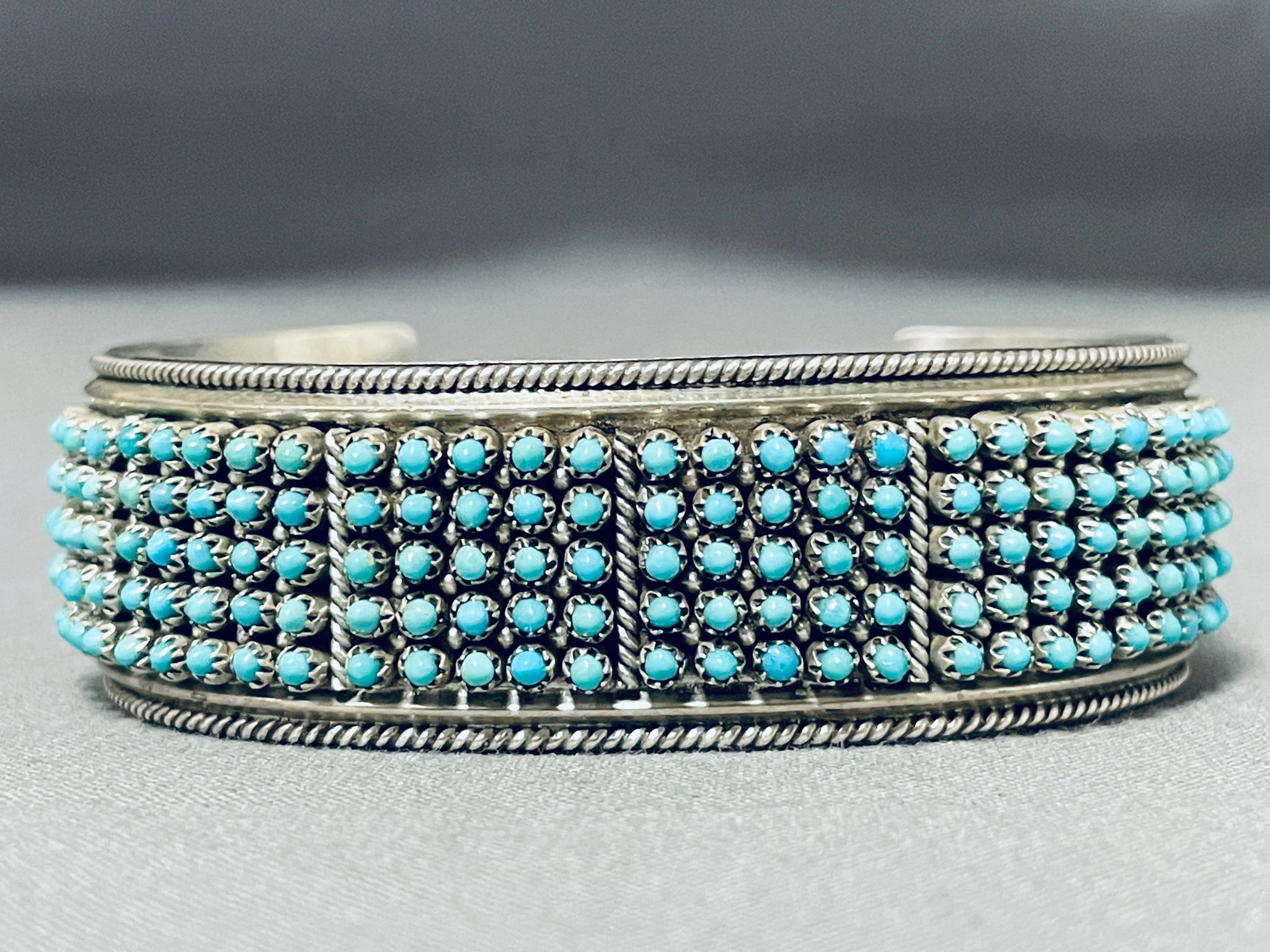 One Of Most Intricate Vintage Native American Zuni Turquoise Snake Eyes Sterling Silver Bracelet