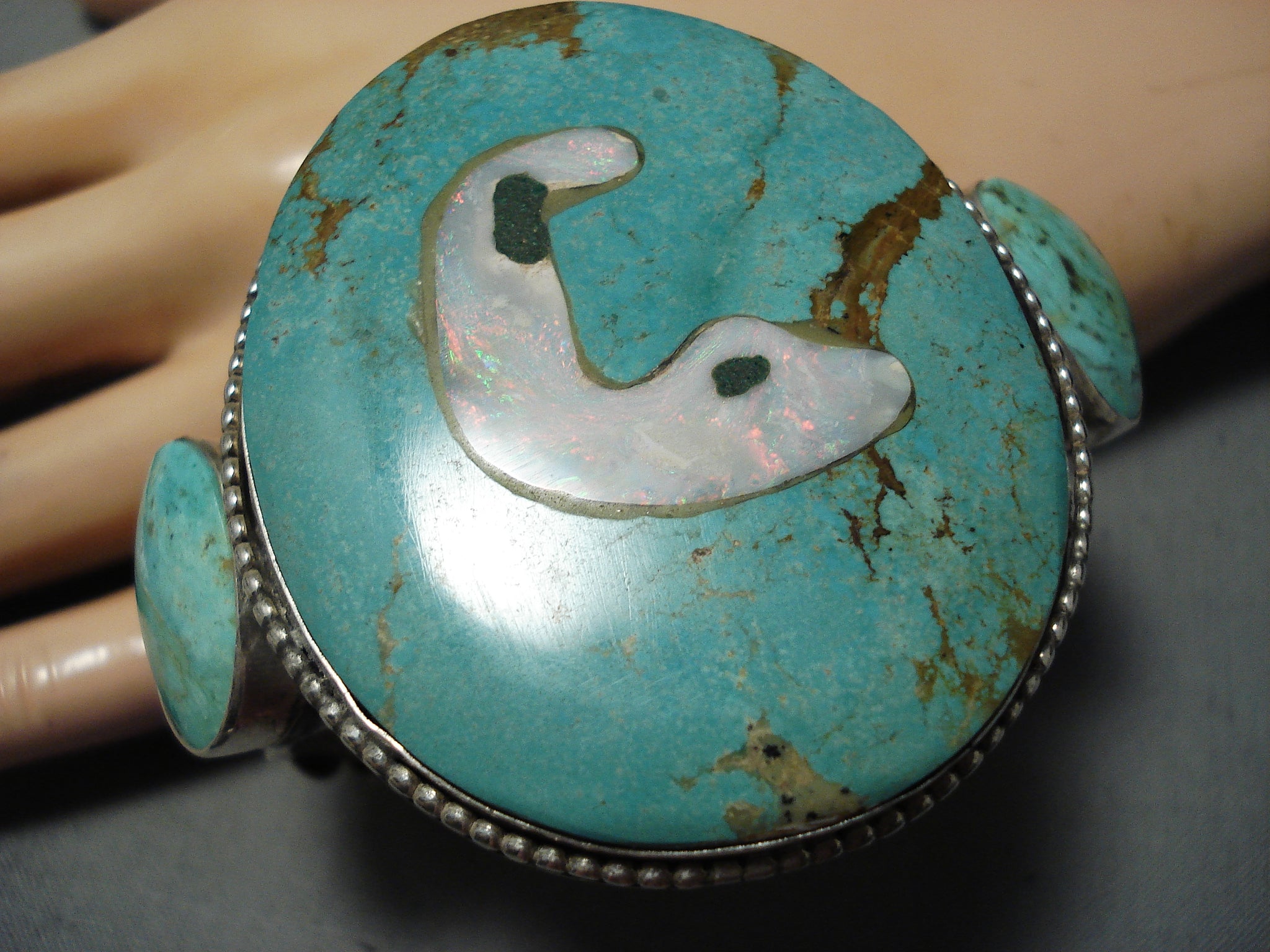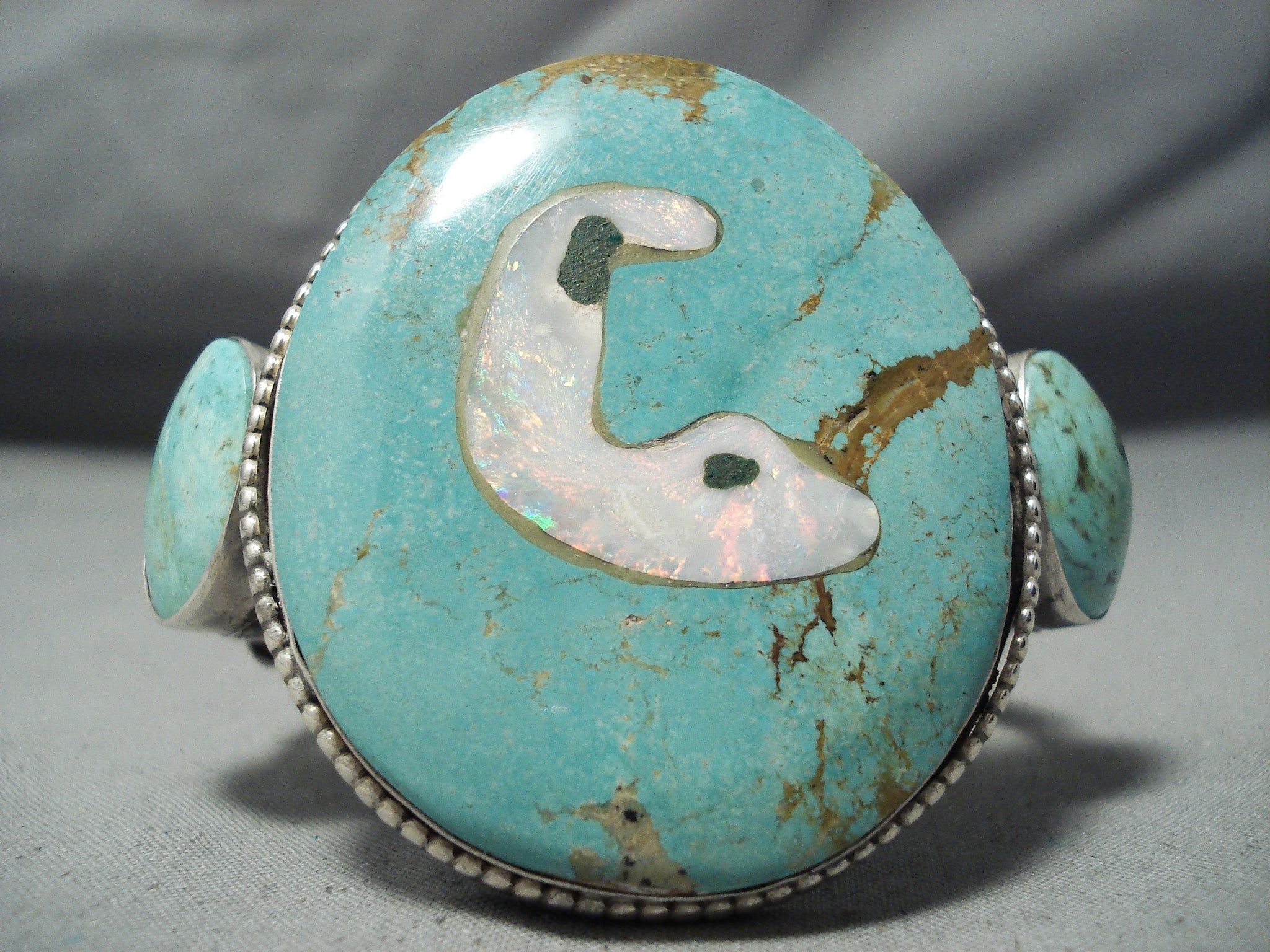One Of Most Unique Vintage Native American Navajo Opal Animal Turquoise Sterling Silver Bracelet