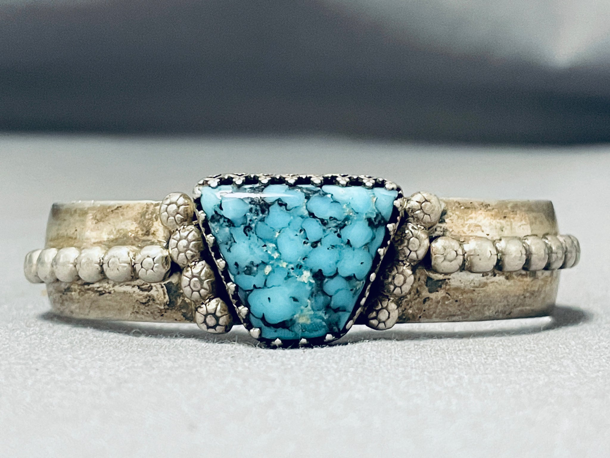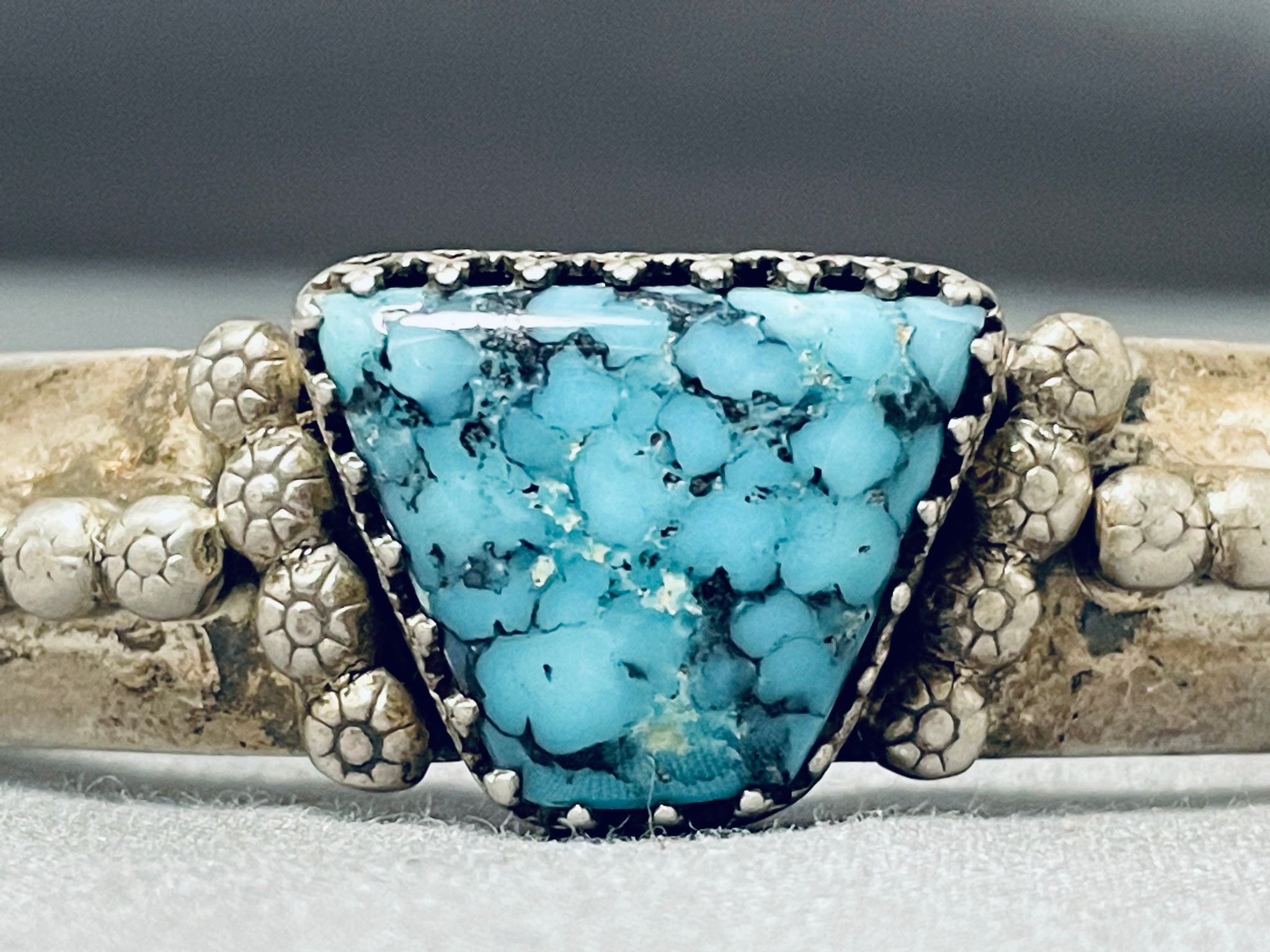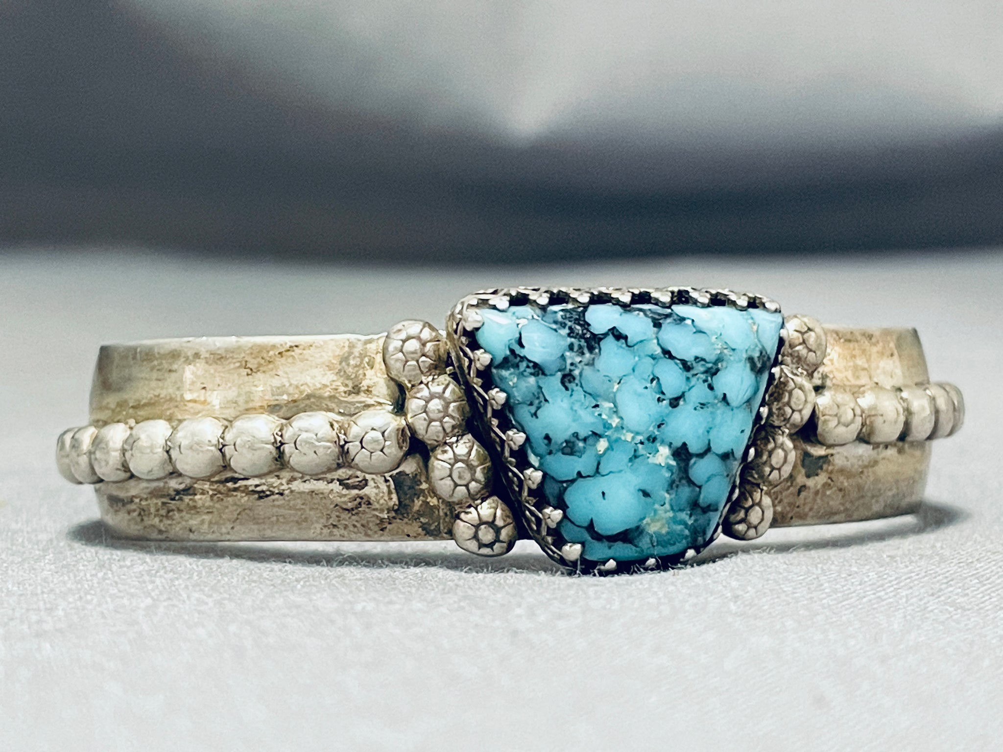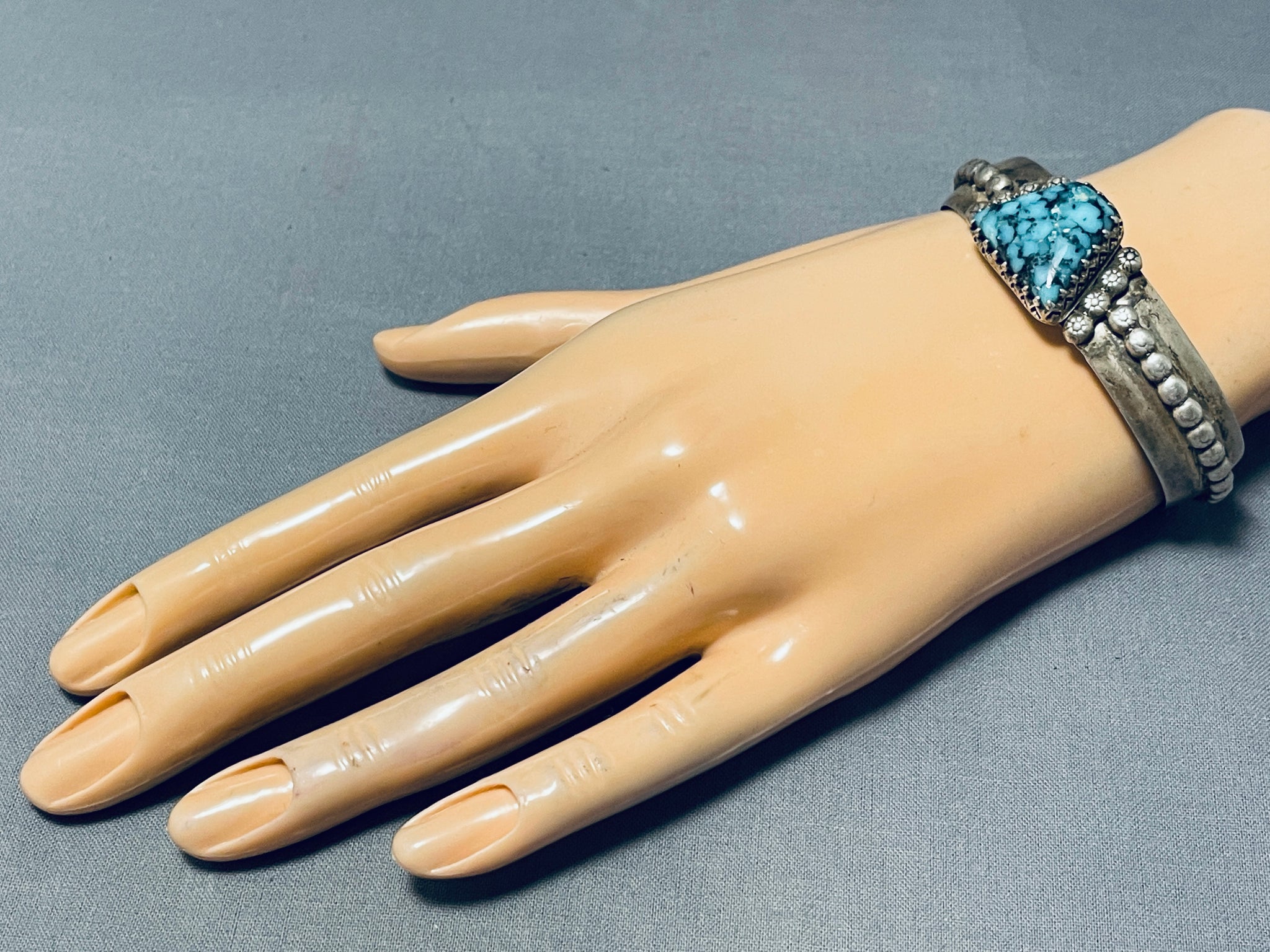 One Of Most Unique Vintage Native American Navajo Spiderweb Turquoise Sterling Silver Bracelet
