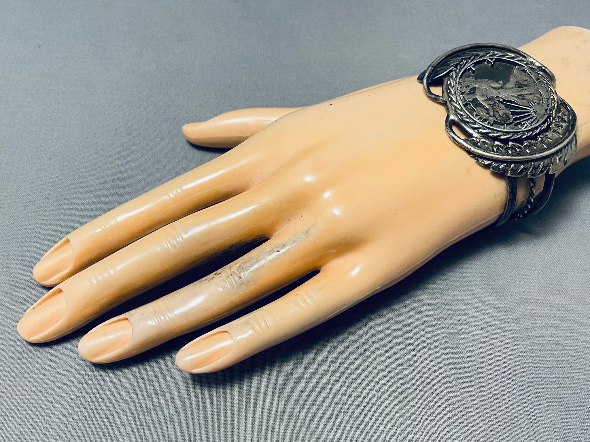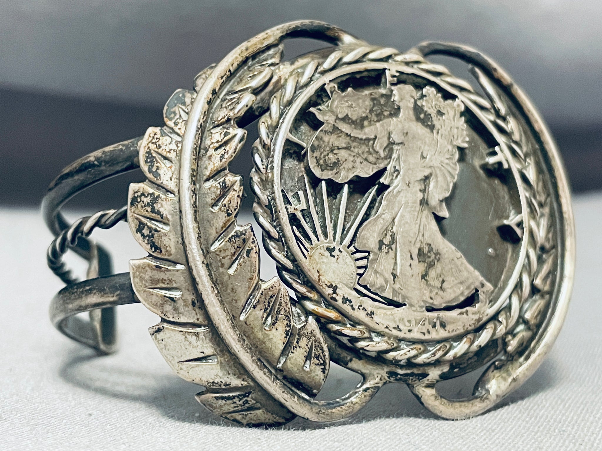 One Of Most Unique Vintage Native American Navajo Sterling Silver Coin Leaf Bracelet