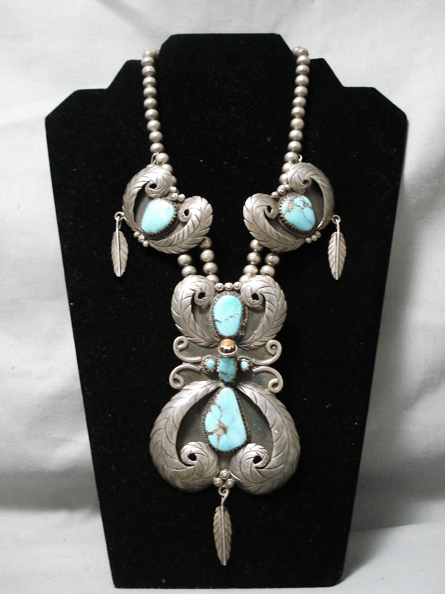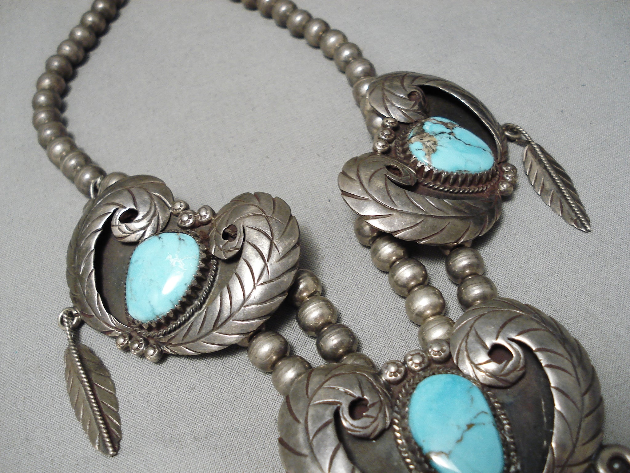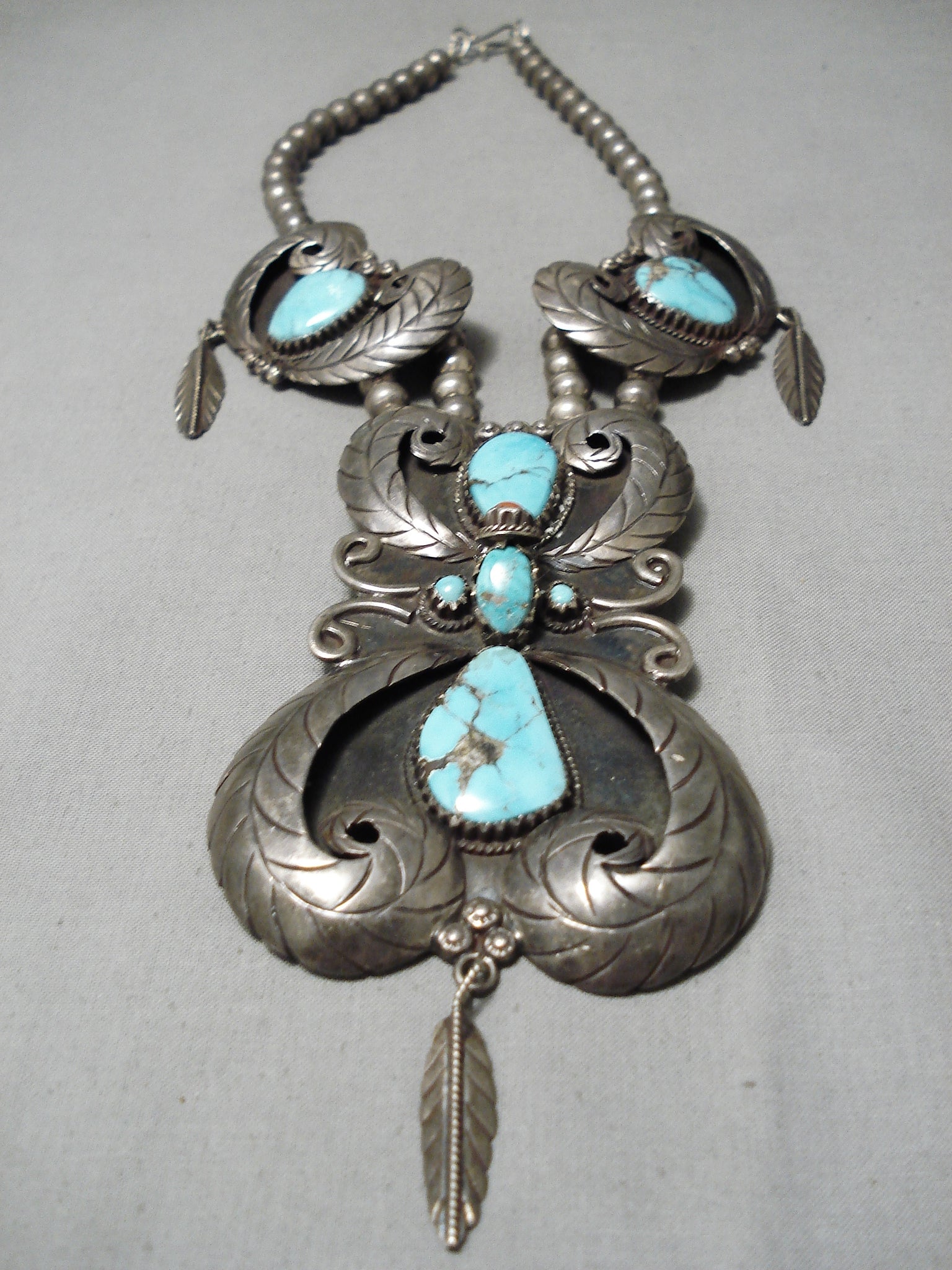 One Of The Best Biggest Vintage Native American Navajo Turquoise Sterling Silver Necklace Old