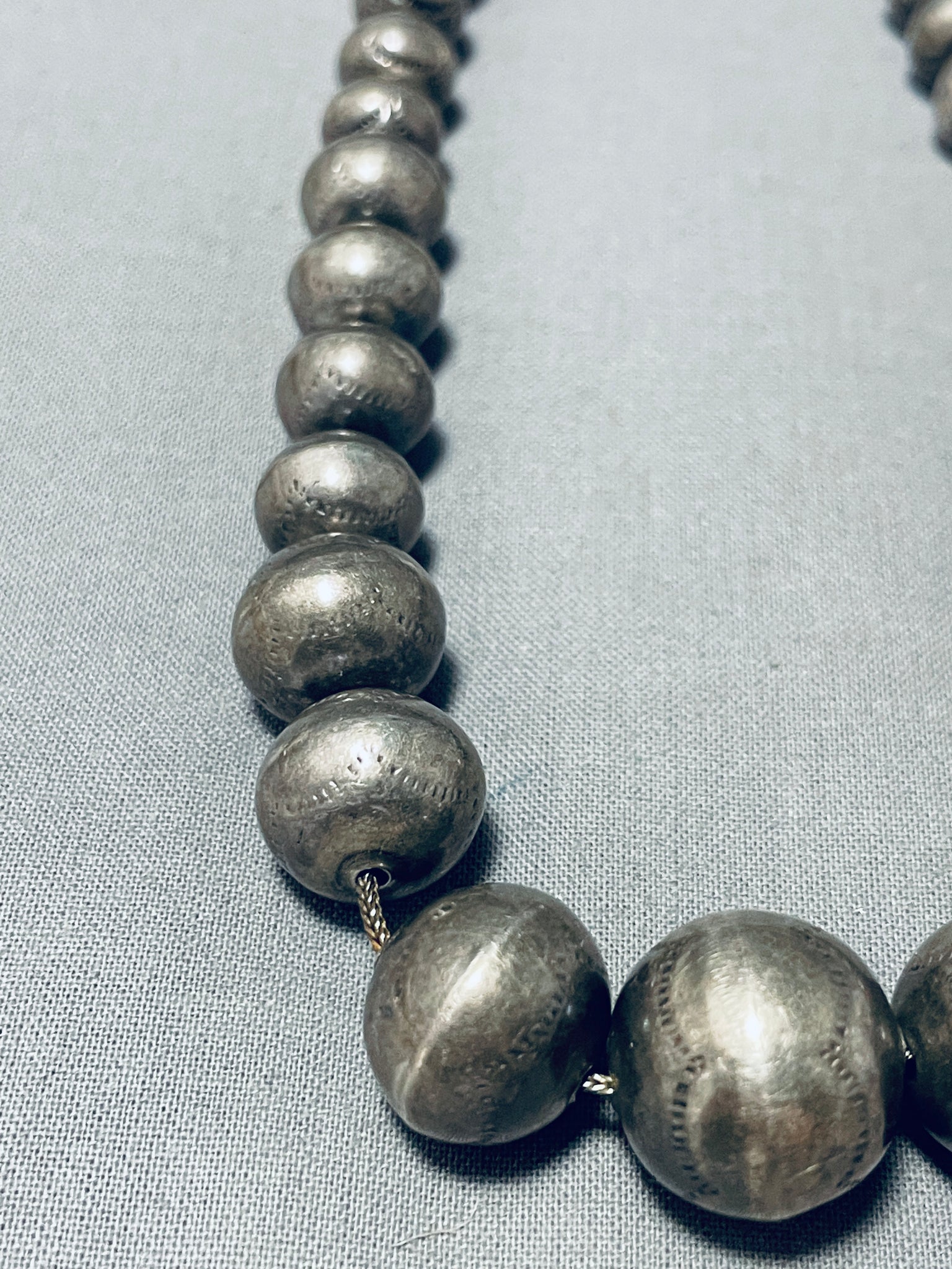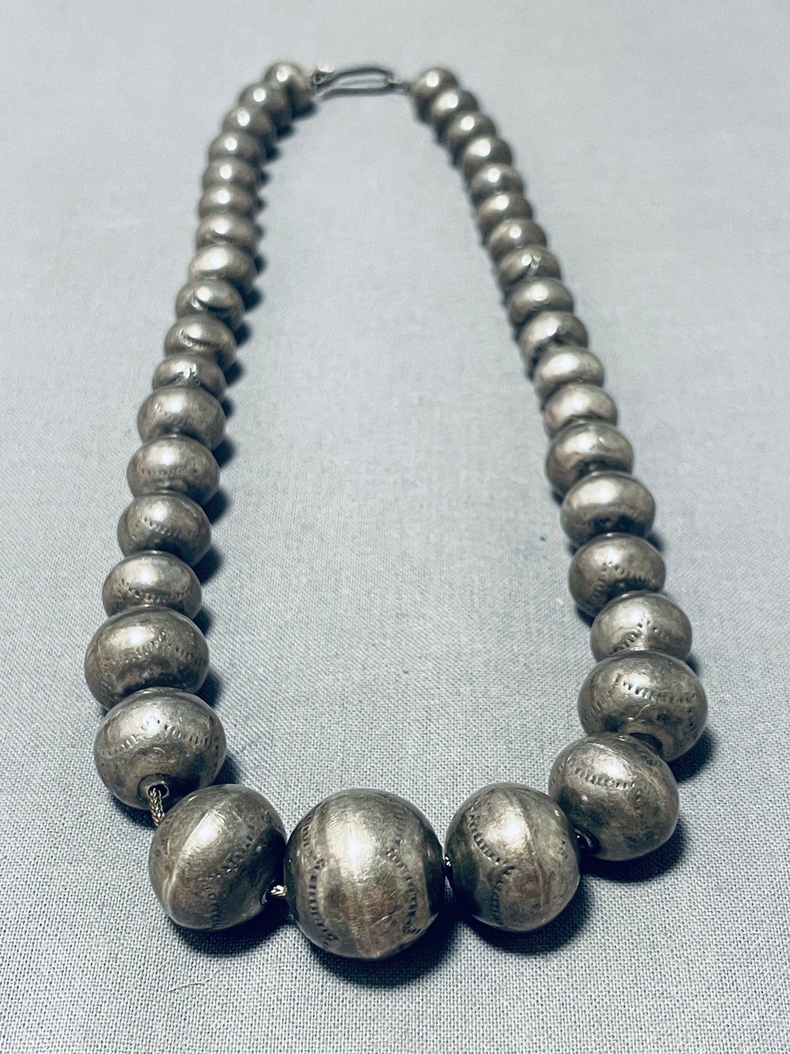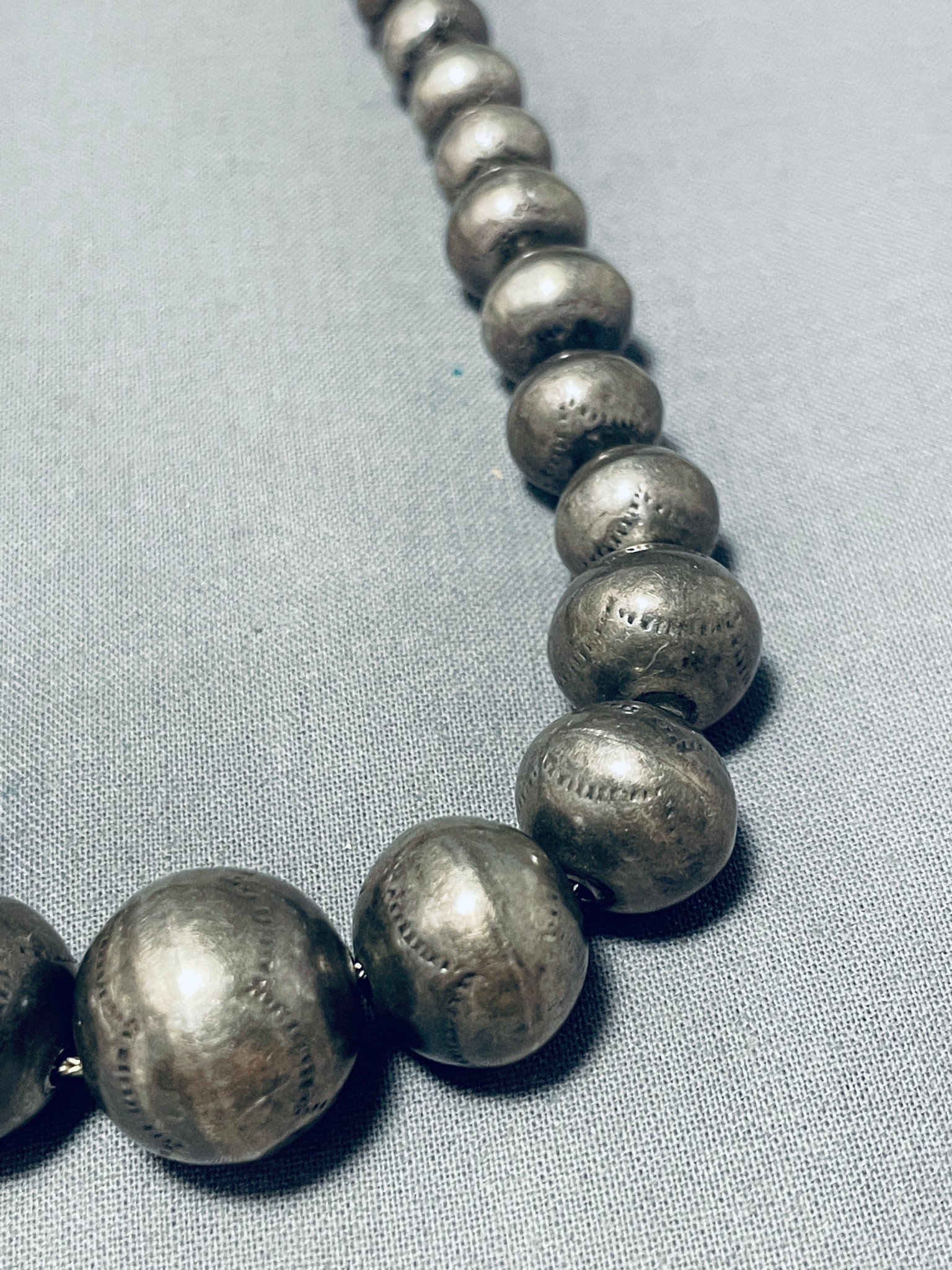 One Of The Best Earlier Vintage Native American Navajo Hand Tooled Sterling Silver Necklace
