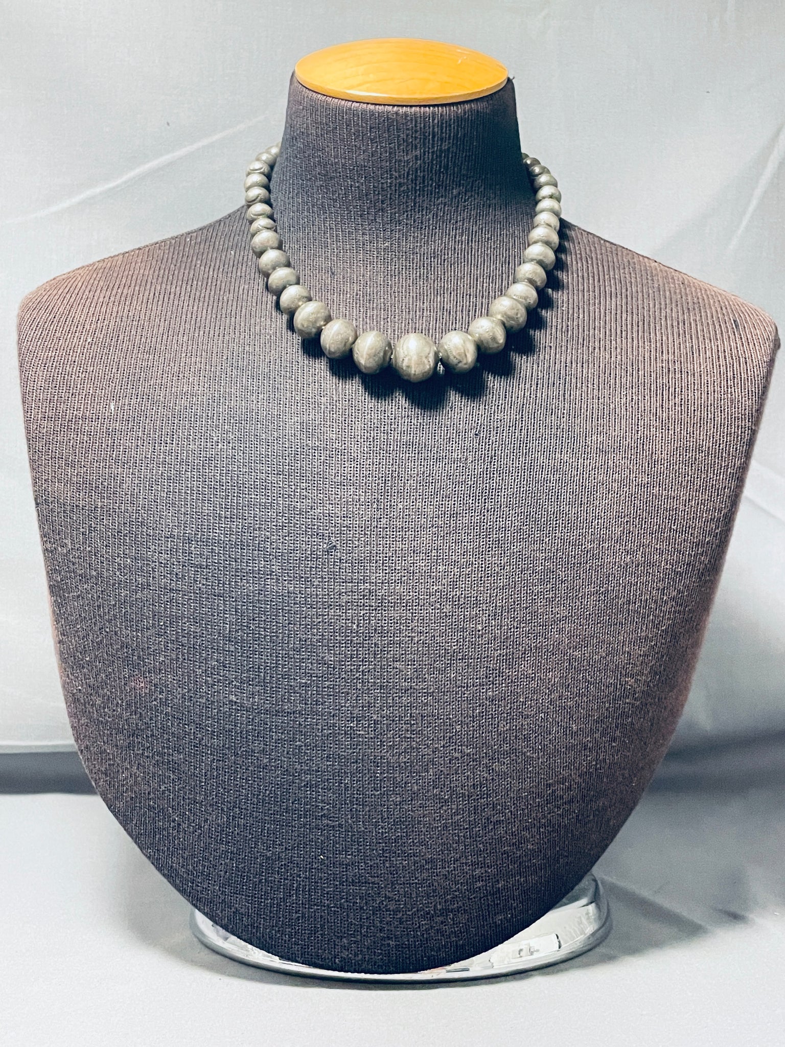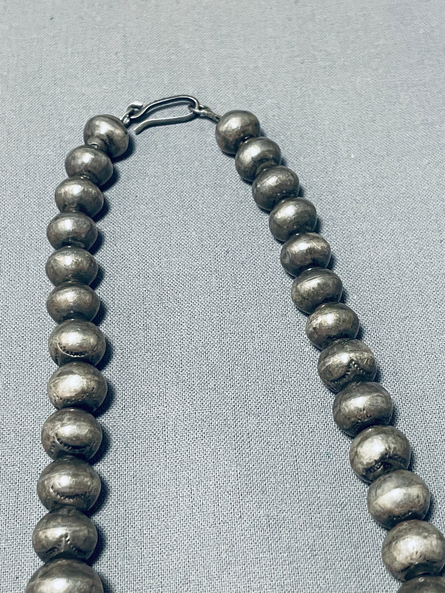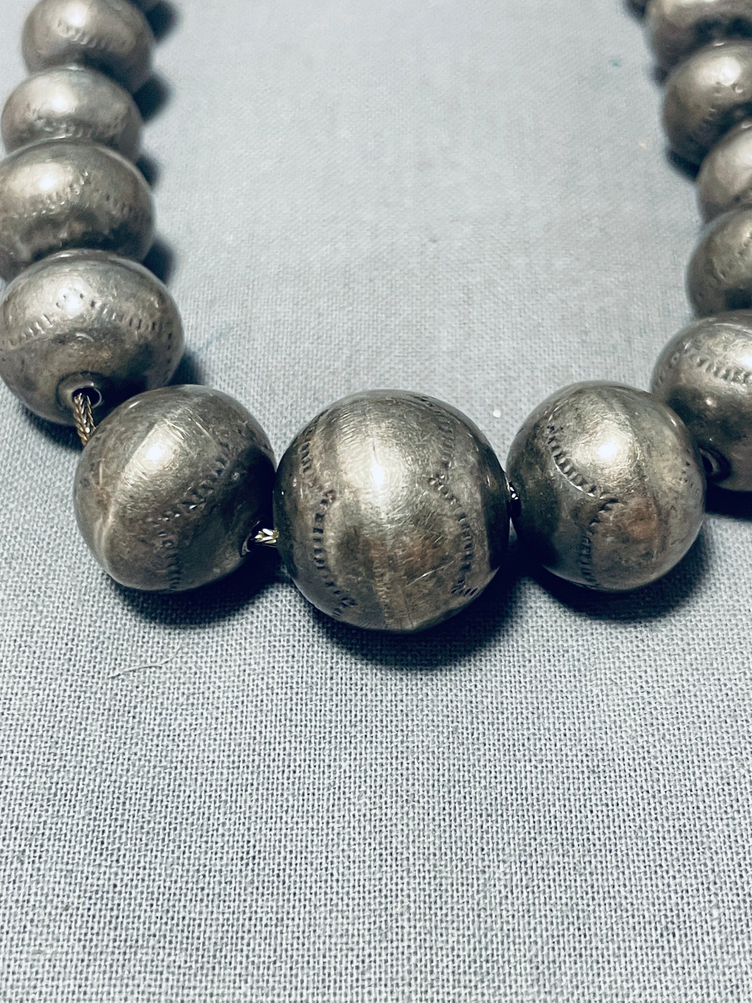 One Of The Best Earlier Vintage Native American Navajo Hand Tooled Sterling Silver Necklace