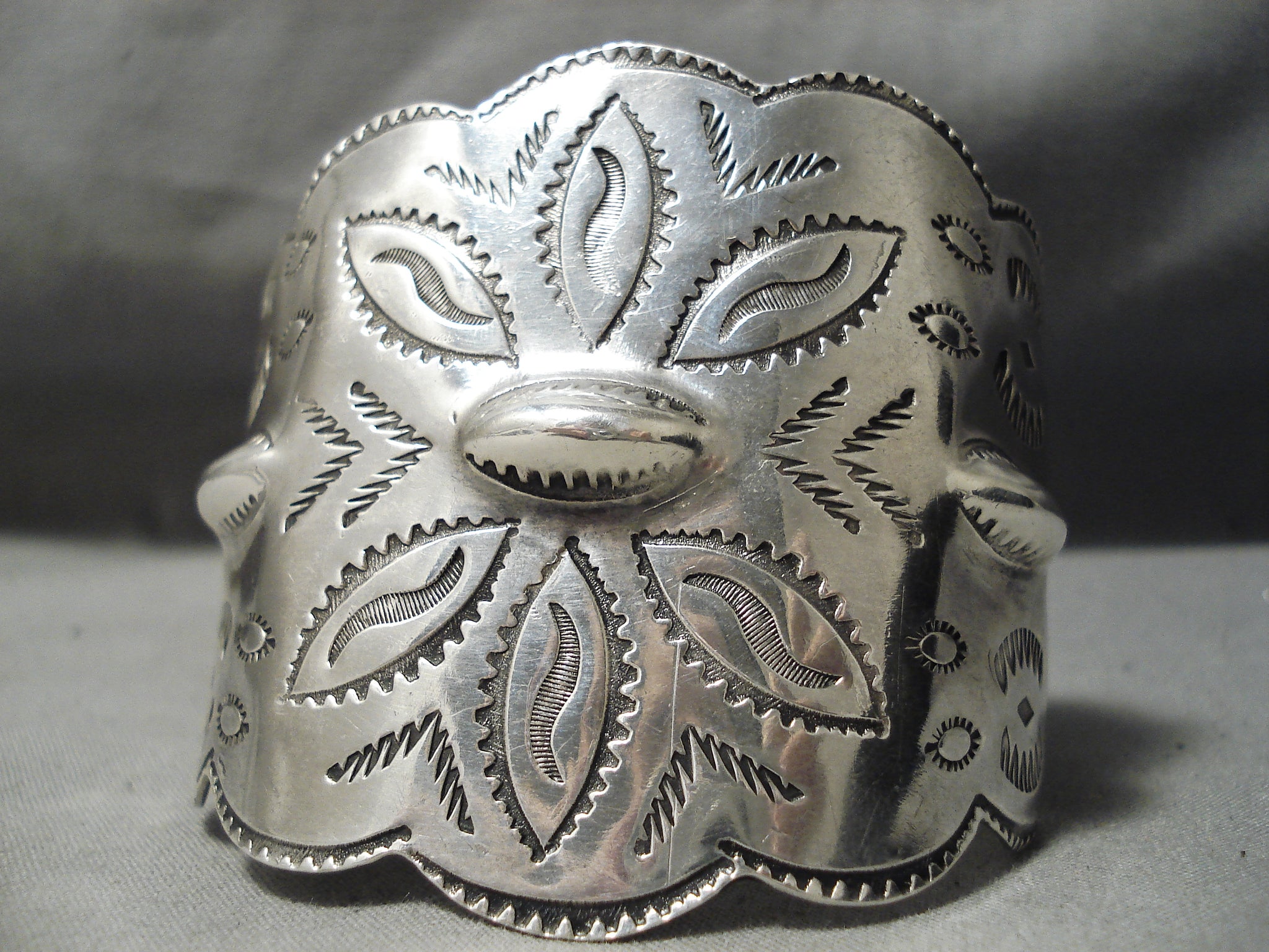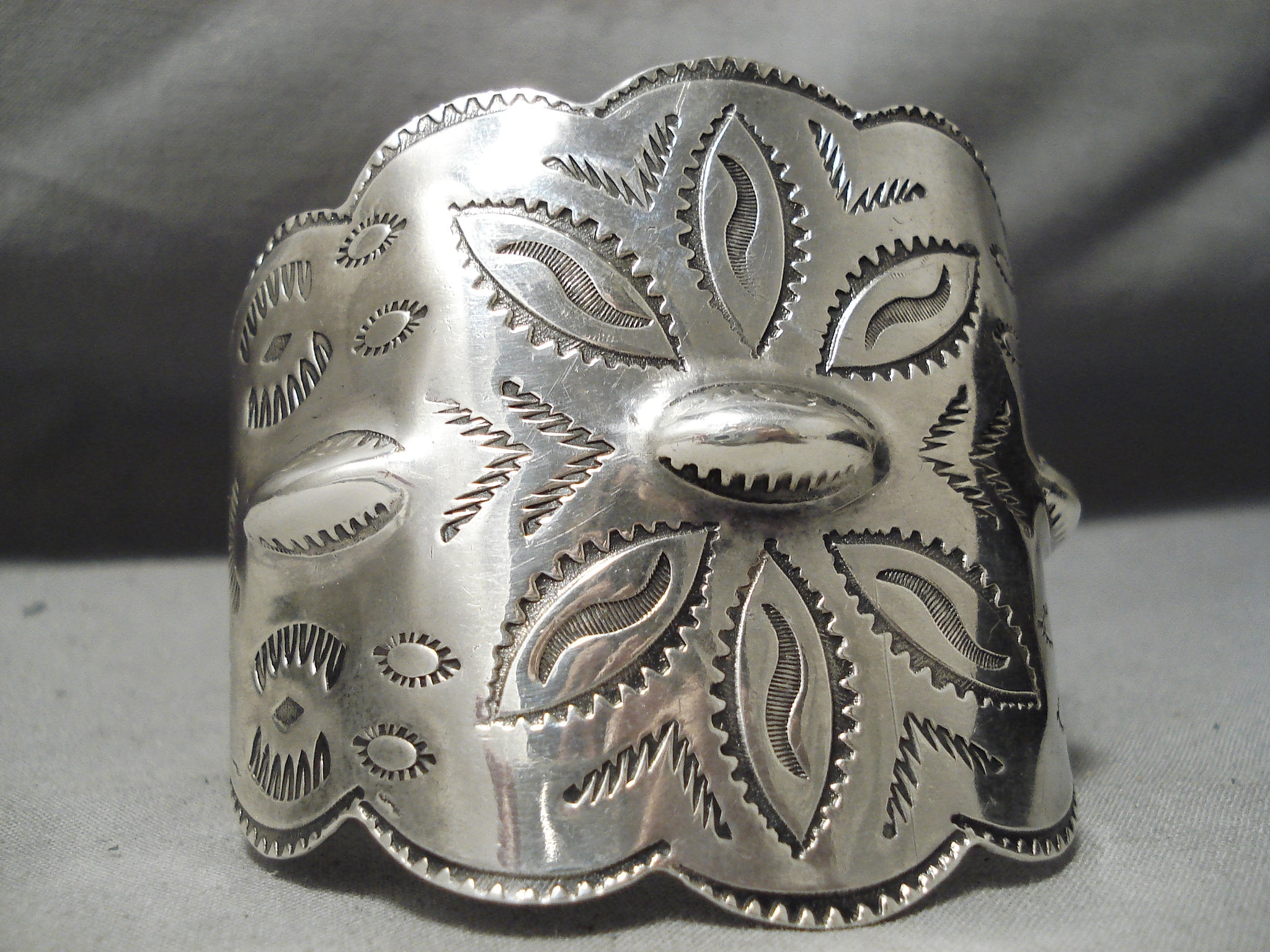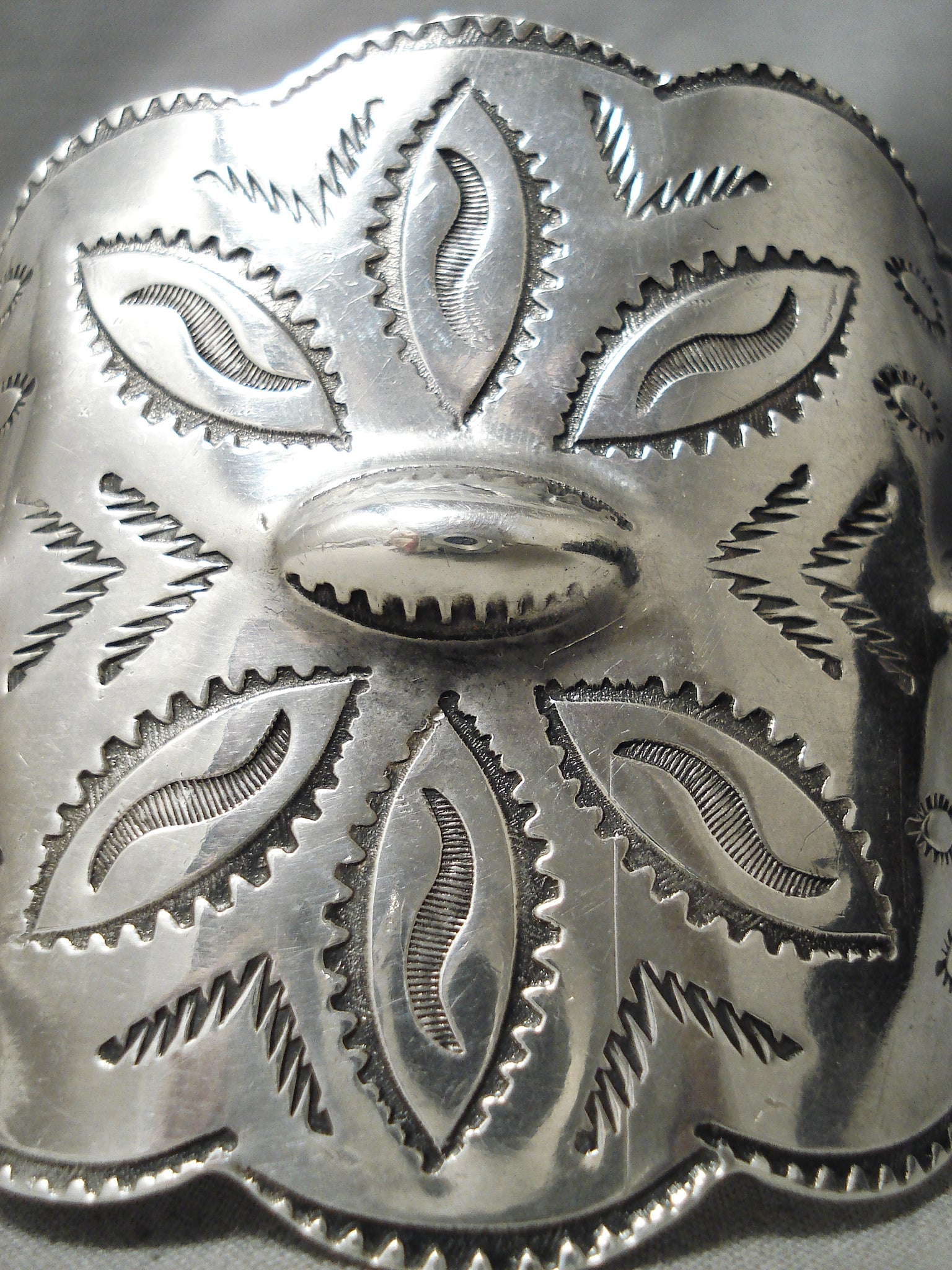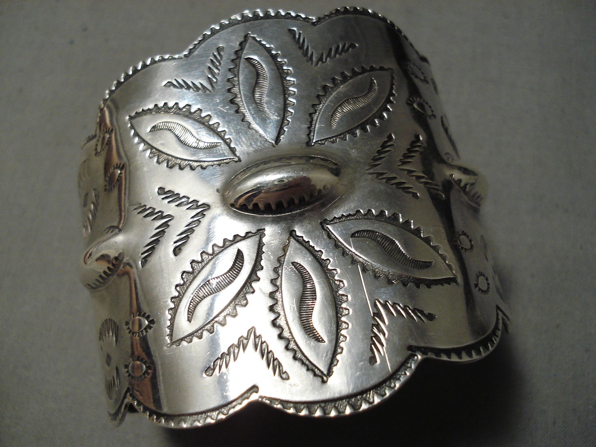 One Of The Best Early Vintage Native American Navajo Coin Silver Repoussed Bracelet Cuff