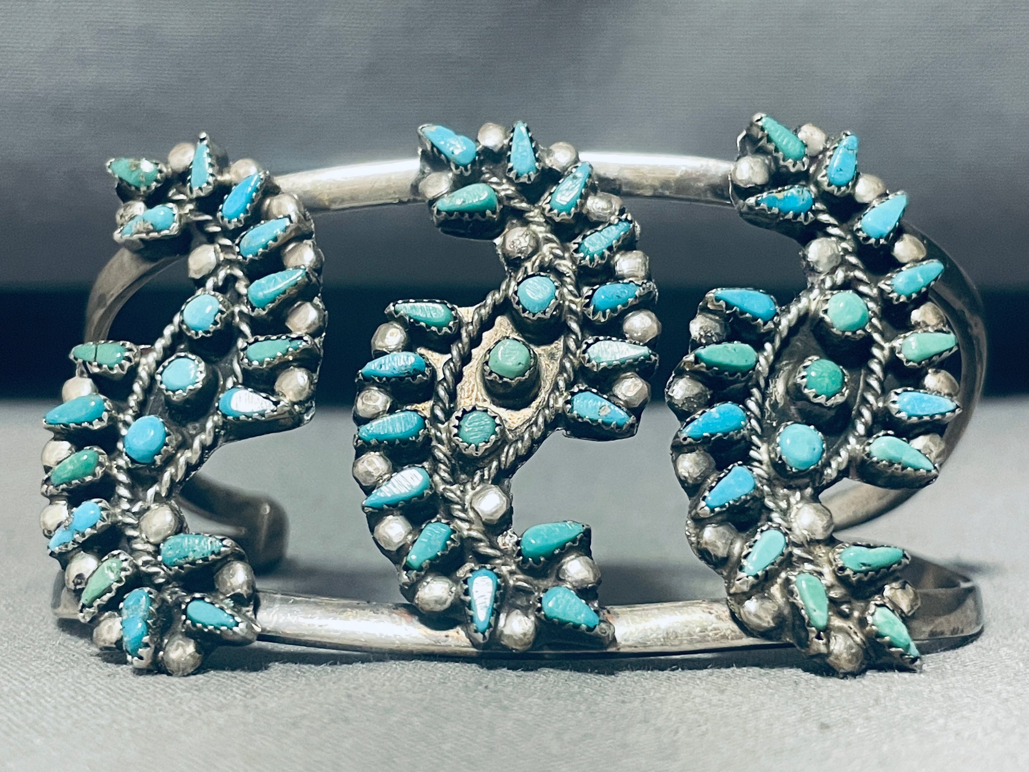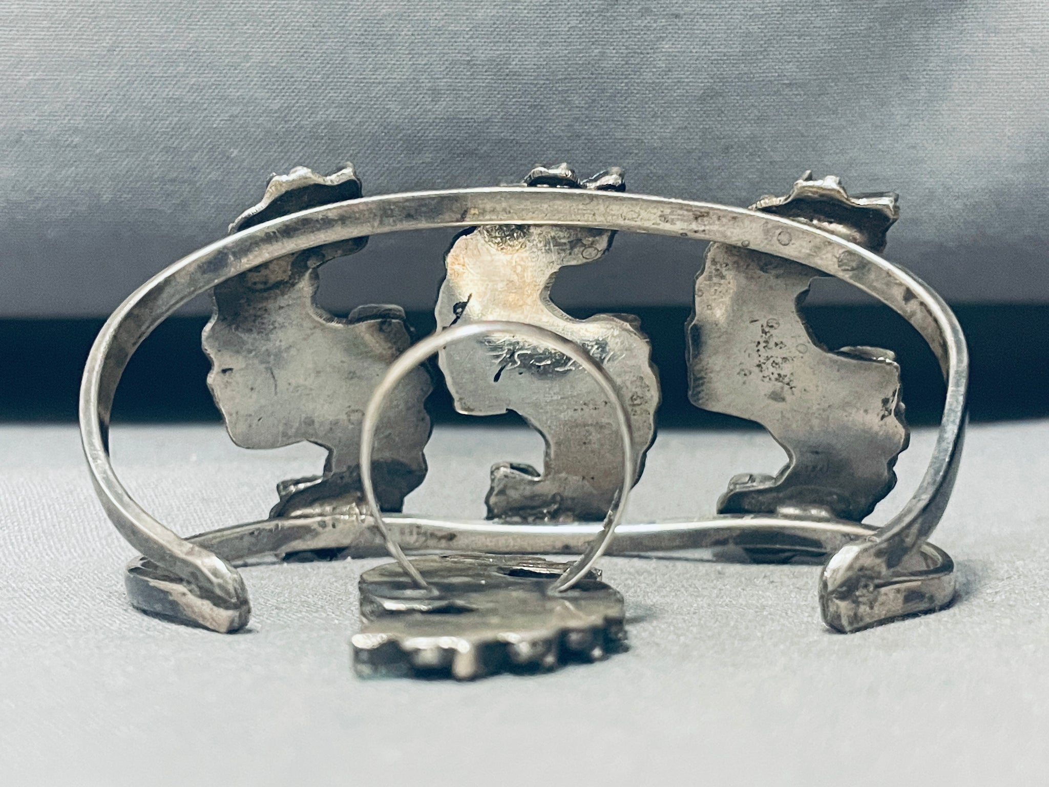 One Of The Best Early Vintage Native American Zuni Turquoise Sterling Silver Bracelet Ring Set
