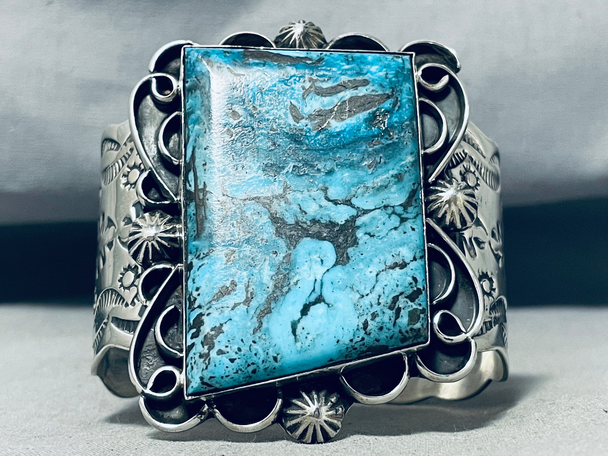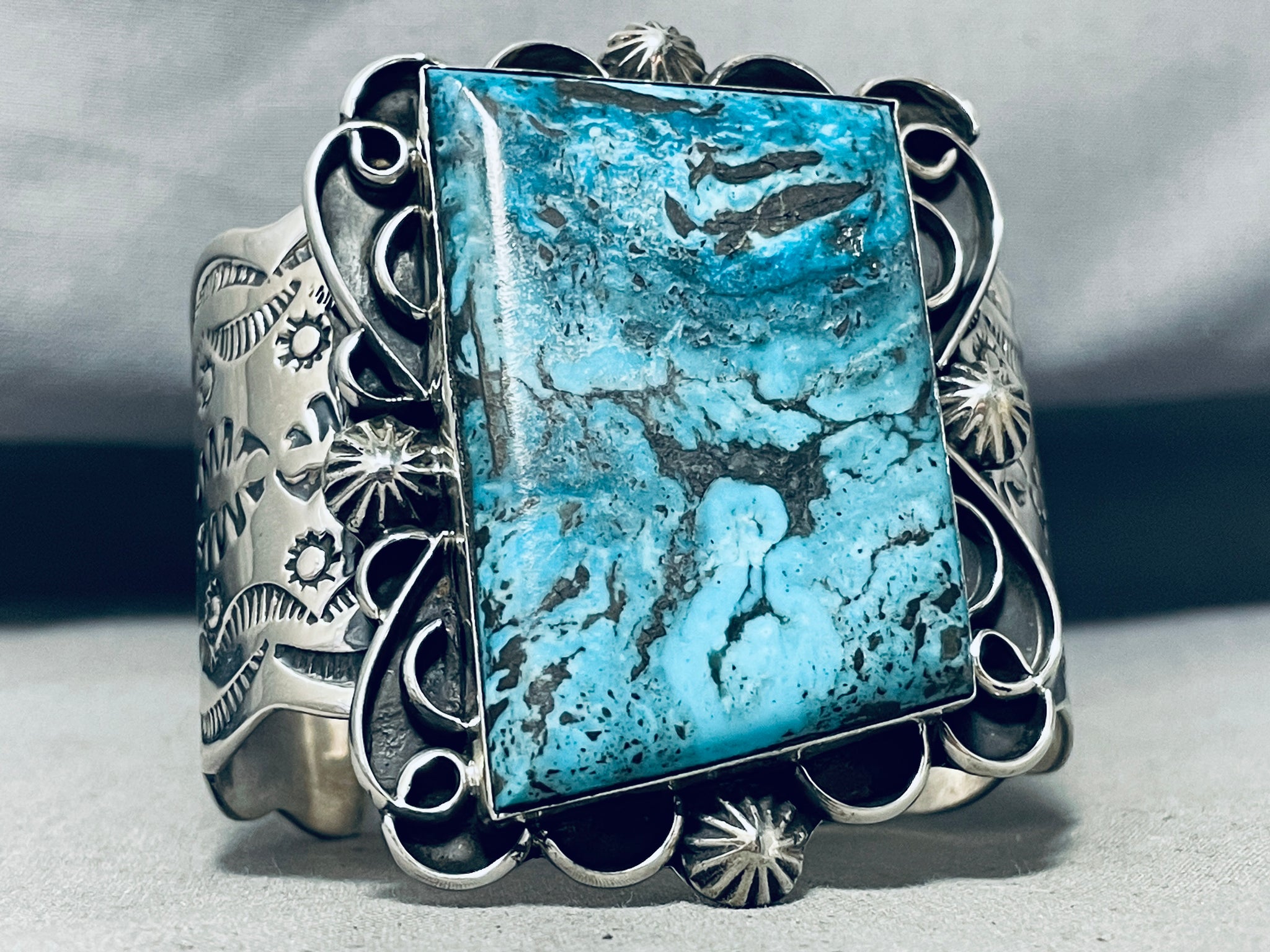 One Of The Best Ever Native American Navajo Blue Diamond Turquoise Sterling Silver Bracelet