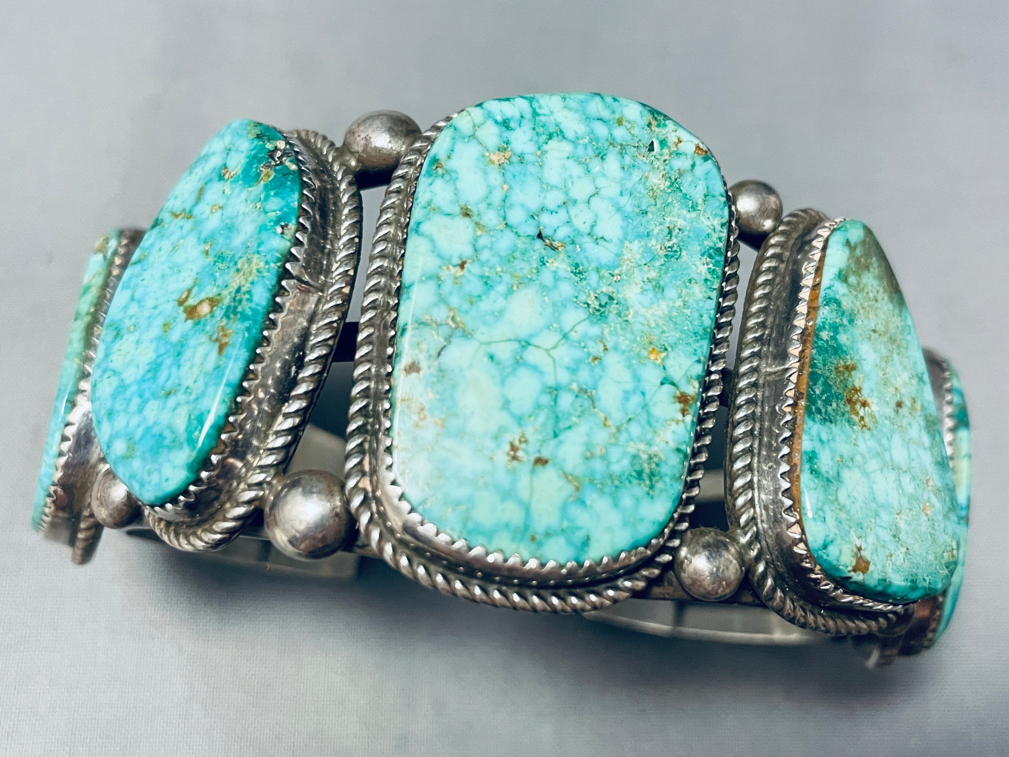 One Of The Best Ever Native American Navajo Guild Vintage Turquoise Sterling Silver Bracelet