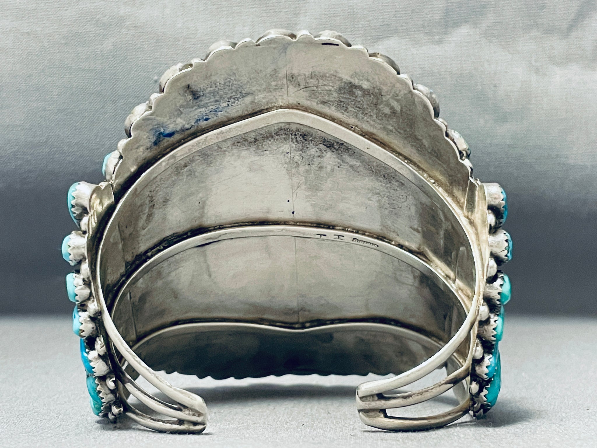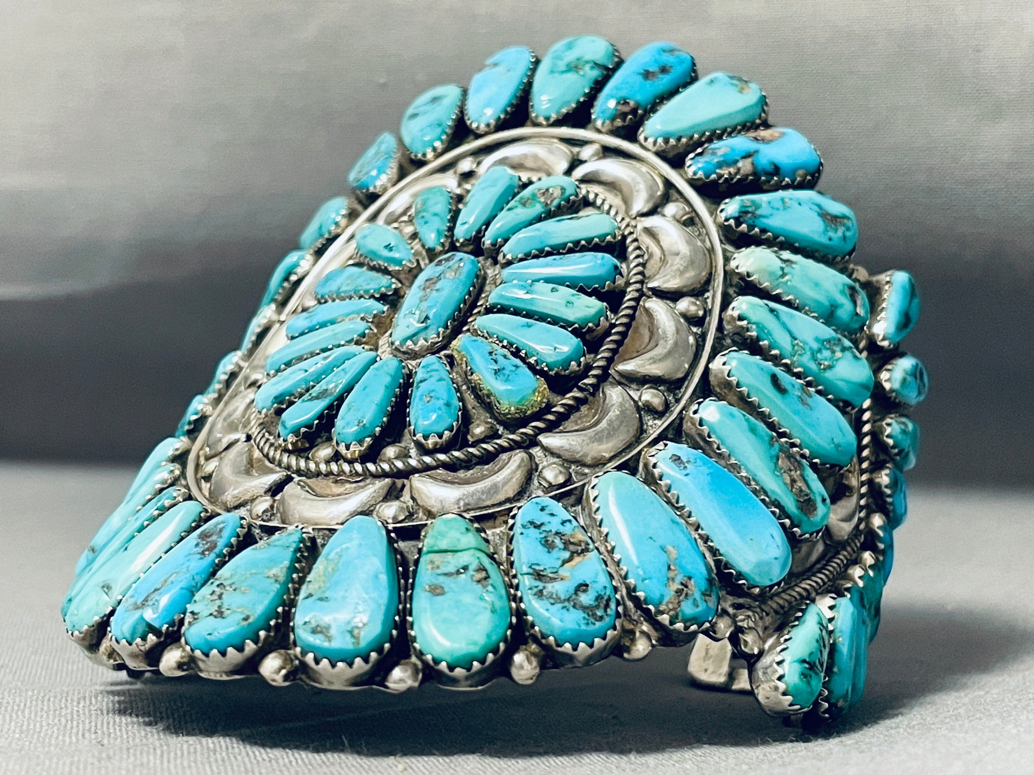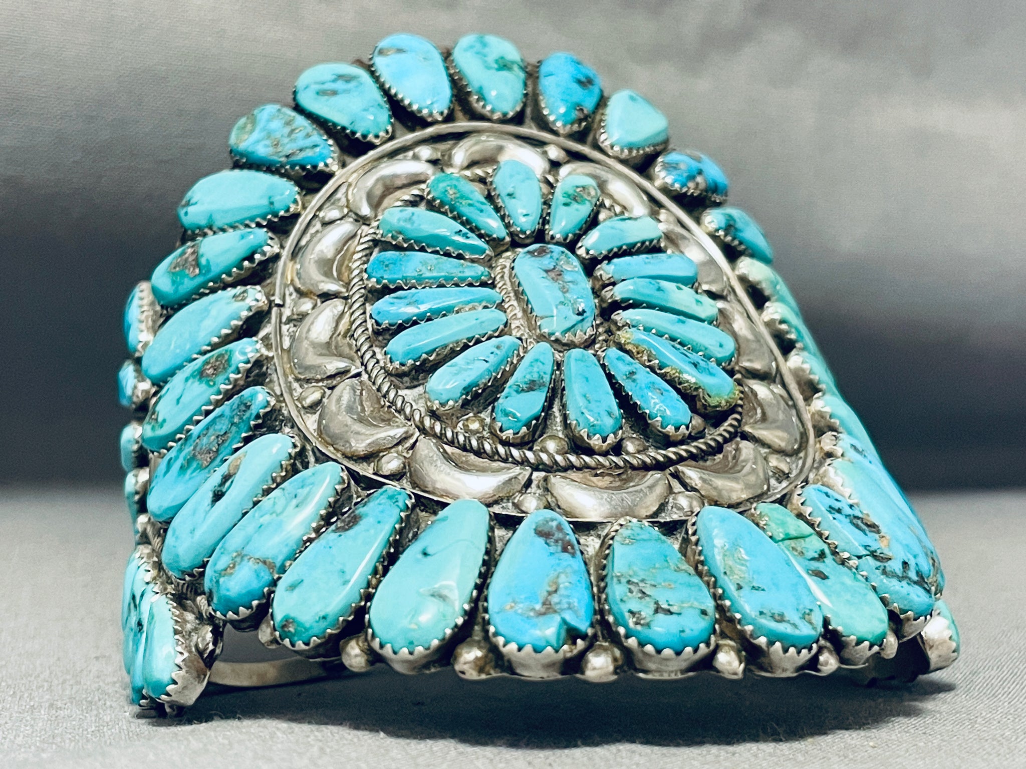 One Of The Best Ever Vintage Native American Navajo Turquoise Cluster Sterling Silver Bracelet