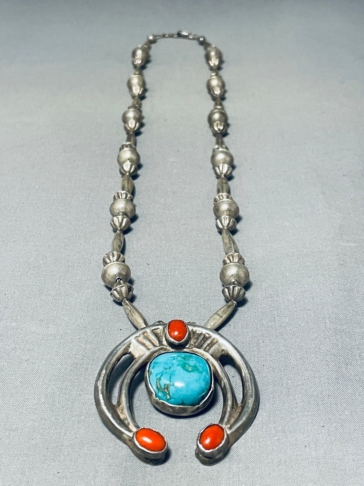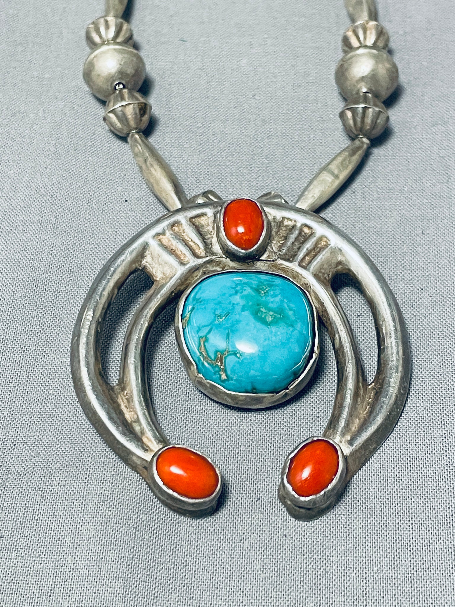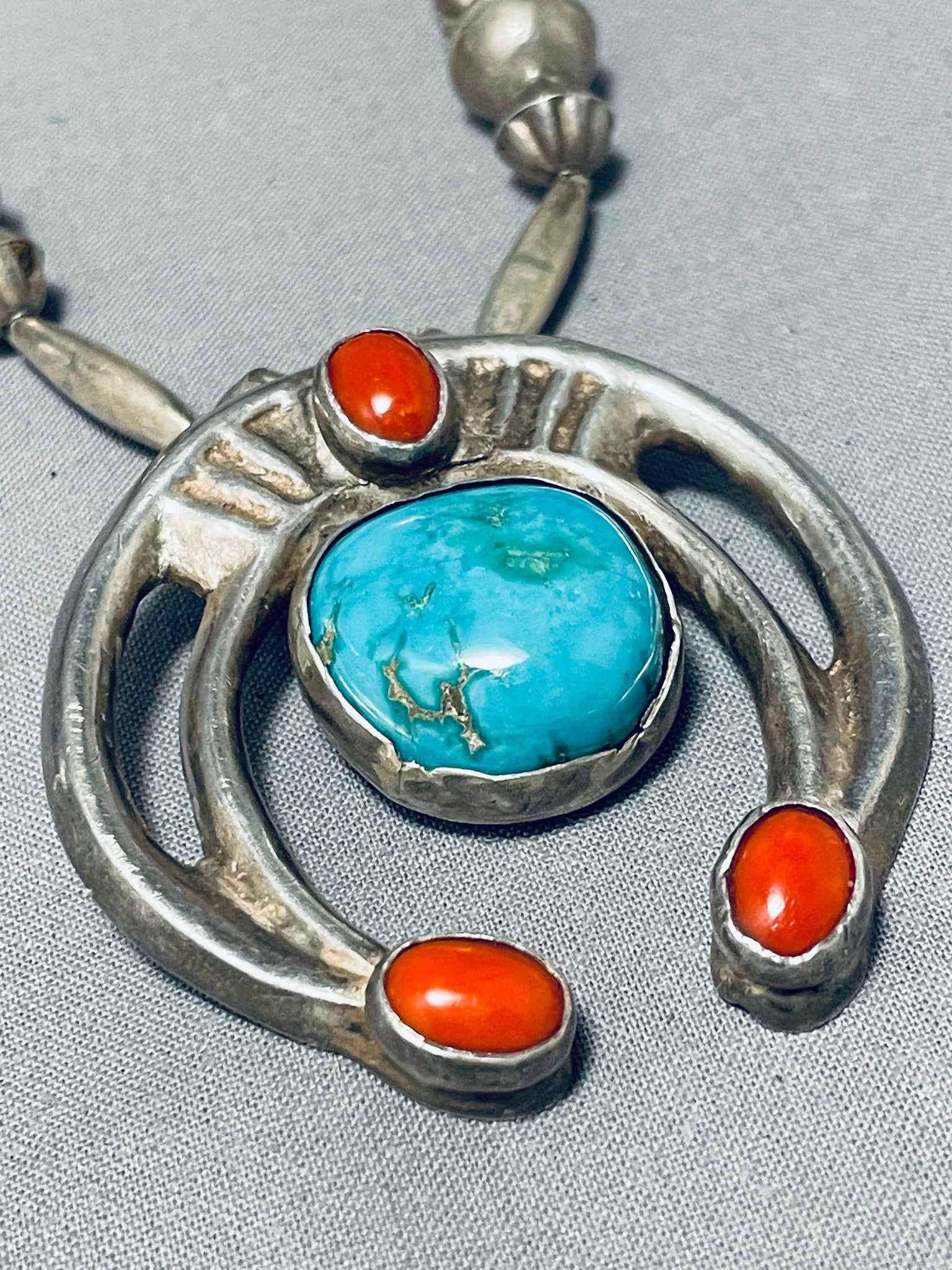 One Of The Best Hand Tooled Vintage Native American Navajo Turquoise Sterling Silver Necklace