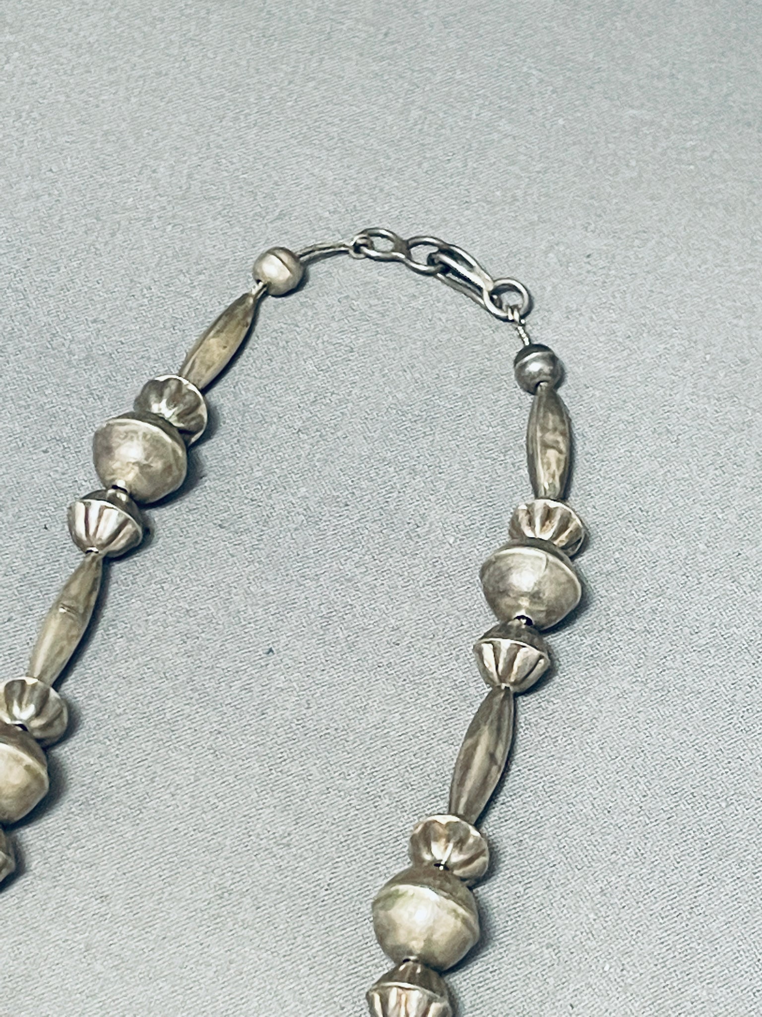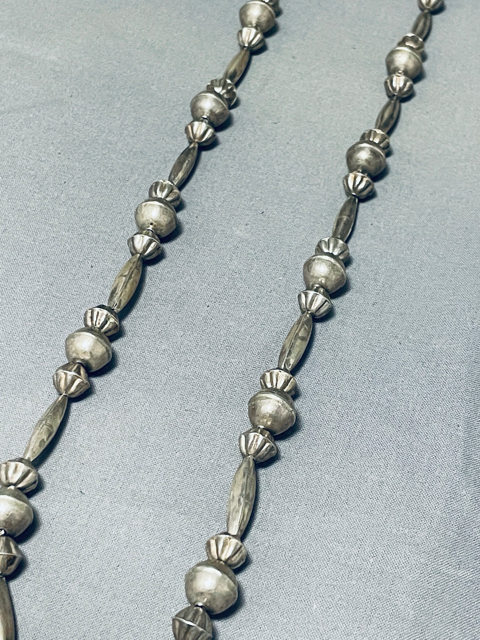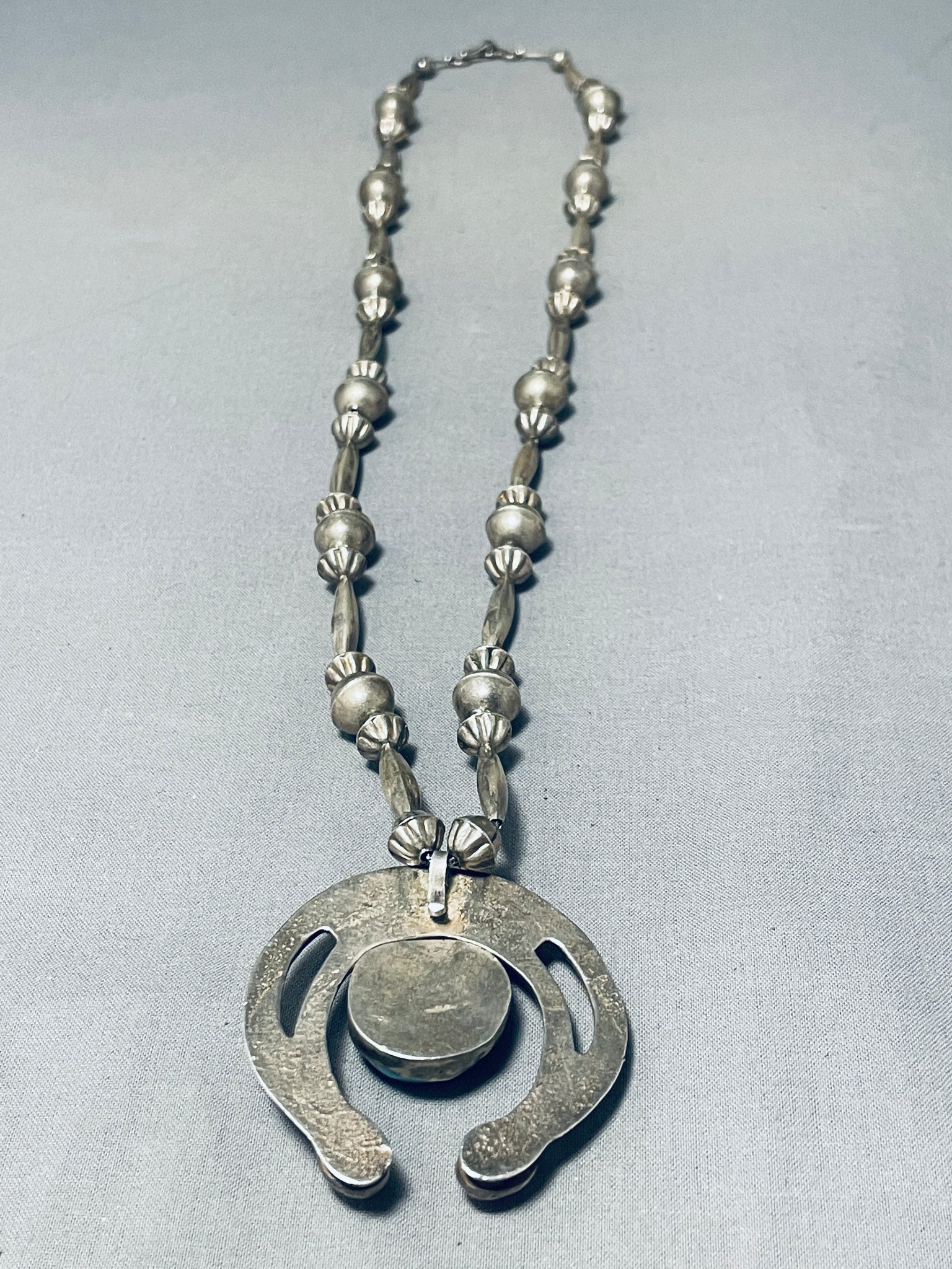 One Of The Best Hand Tooled Vintage Native American Navajo Turquoise Sterling Silver Necklace