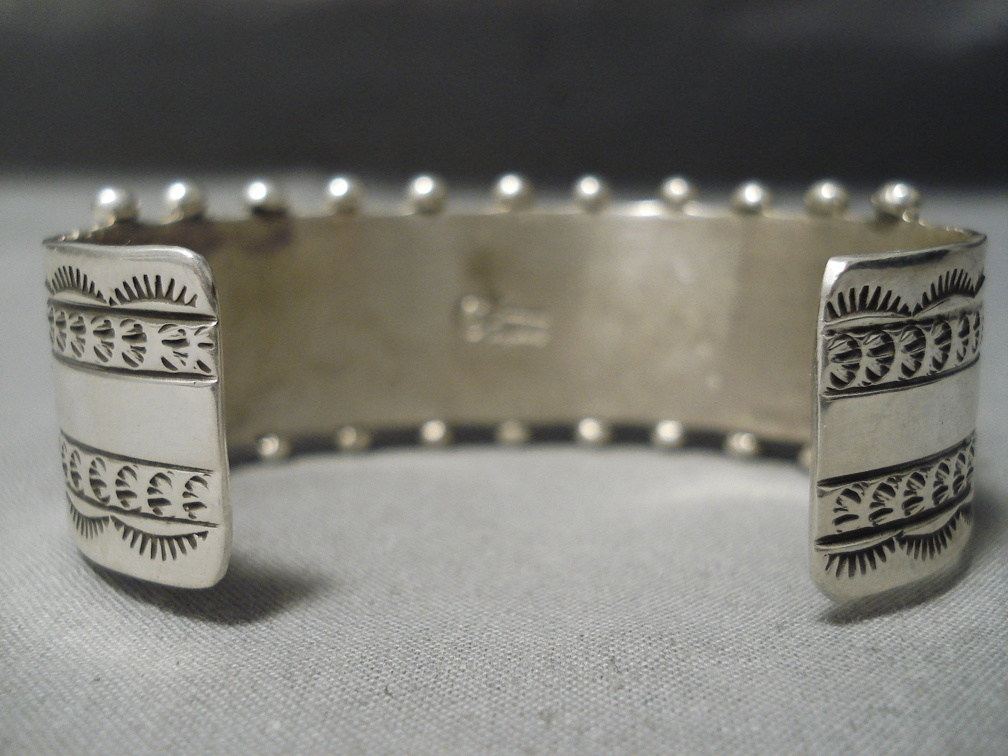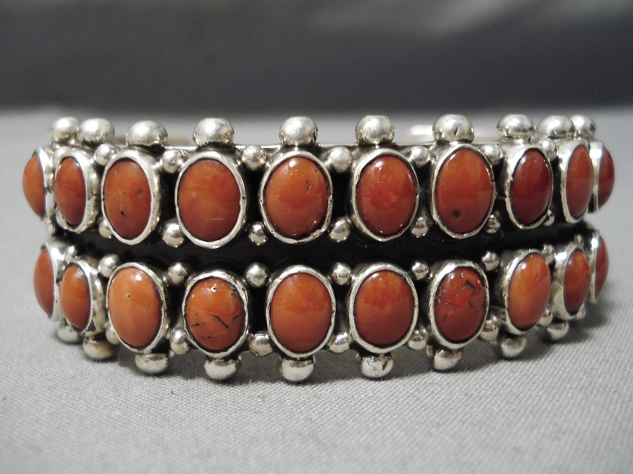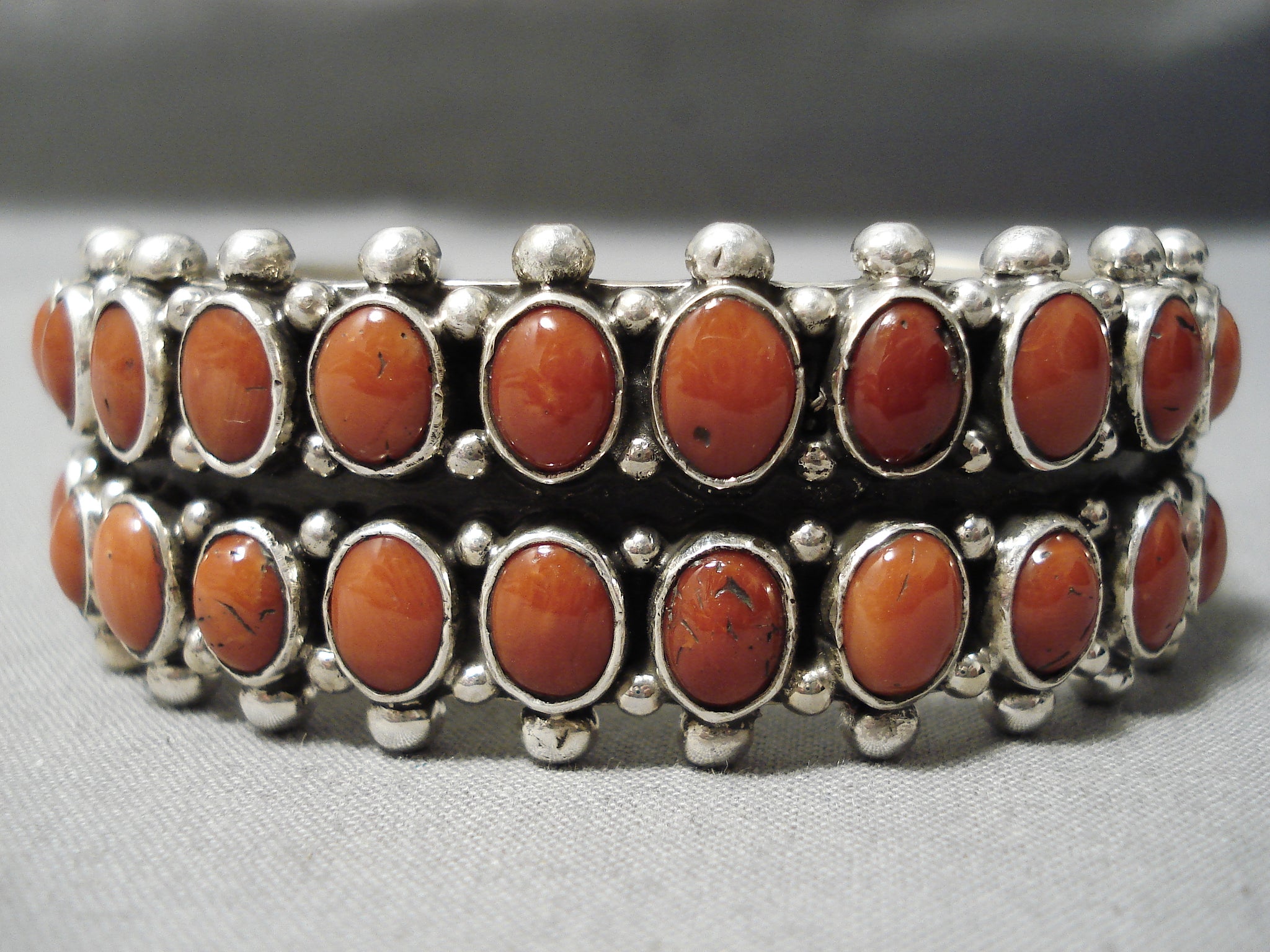 One Of The Best Native American Navajo Domed Coral Sterling Silver Bracelet Heavy!
