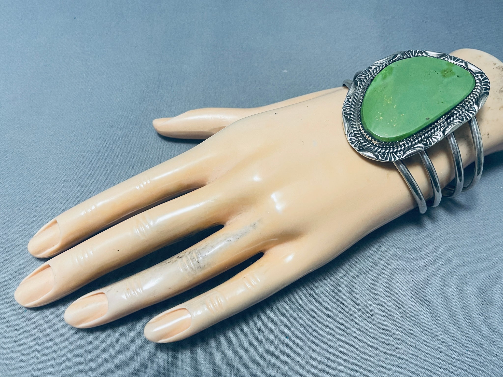 One Of The Best Native American Navajo Gaspeite Sterling Silver Bracelet Cuff