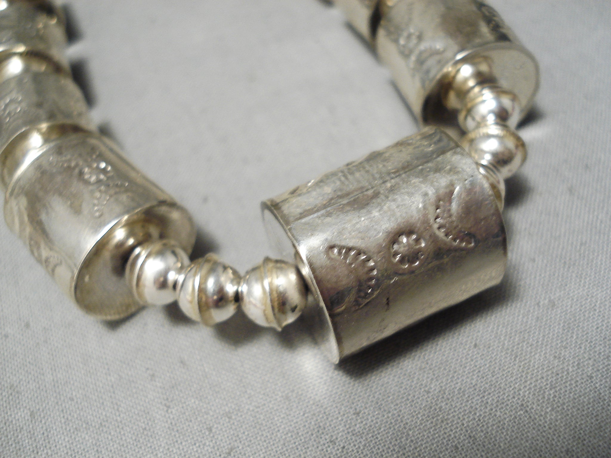 One Of The Best Native American Navajo Tubule Sterling Silver Necklace Earrings Set