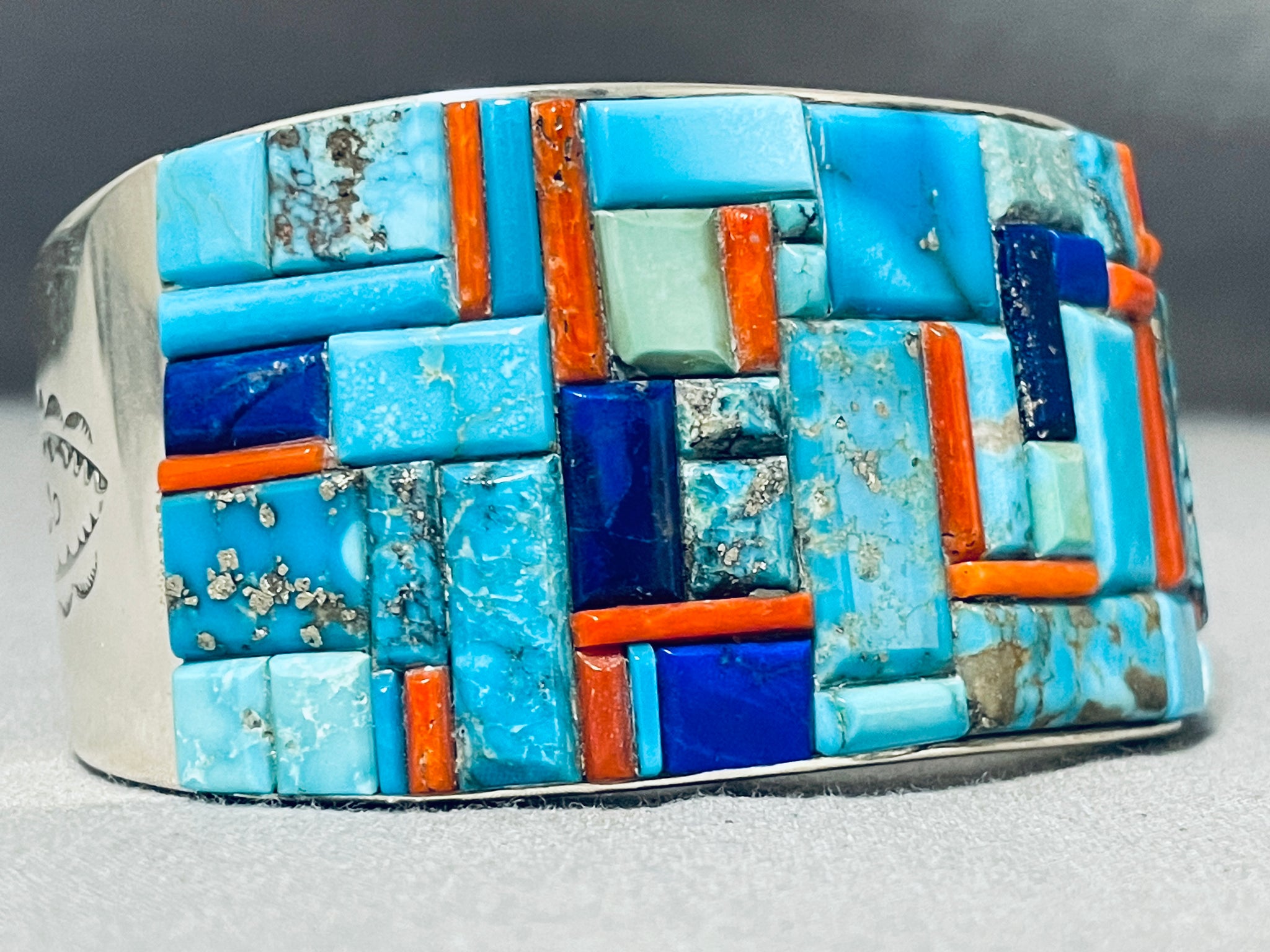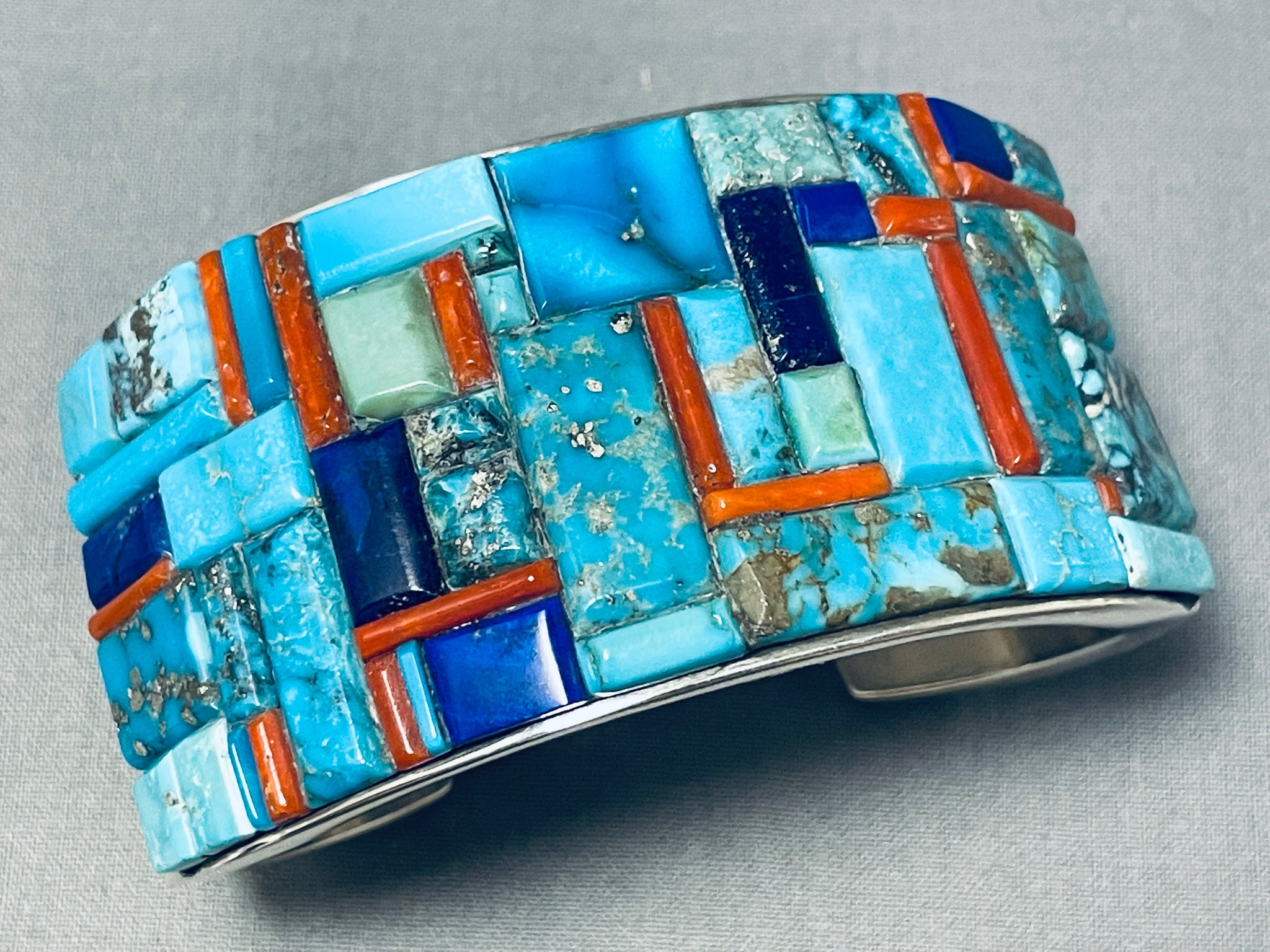 One Of The Best Native American Navajo Turquoise Coral Sterling Silver Bracelet