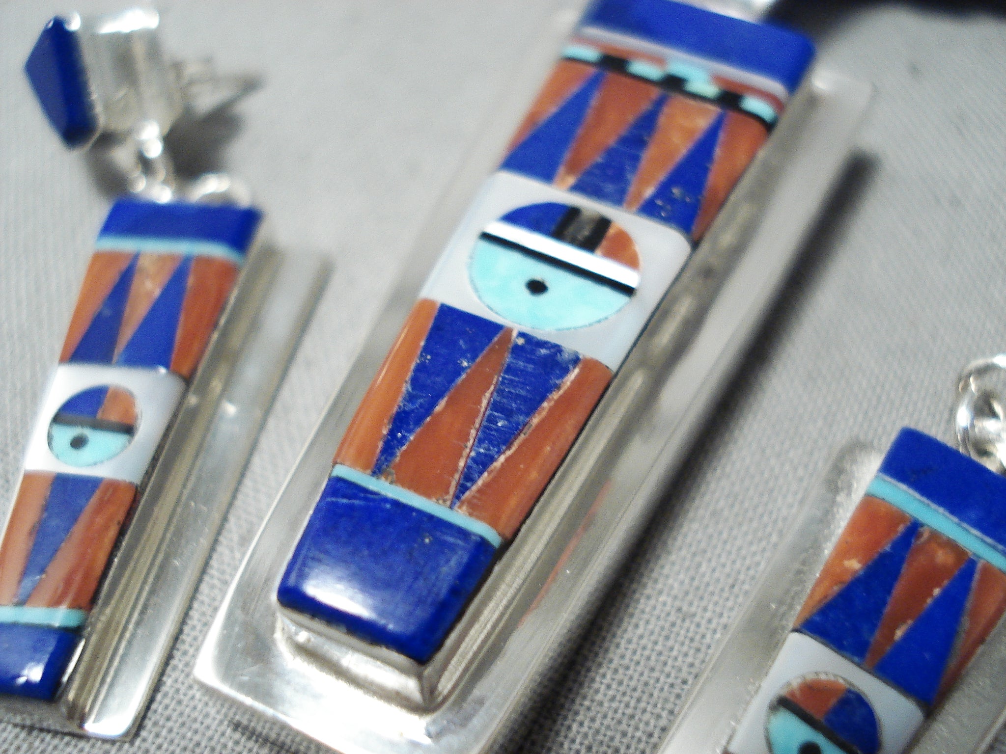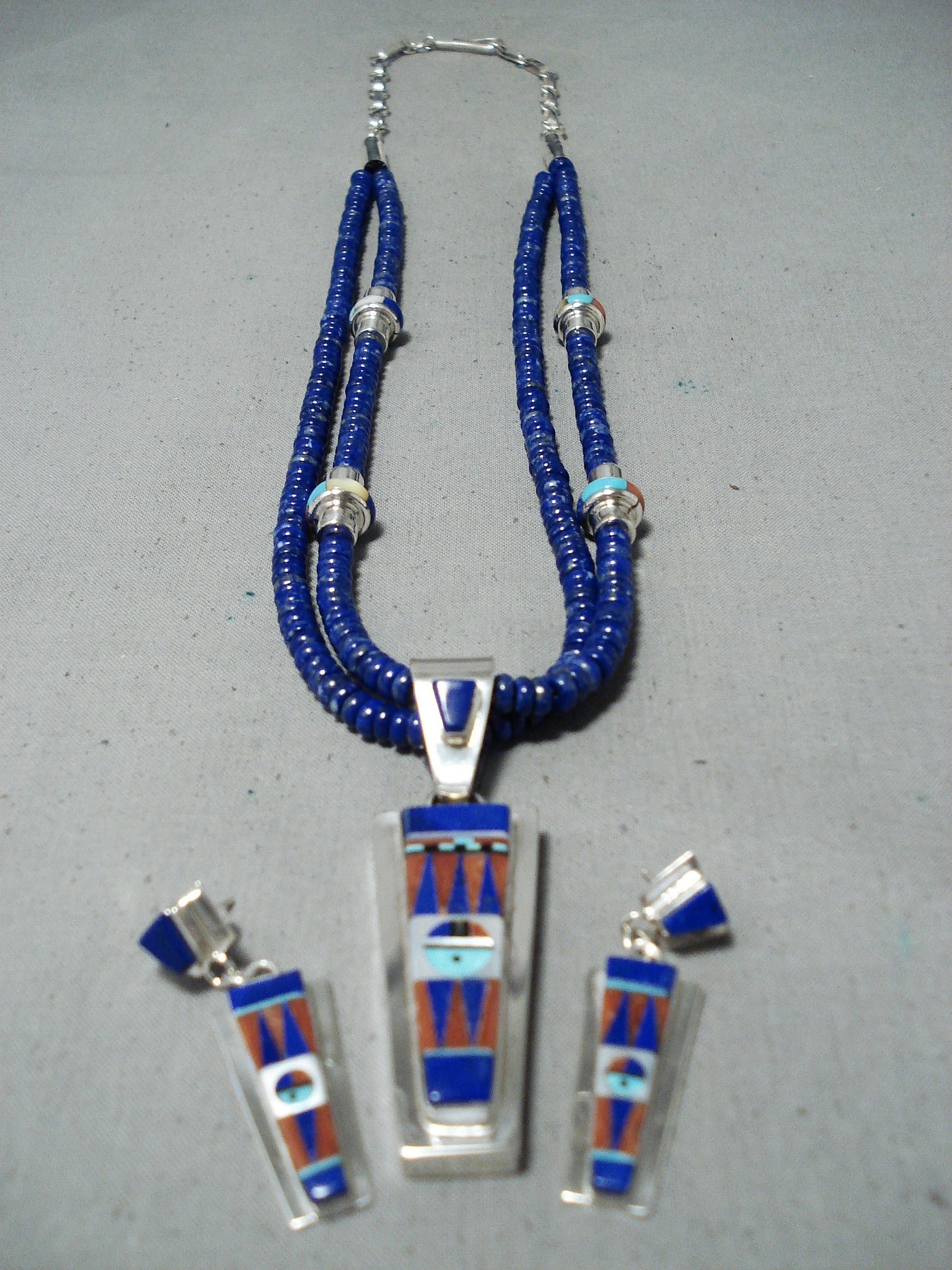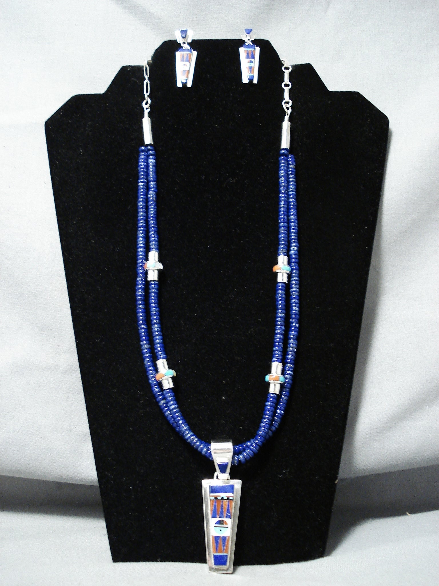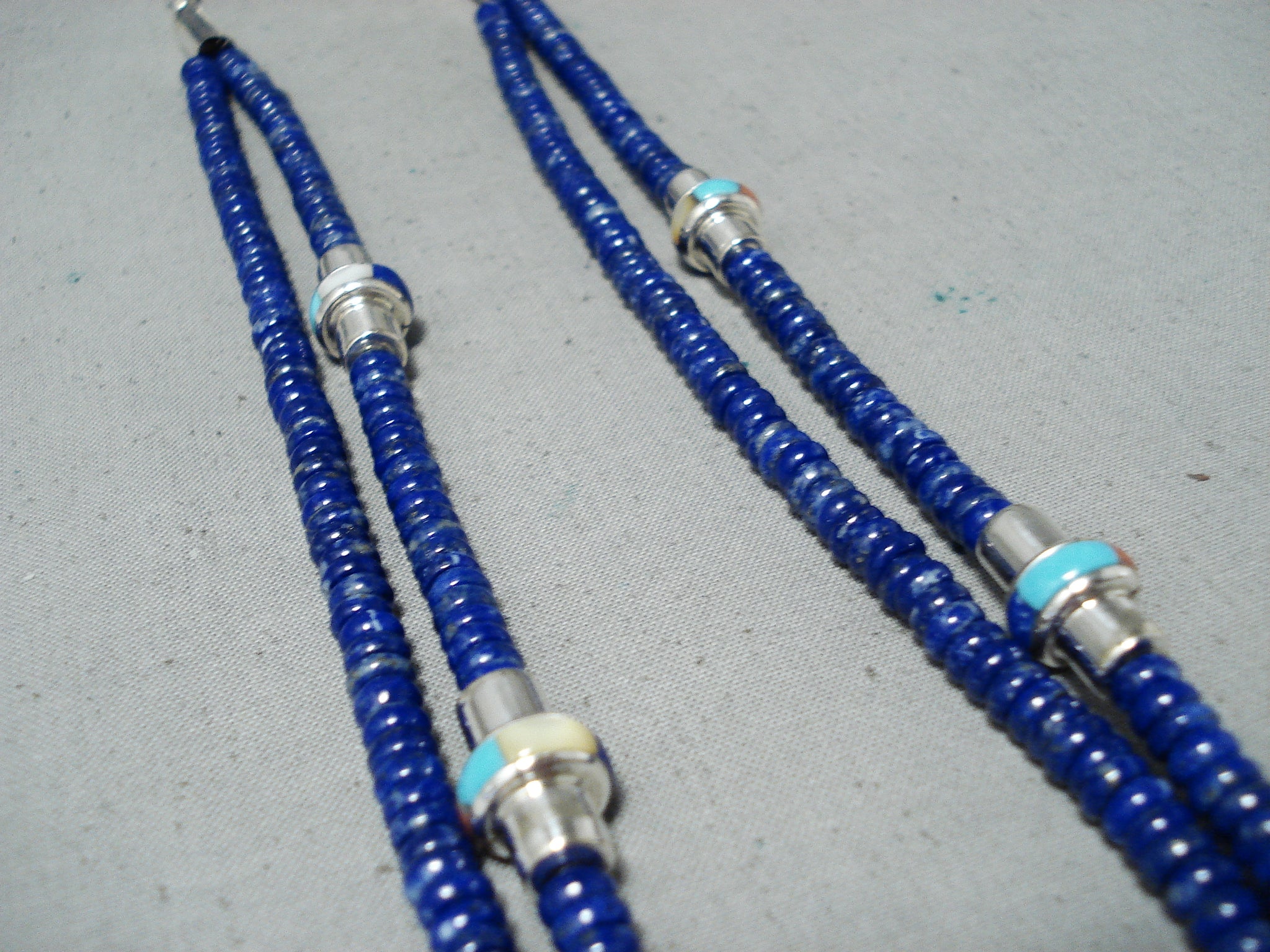 One Of The Best Native American Zuni Lapis Sterling Silver Inlay Necklace