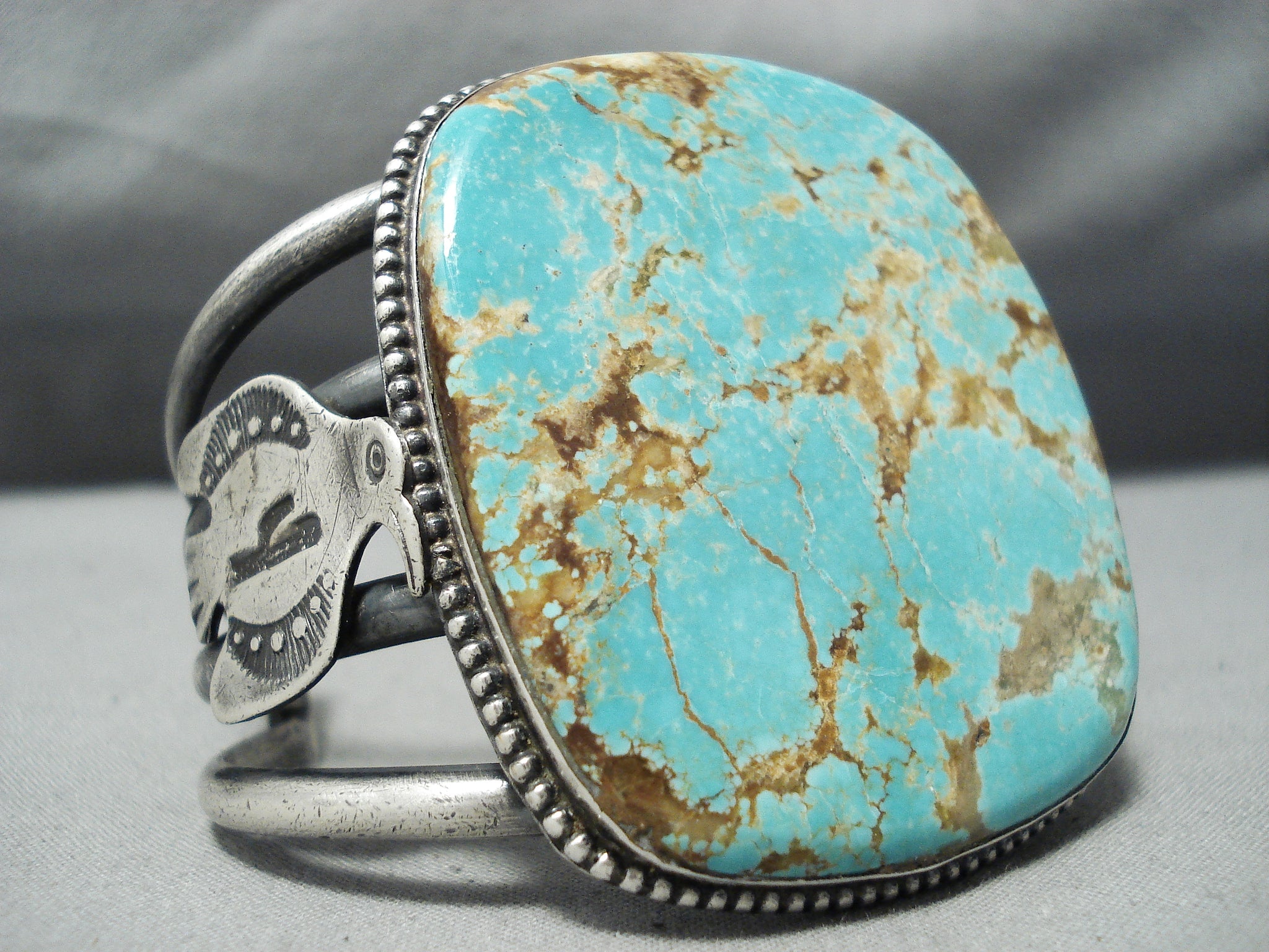 One Of The Best Vintage Native American Navajo #8 Turquoise Sterling Silver Thunderbird Bracelet
