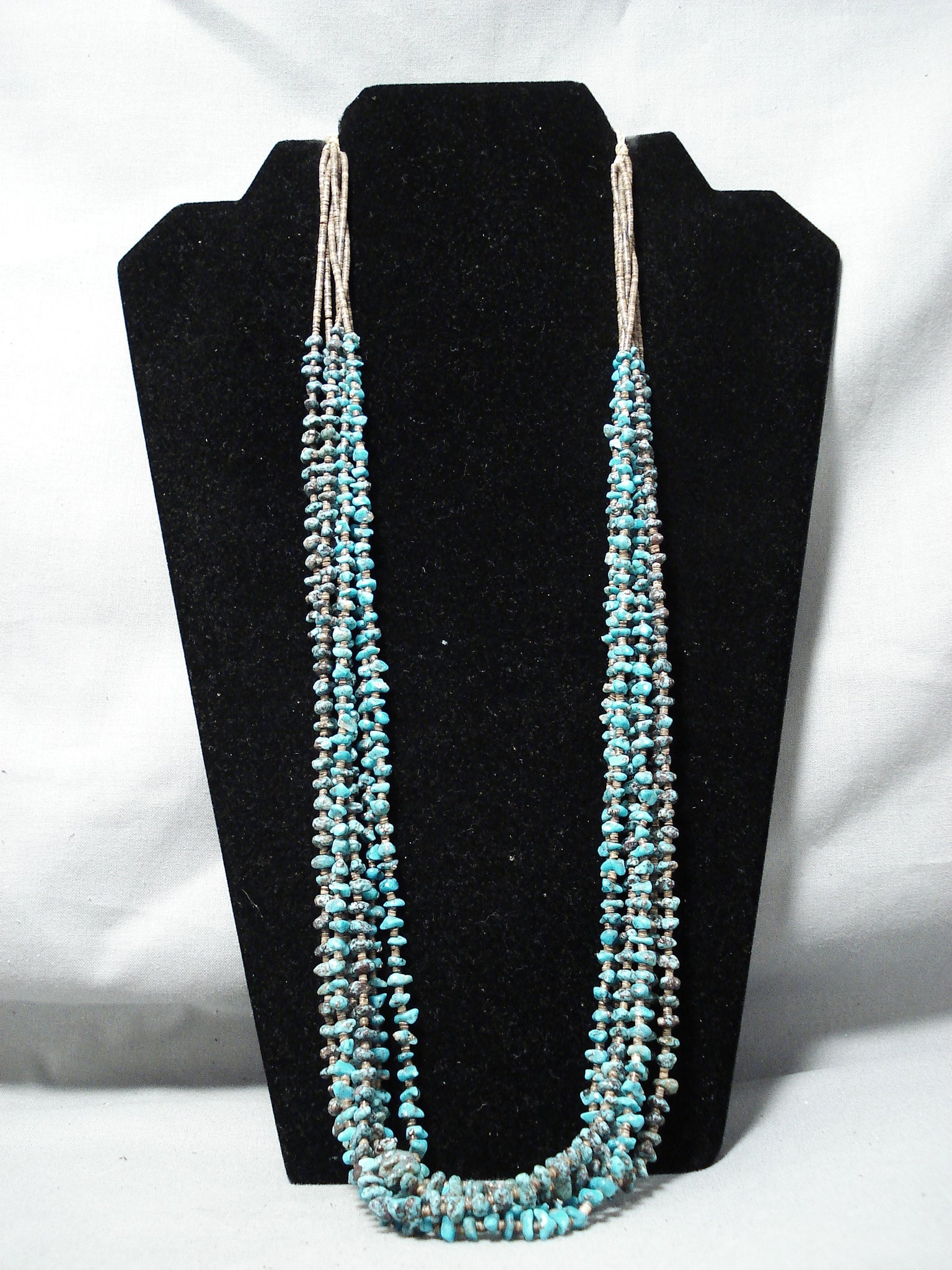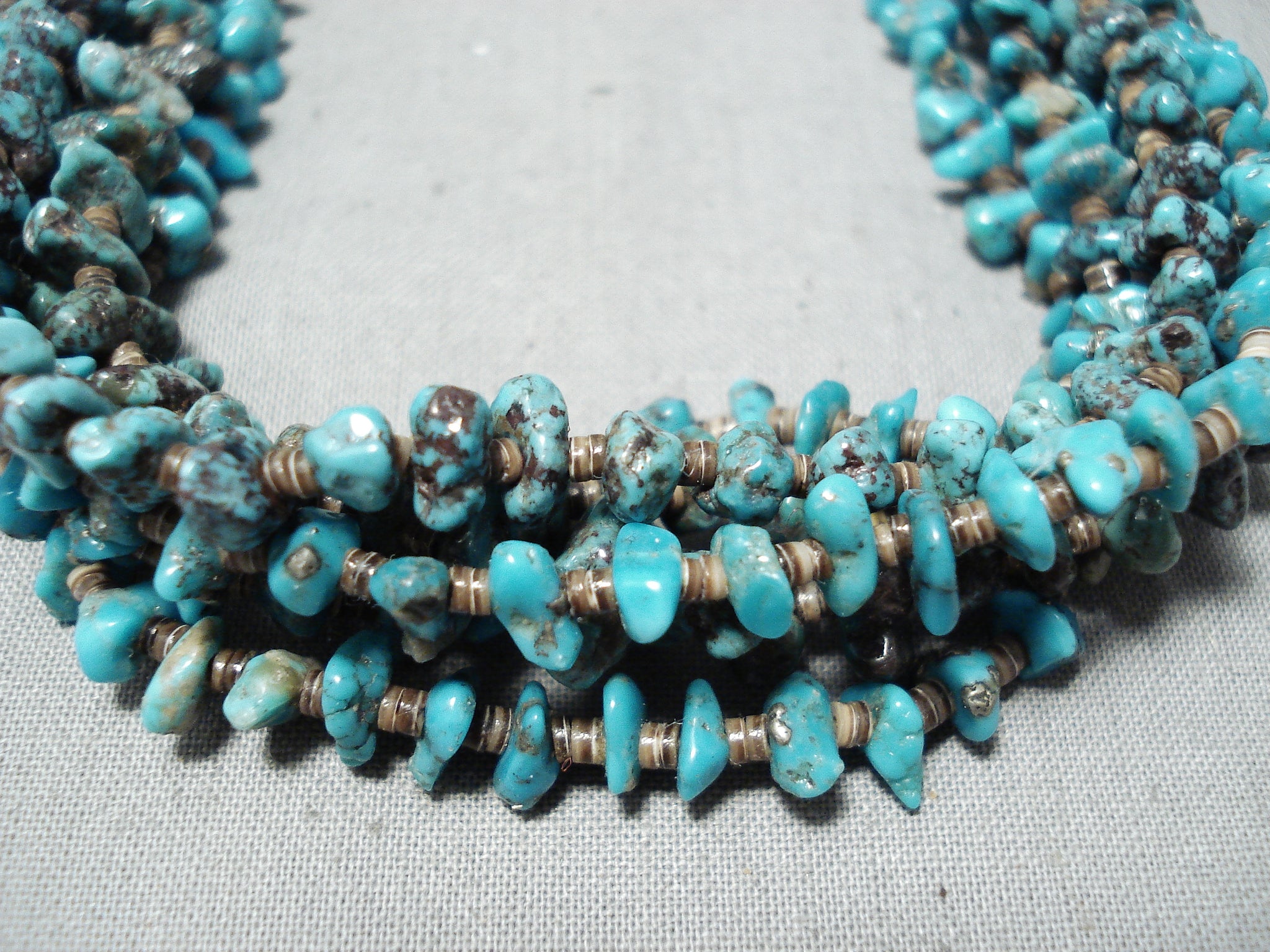 One Of The Best Vintage Native American Navajo Bisbee Turquoise Heishi Necklace Old
