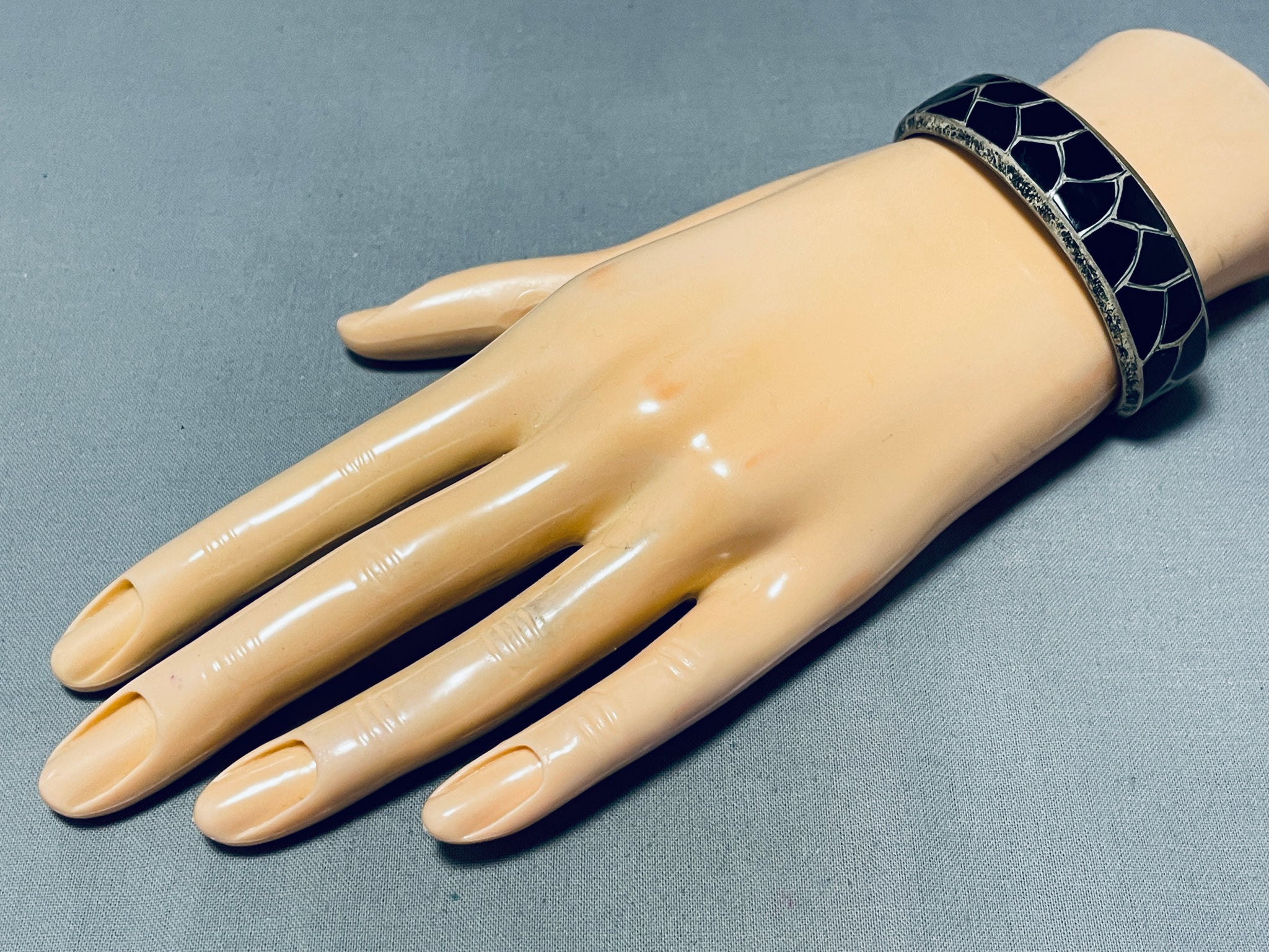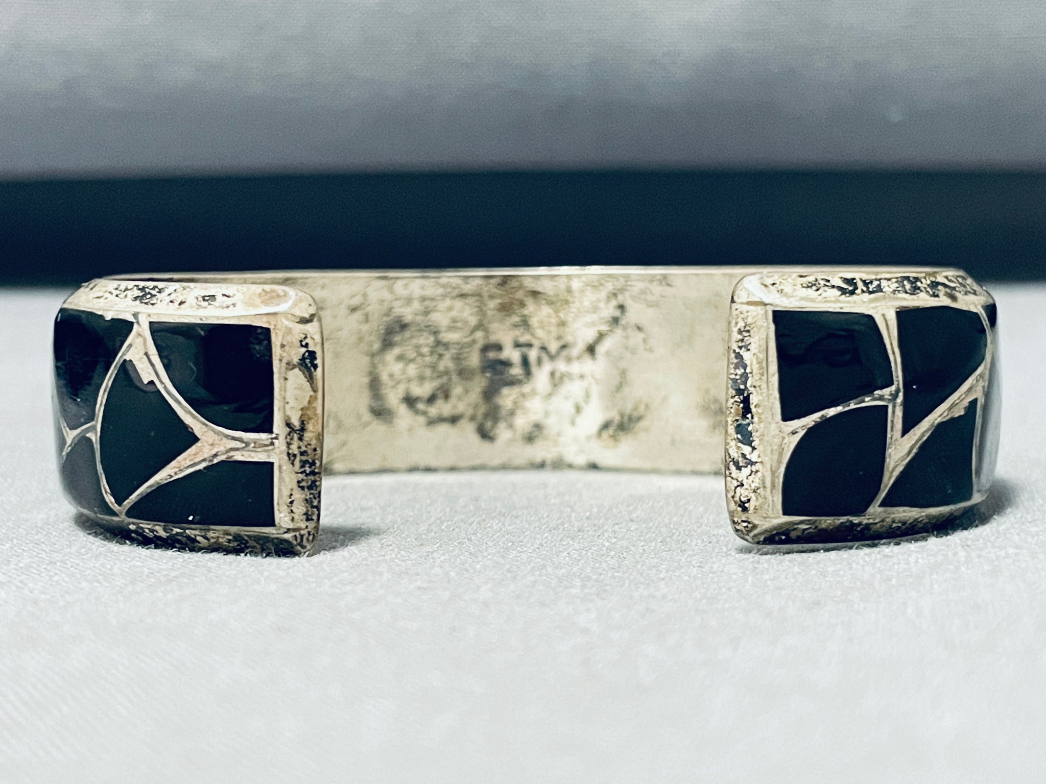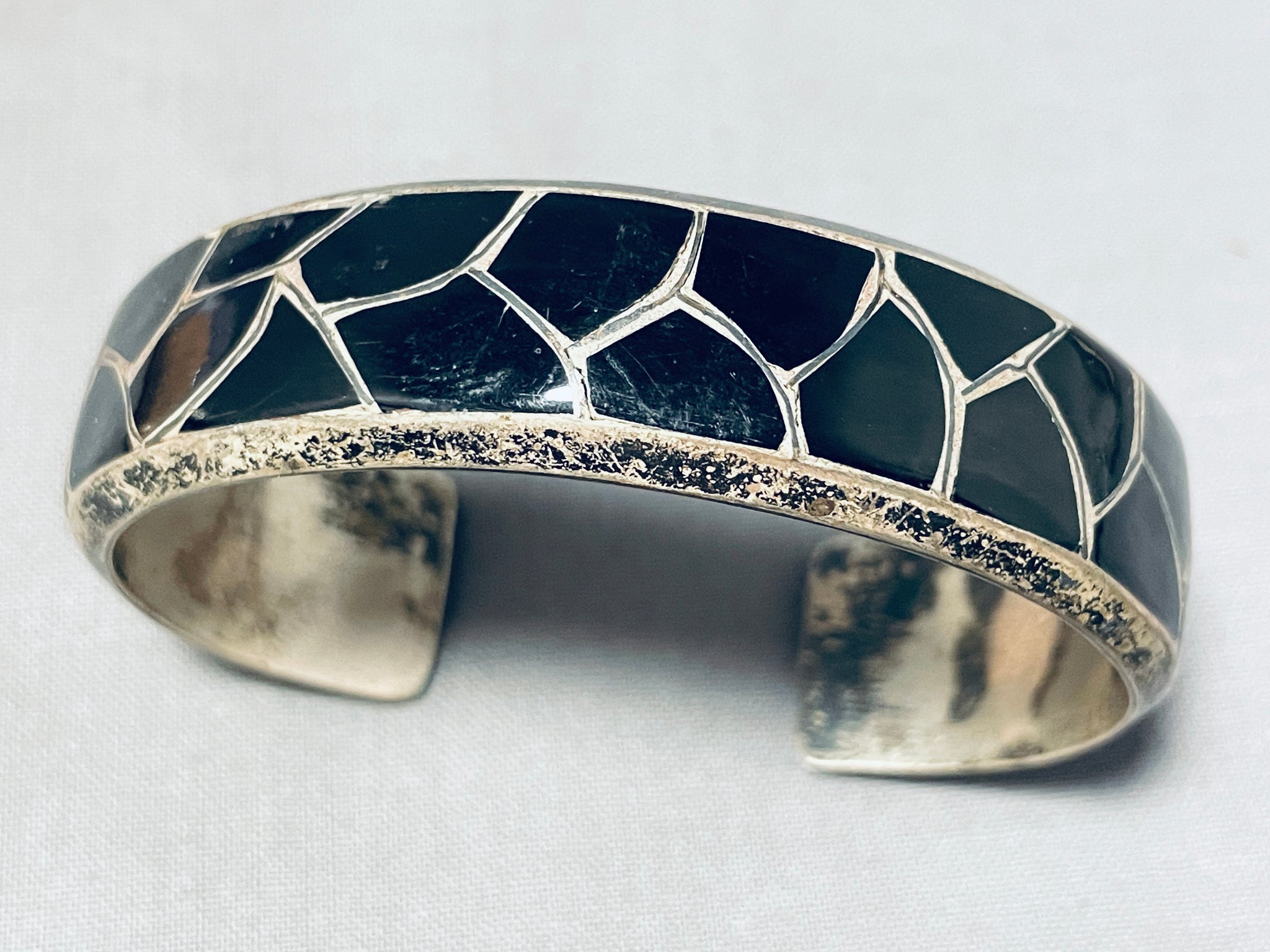 One Of The Best Vintage Native American Navajo Black Onyx Sterling Silver Bracelet