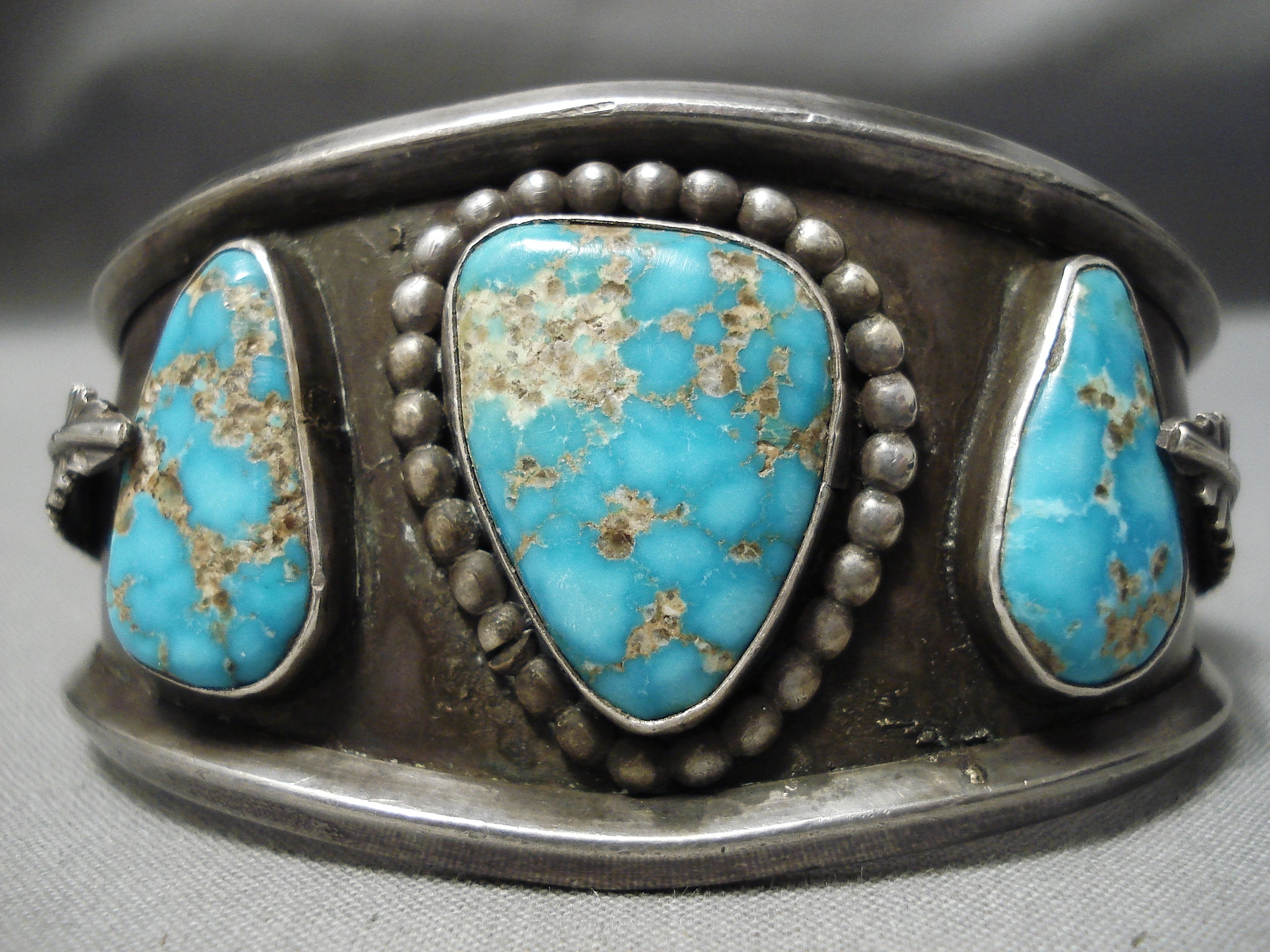 One Of The Best Vintage Native American Navajo Carico Lake Turquoise Sterling Silver Bracelet