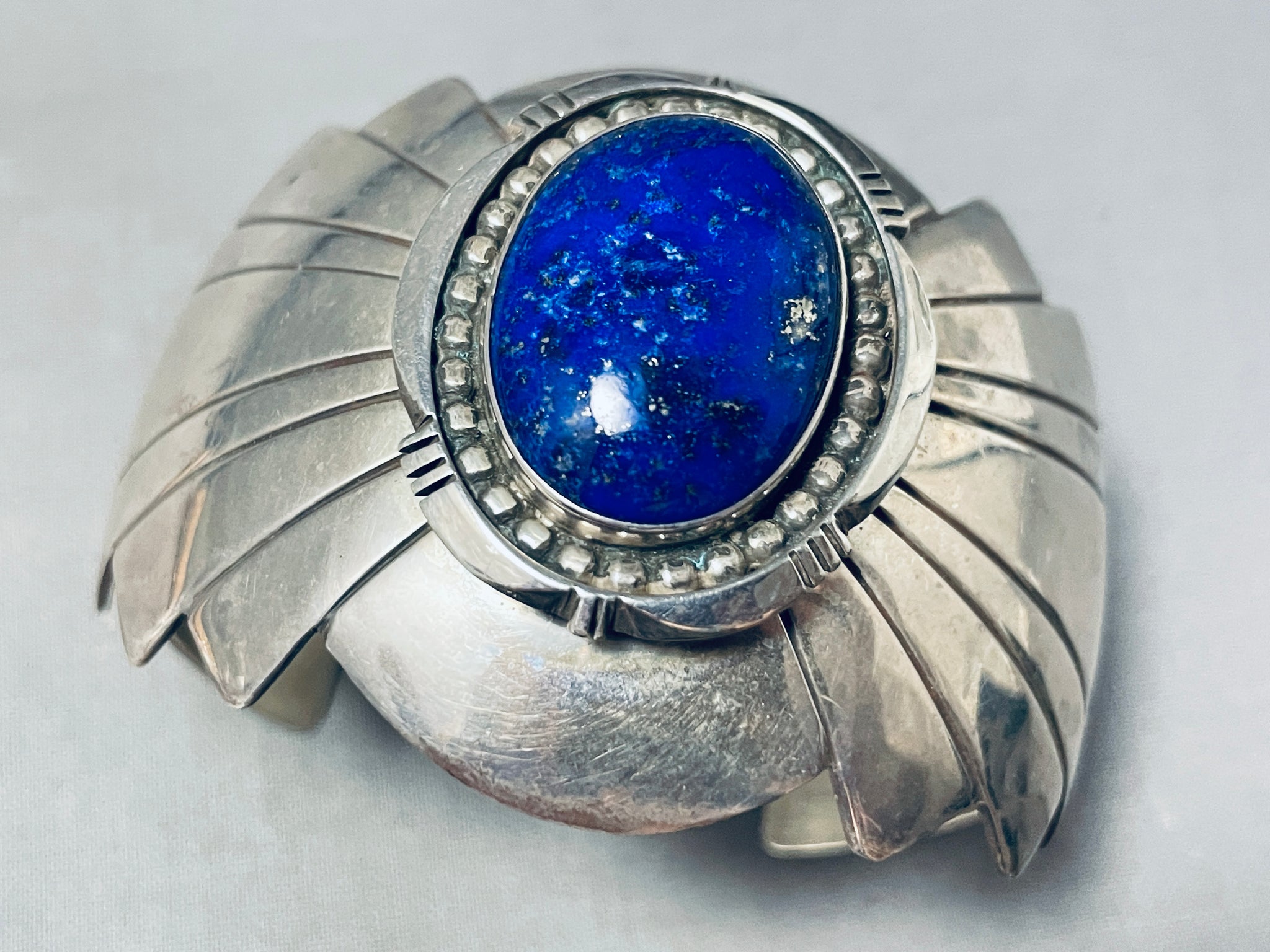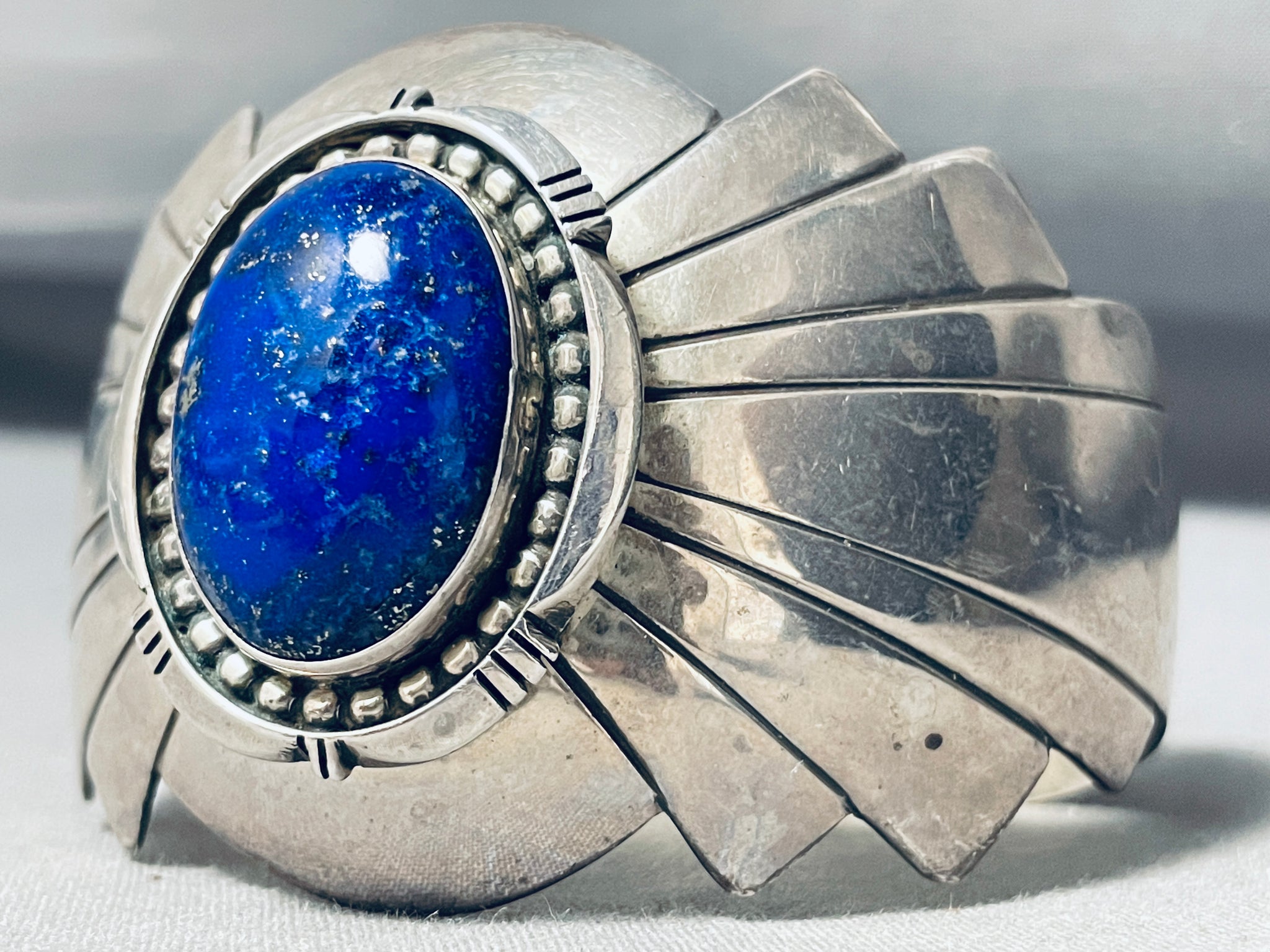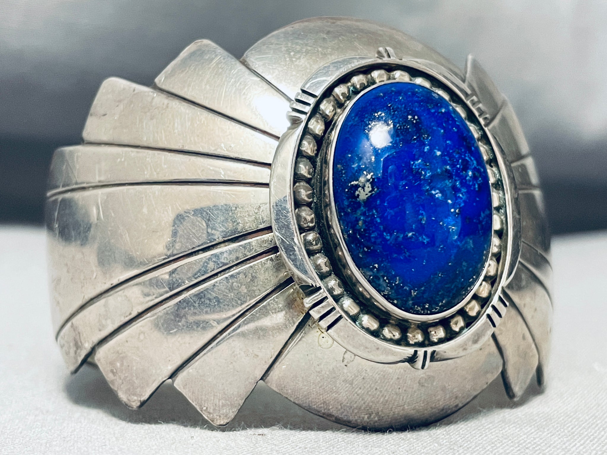 One Of The Best Vintage Native American Navajo Domed Lapis Sterling Silver Bracelet