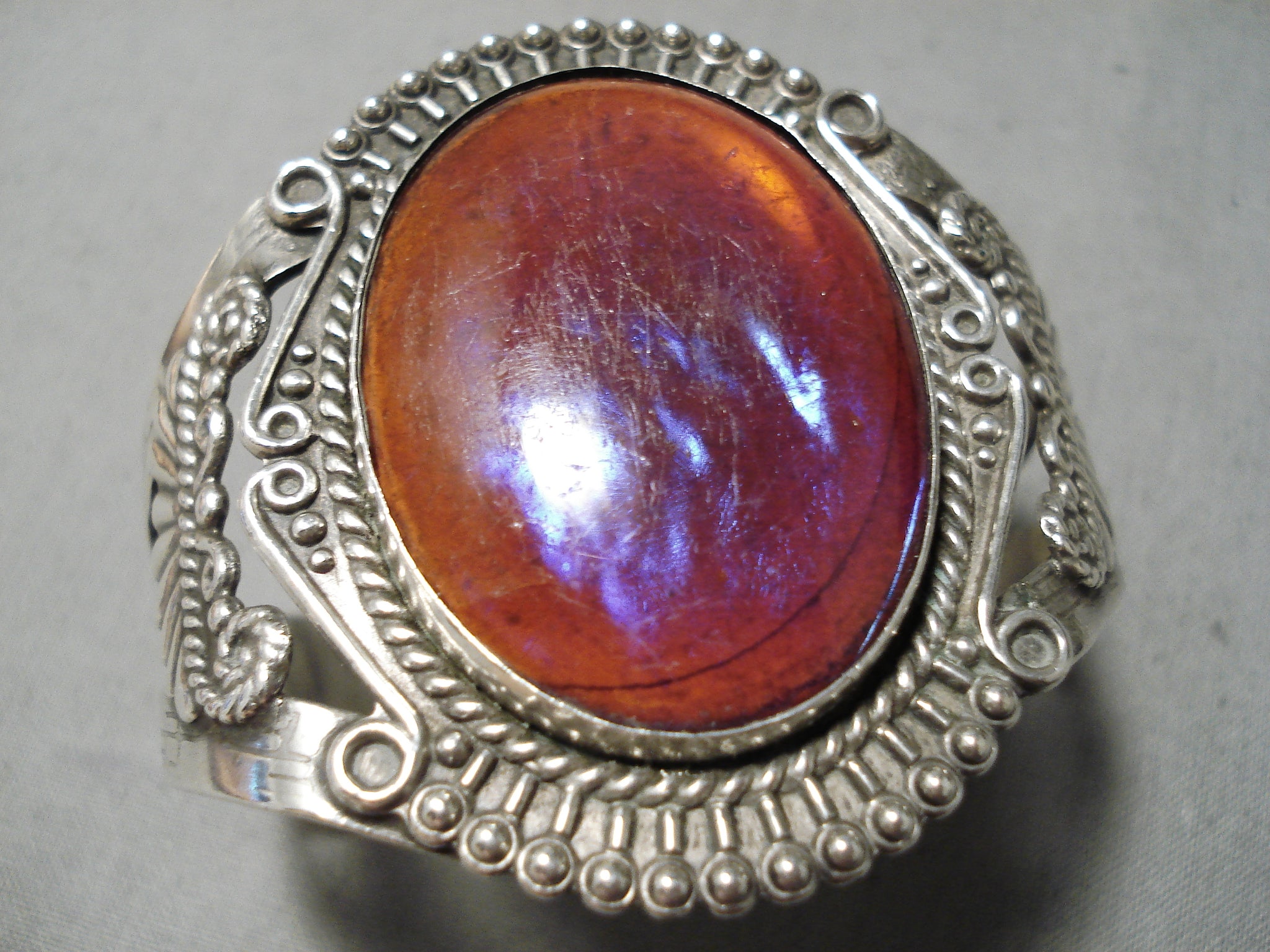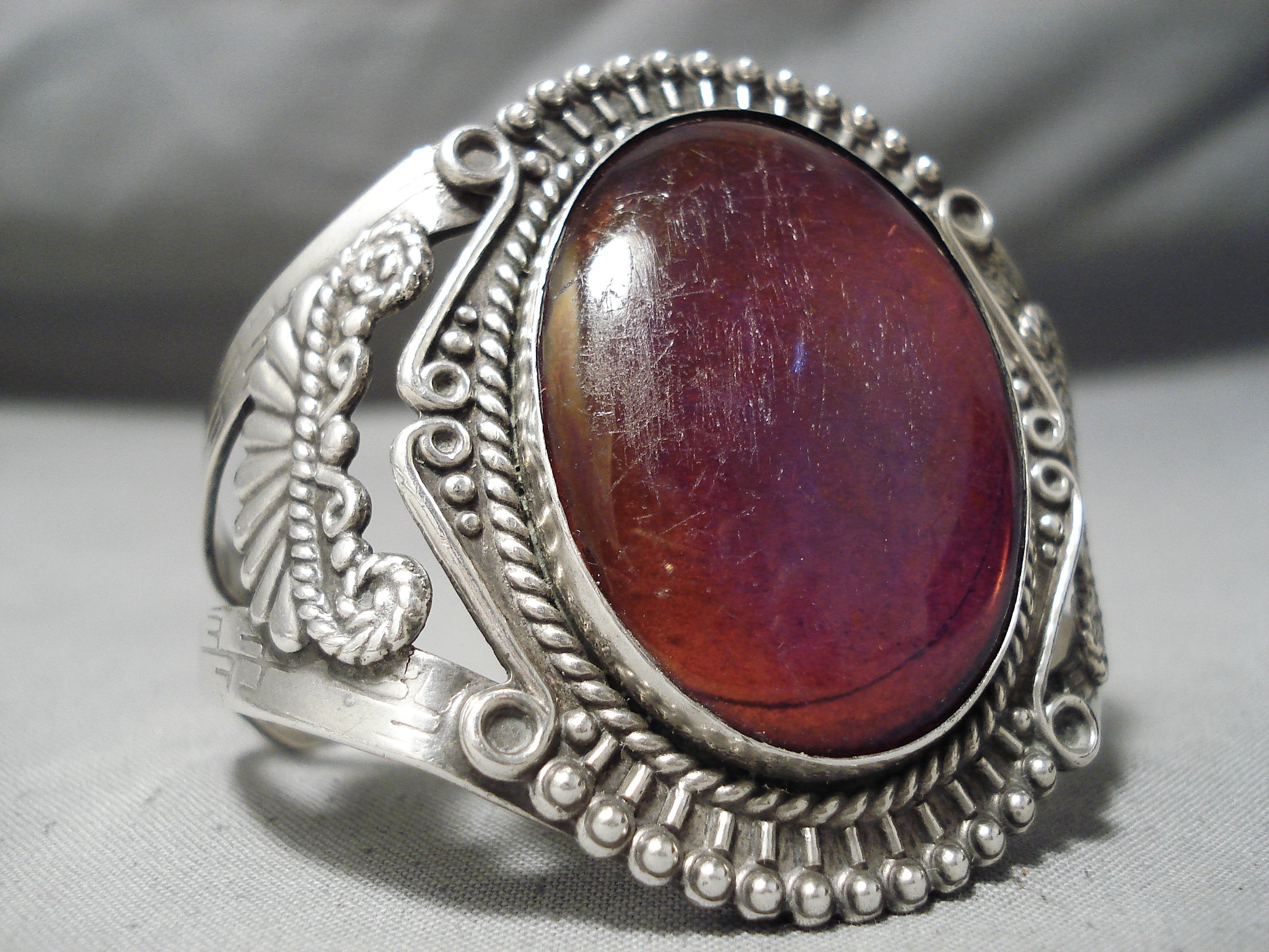 One Of The Best Vintage Native American Navajo Dragon's Breath Opal Sterling Silver Bracelet