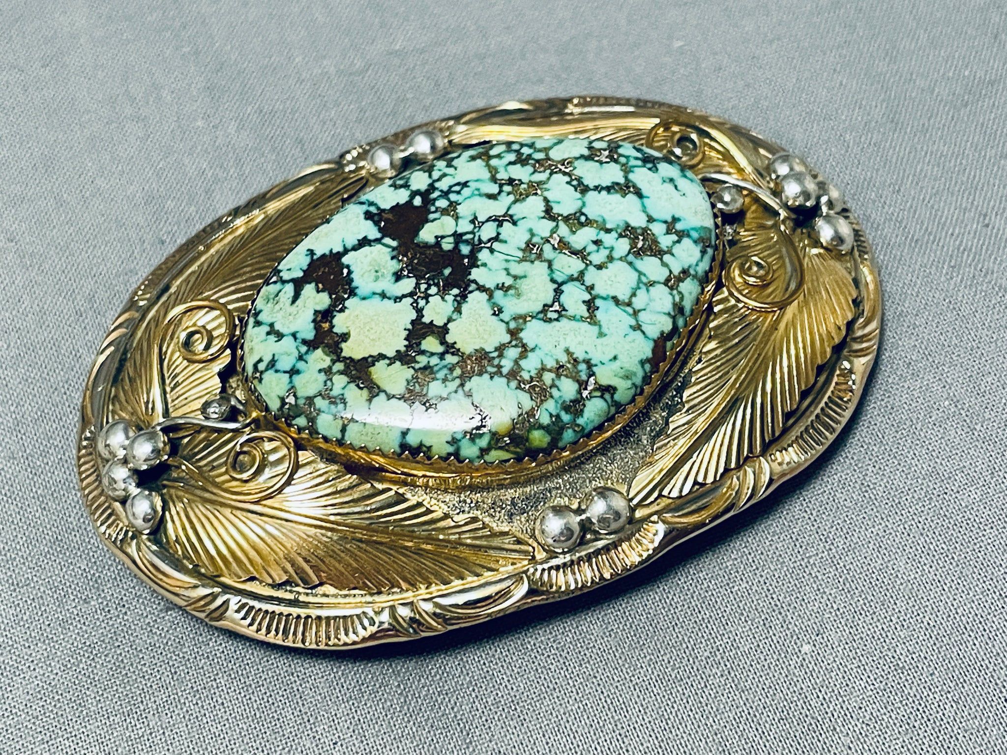 One Of The Best Vintage Native American Navajo Gold Sterling Silver Turquoise Buckle