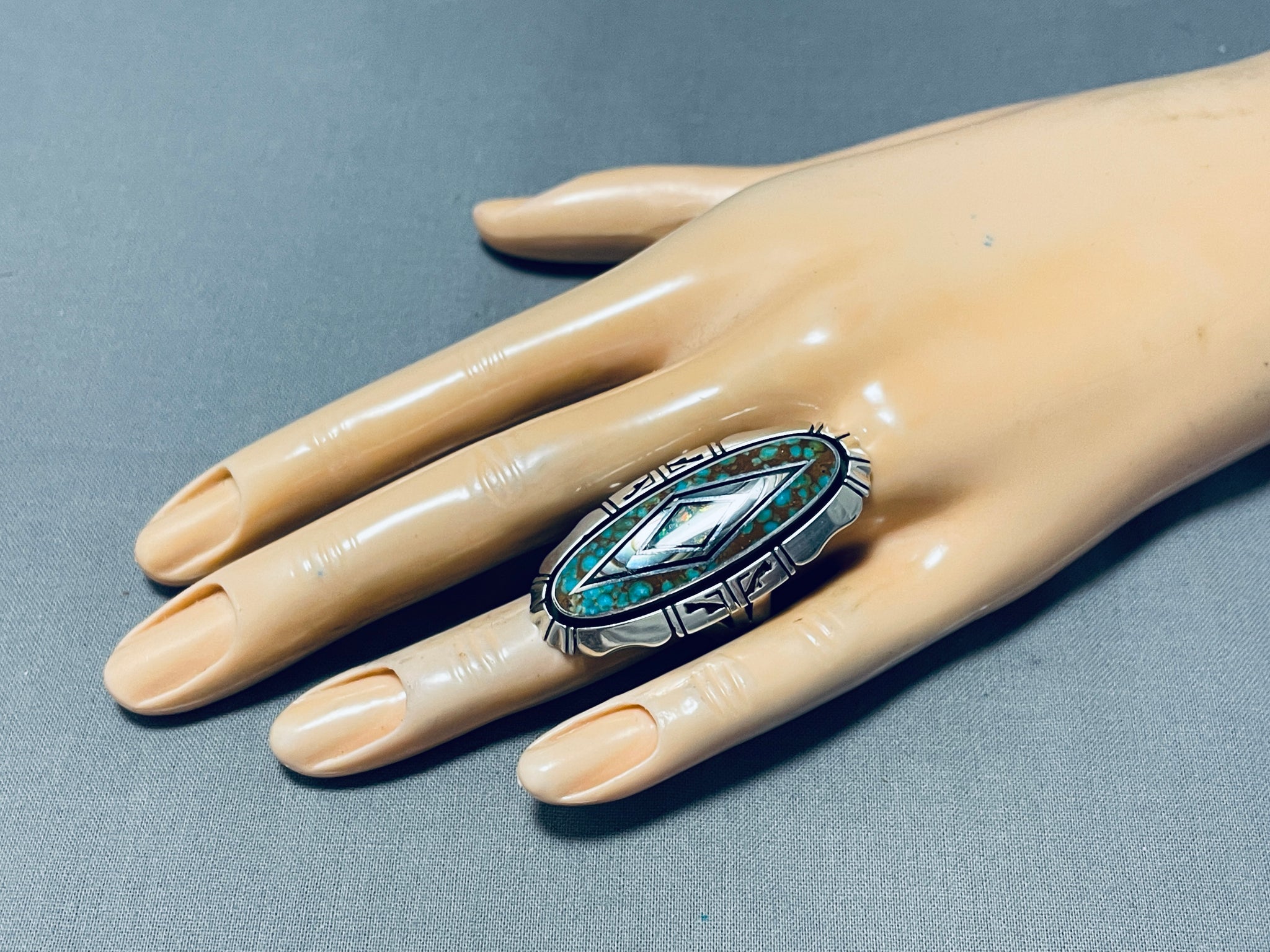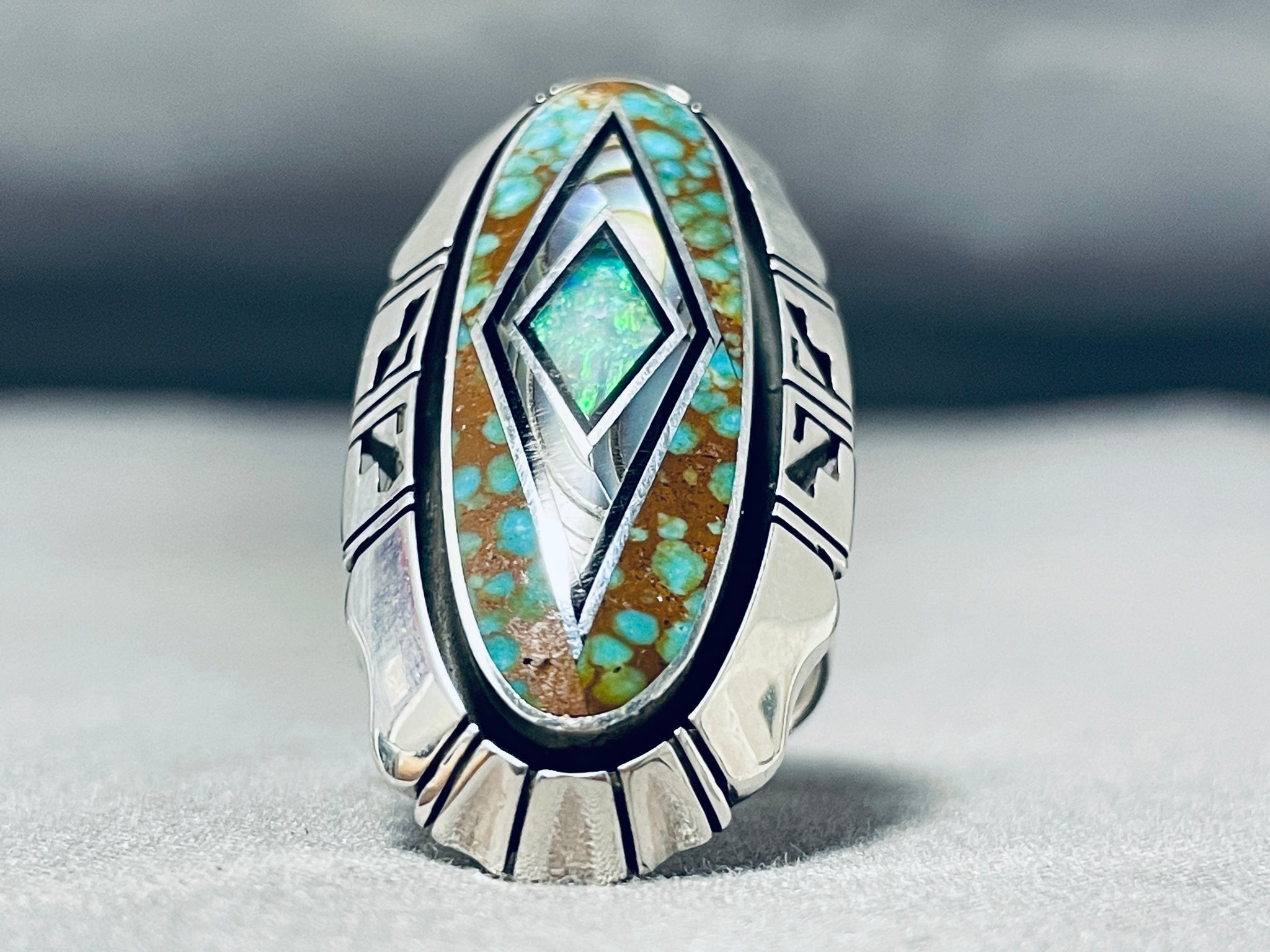 One Of The Best Vintage Native American Navajo Green Turquoise Opal Sterling Silver Ring