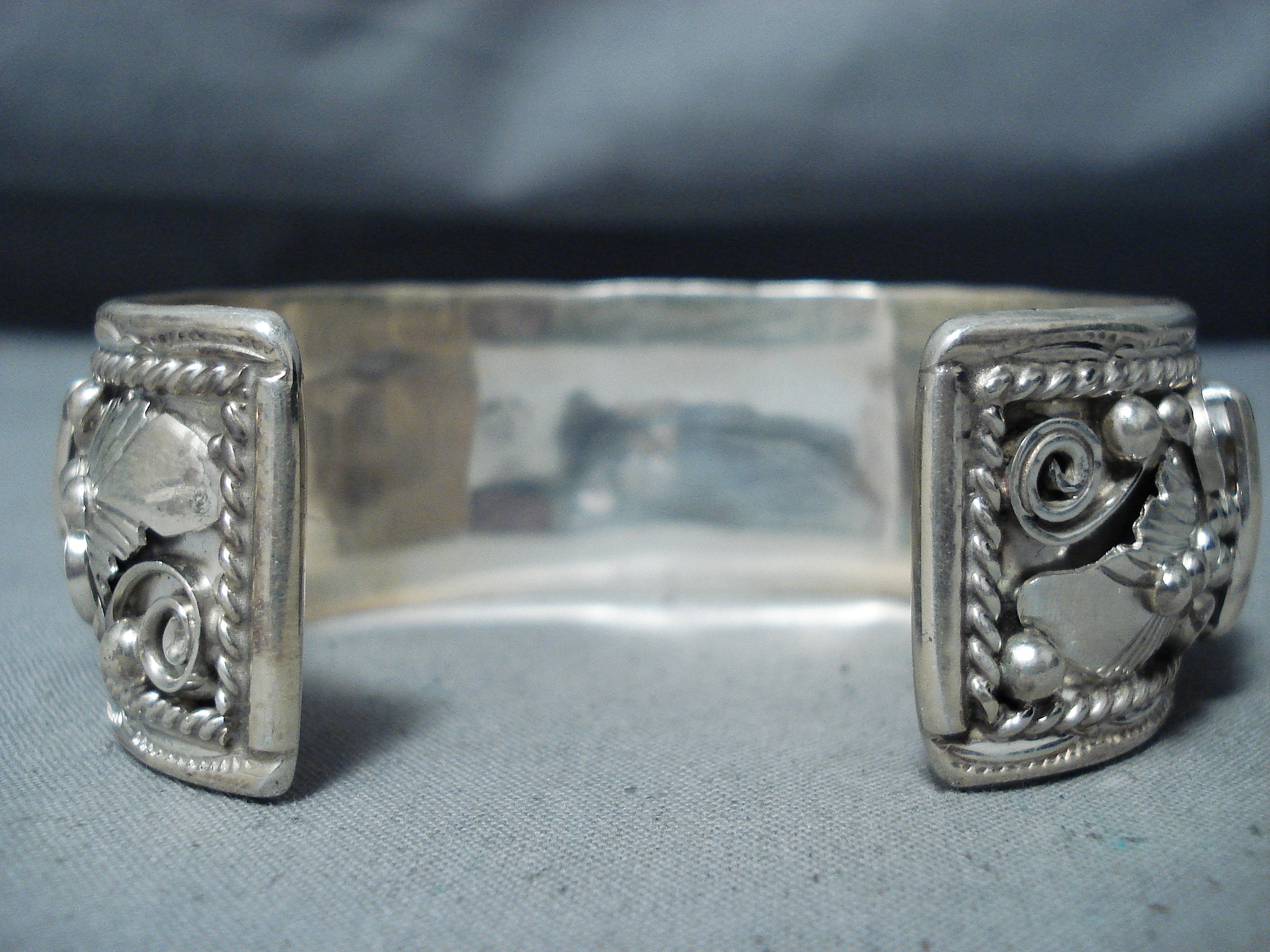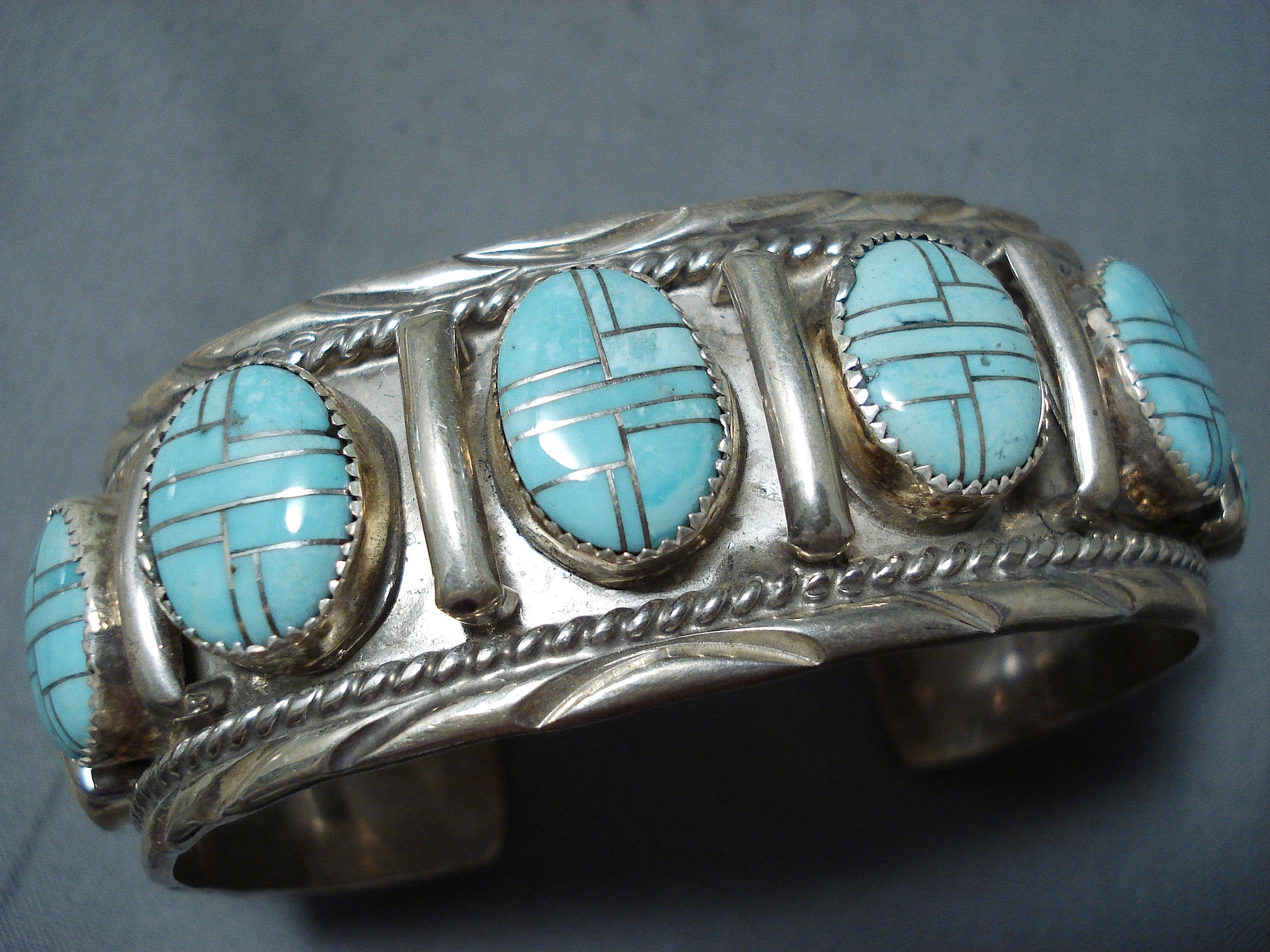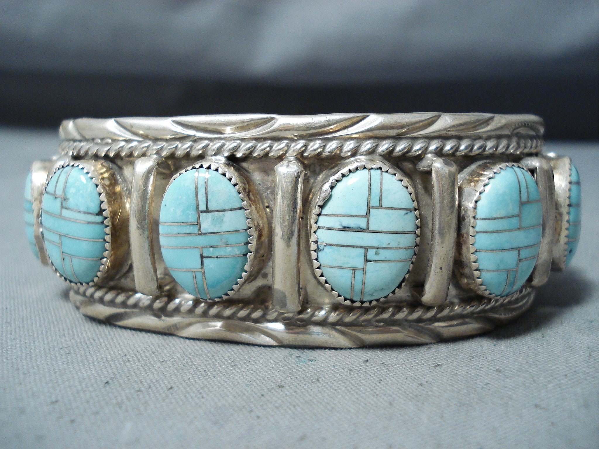 One Of The Best Vintage Native American Navajo Inlaid Turquoise Sterling Silver Bracelet
