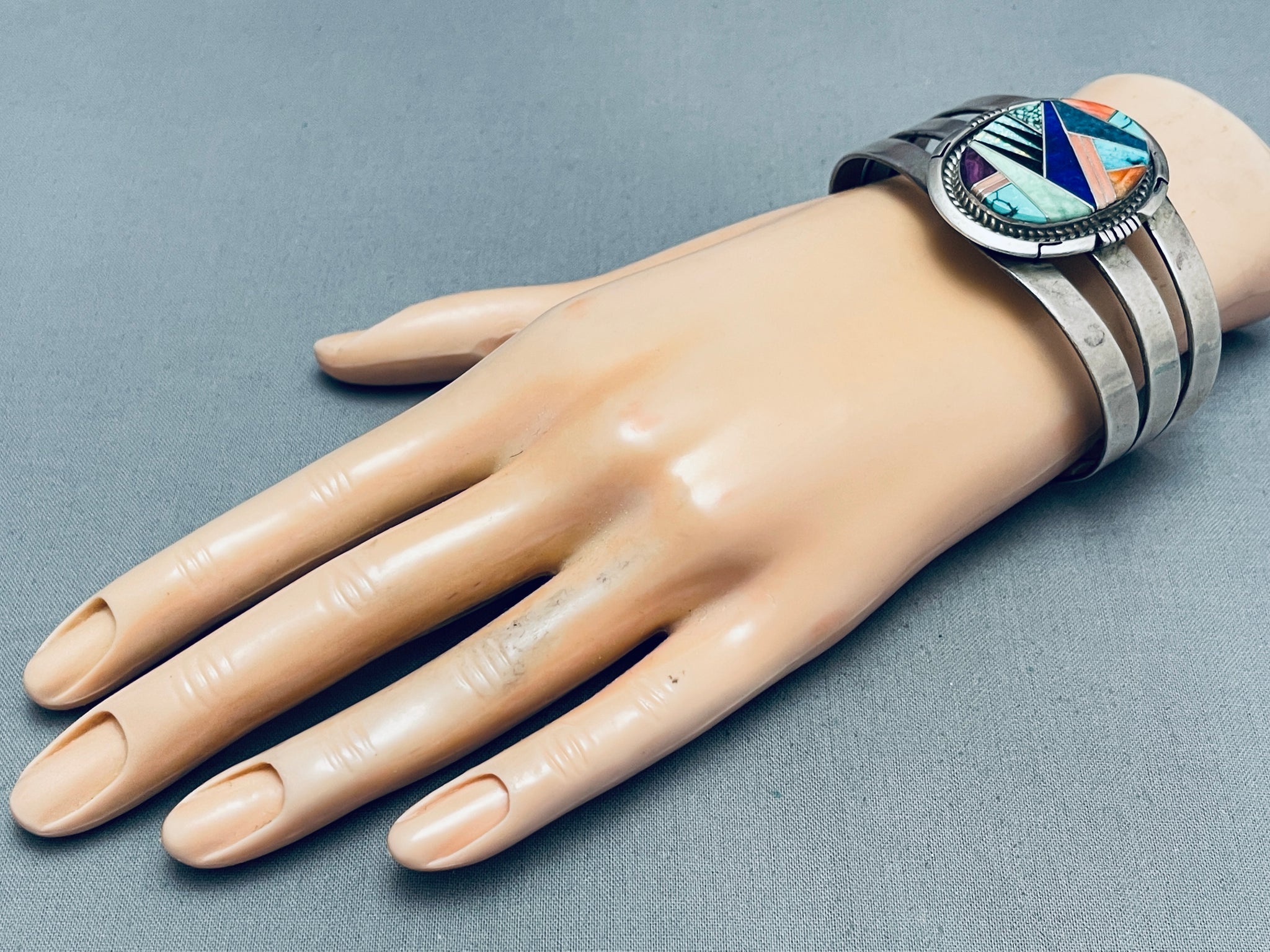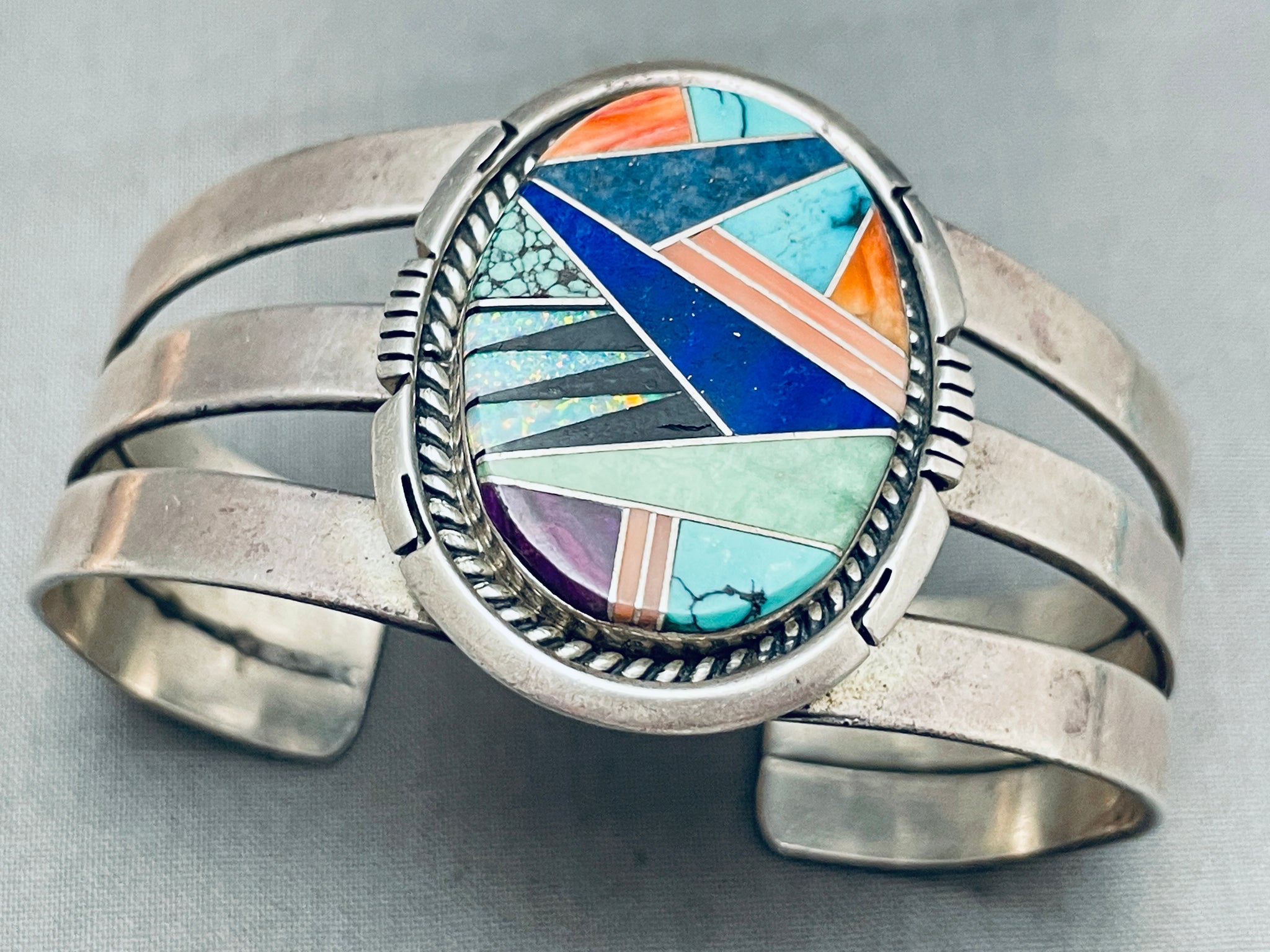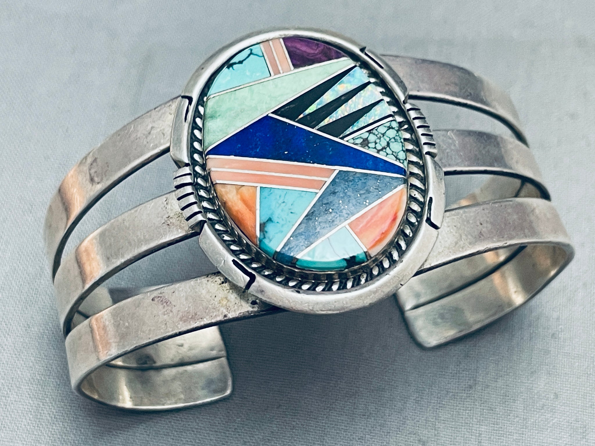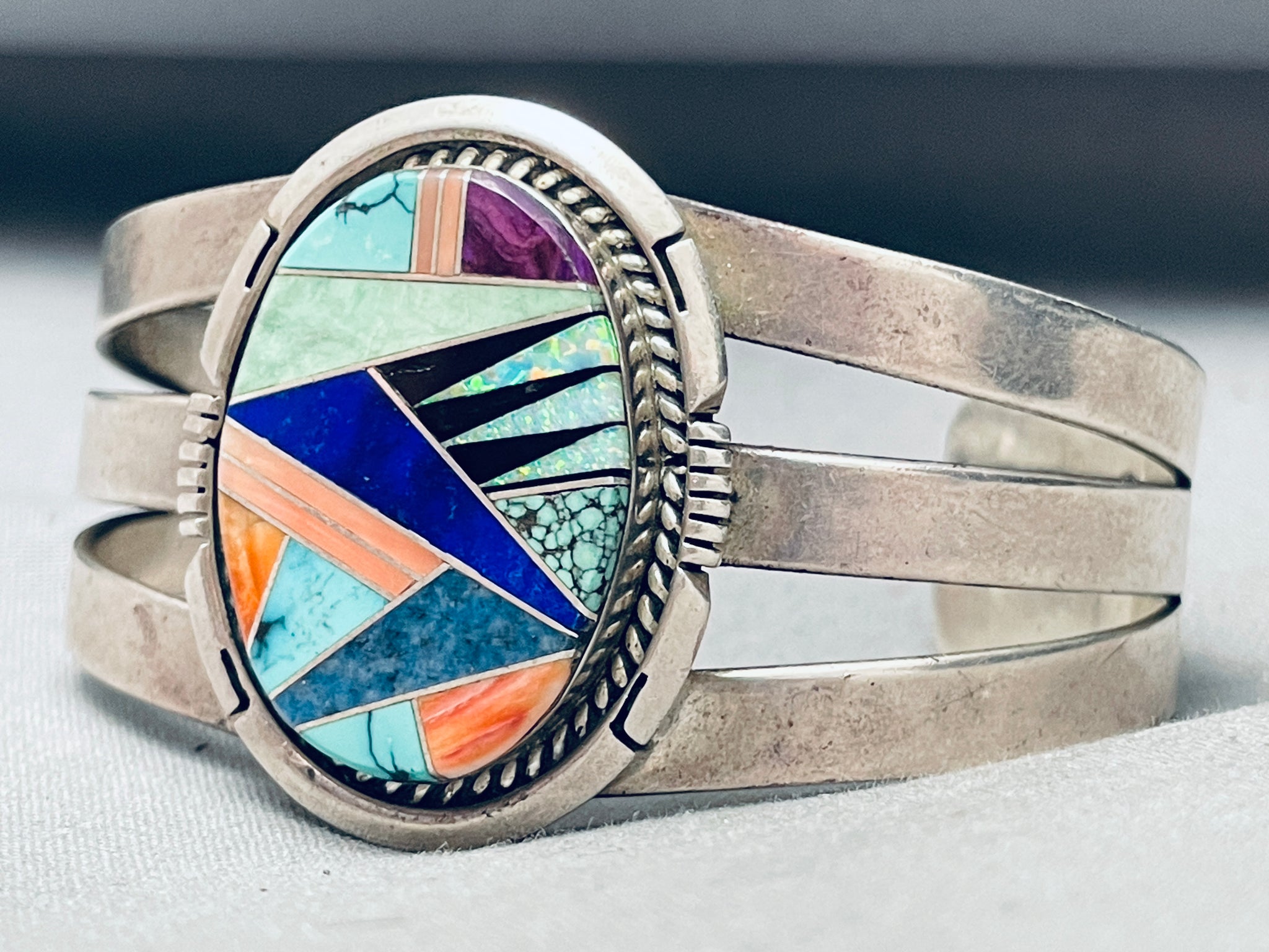 One Of The Best Vintage Native American Navajo Inlay Turquosie Sterling Silver Bracelet