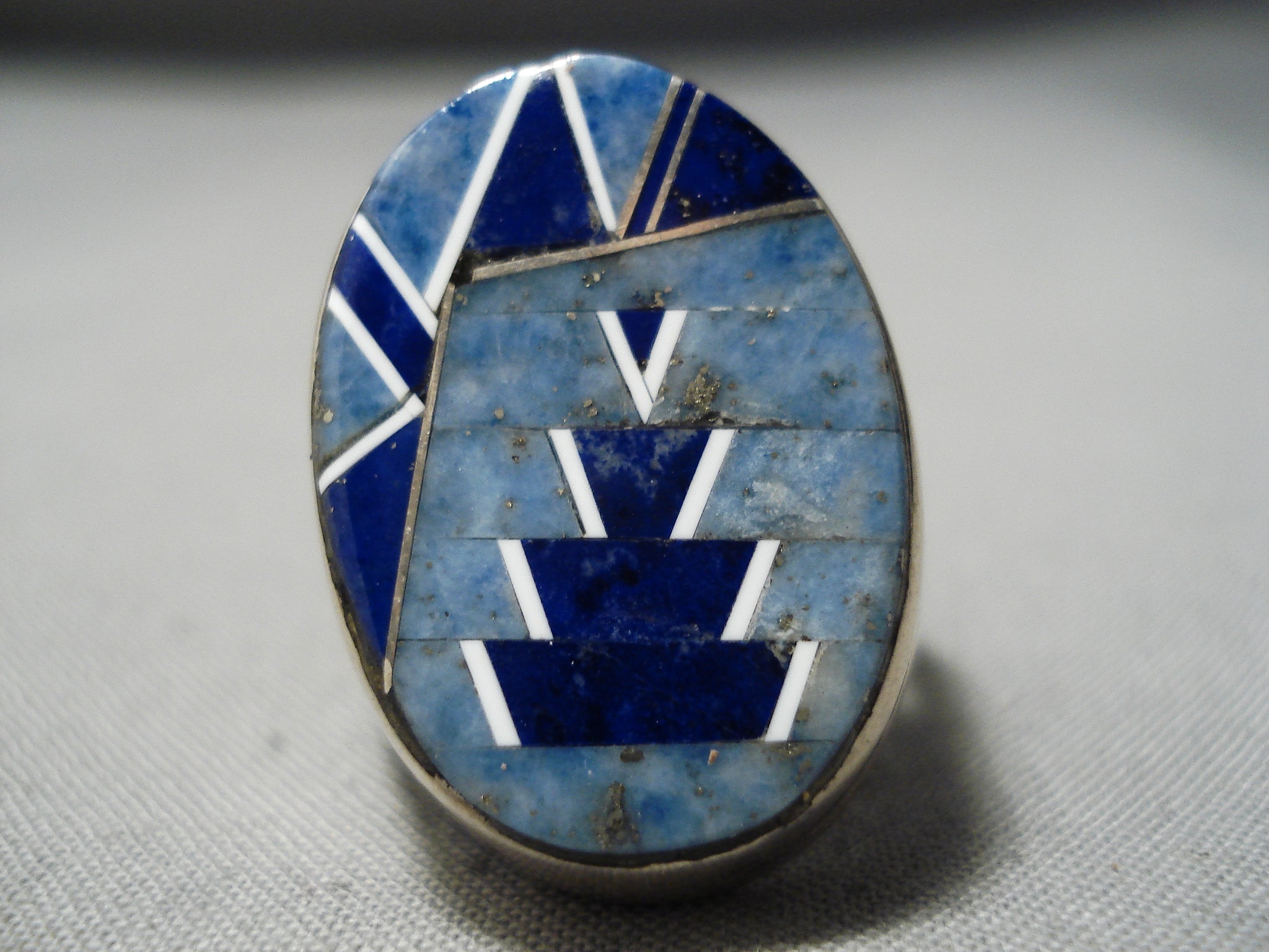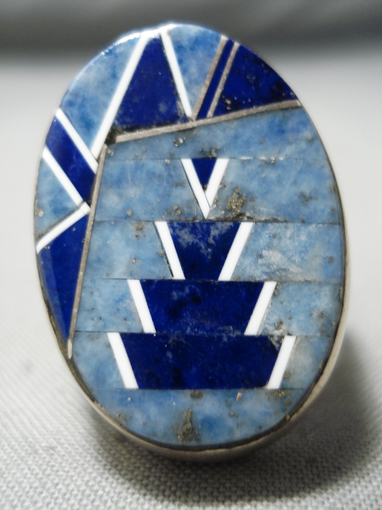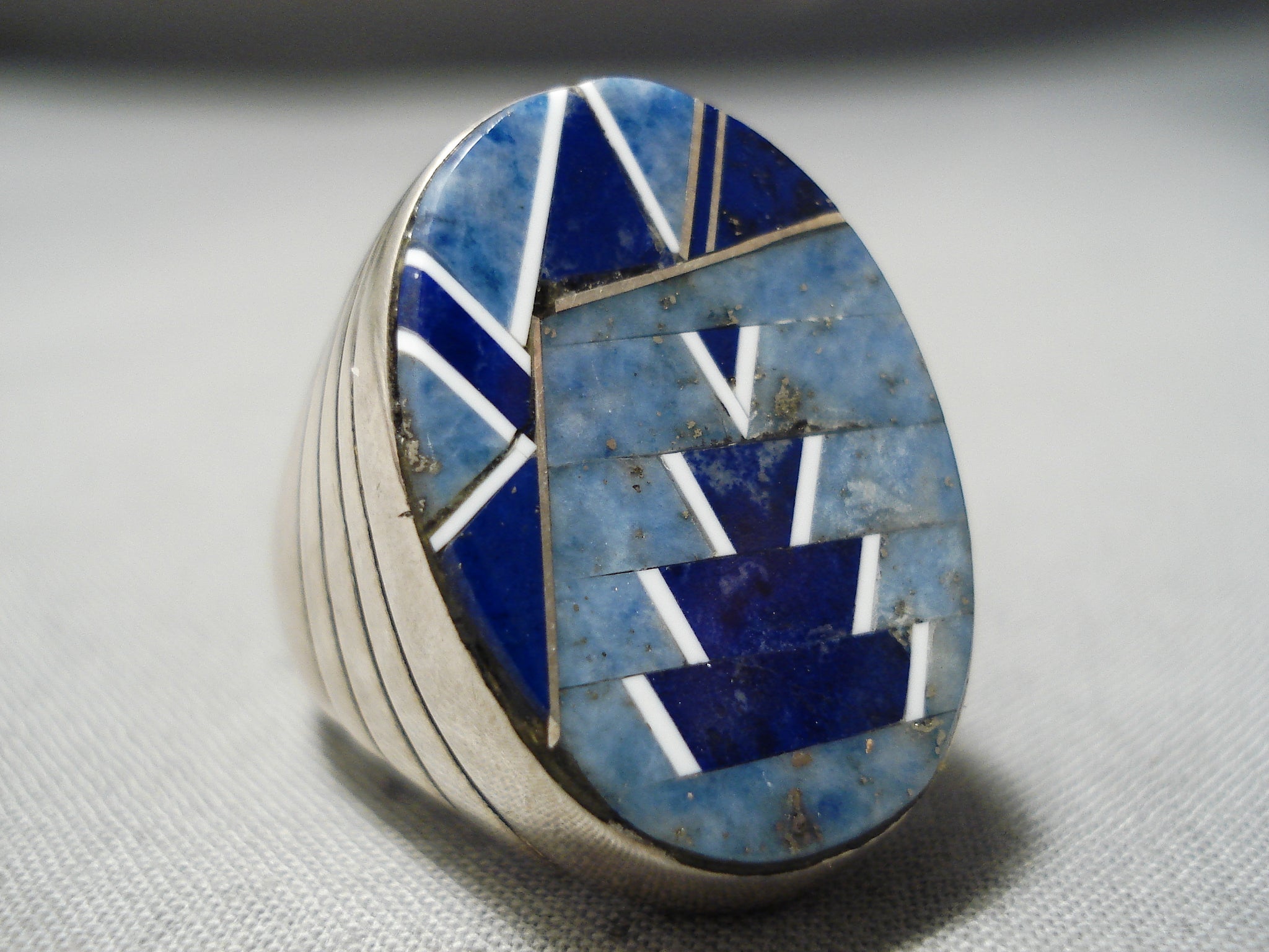 One Of The Best Vintage Native American Navajo Lapis Inlay Sterling Silver Heavy Ring