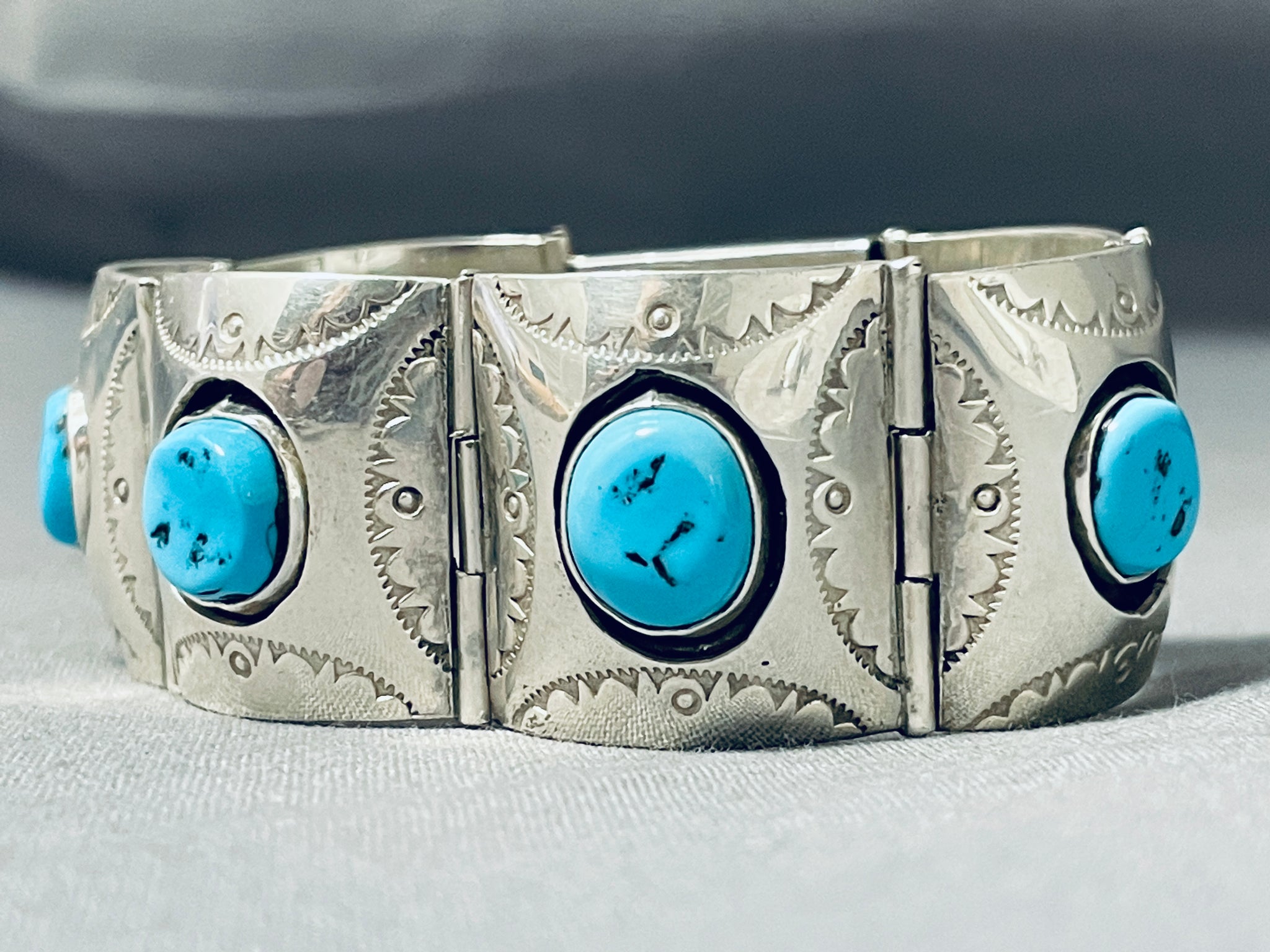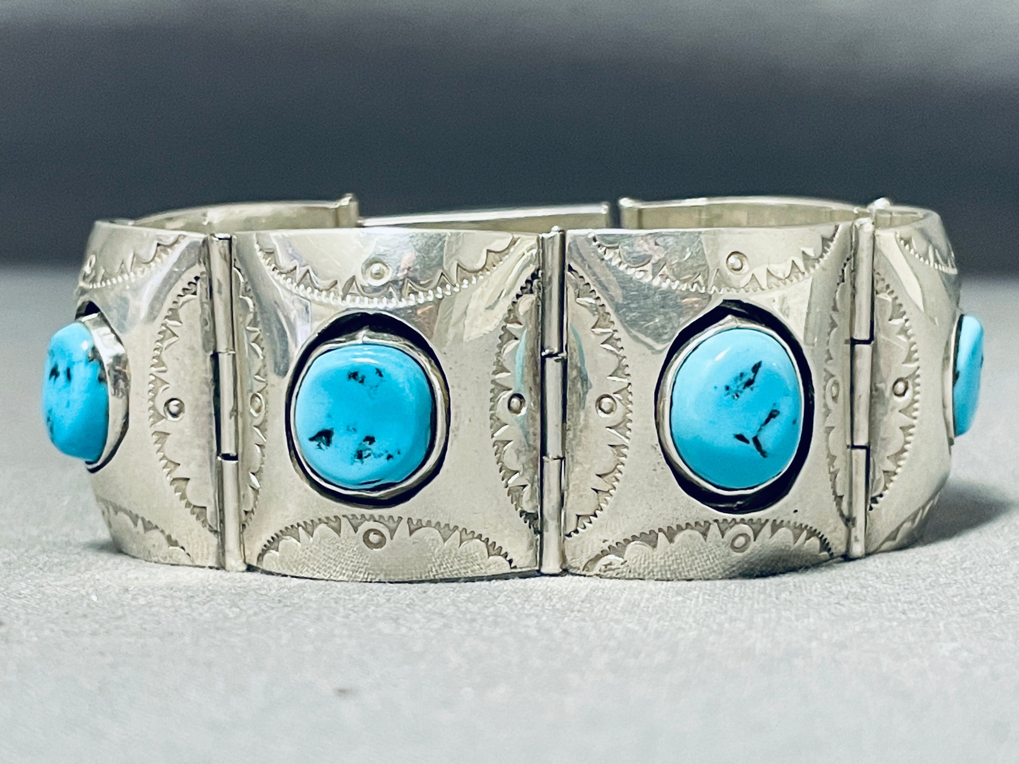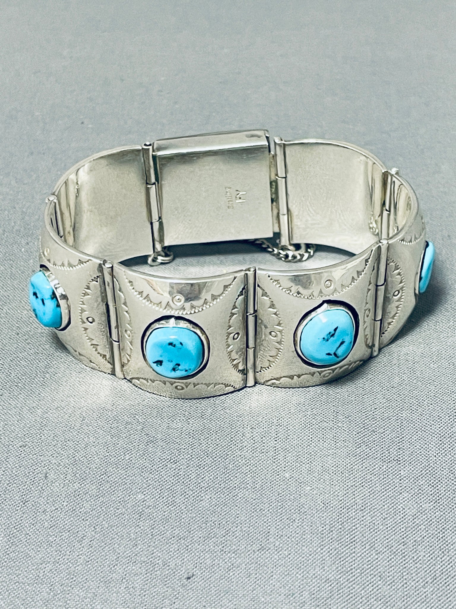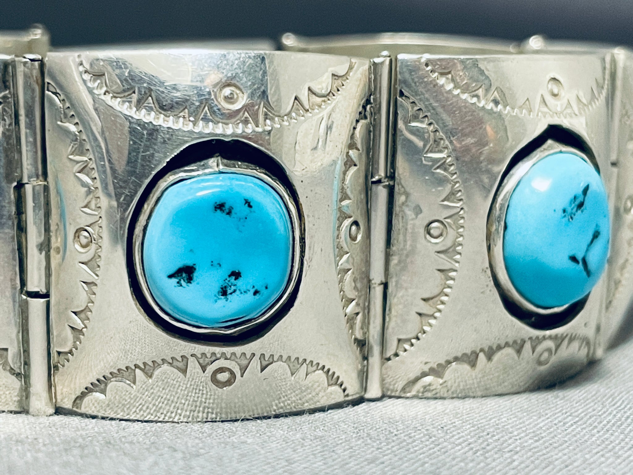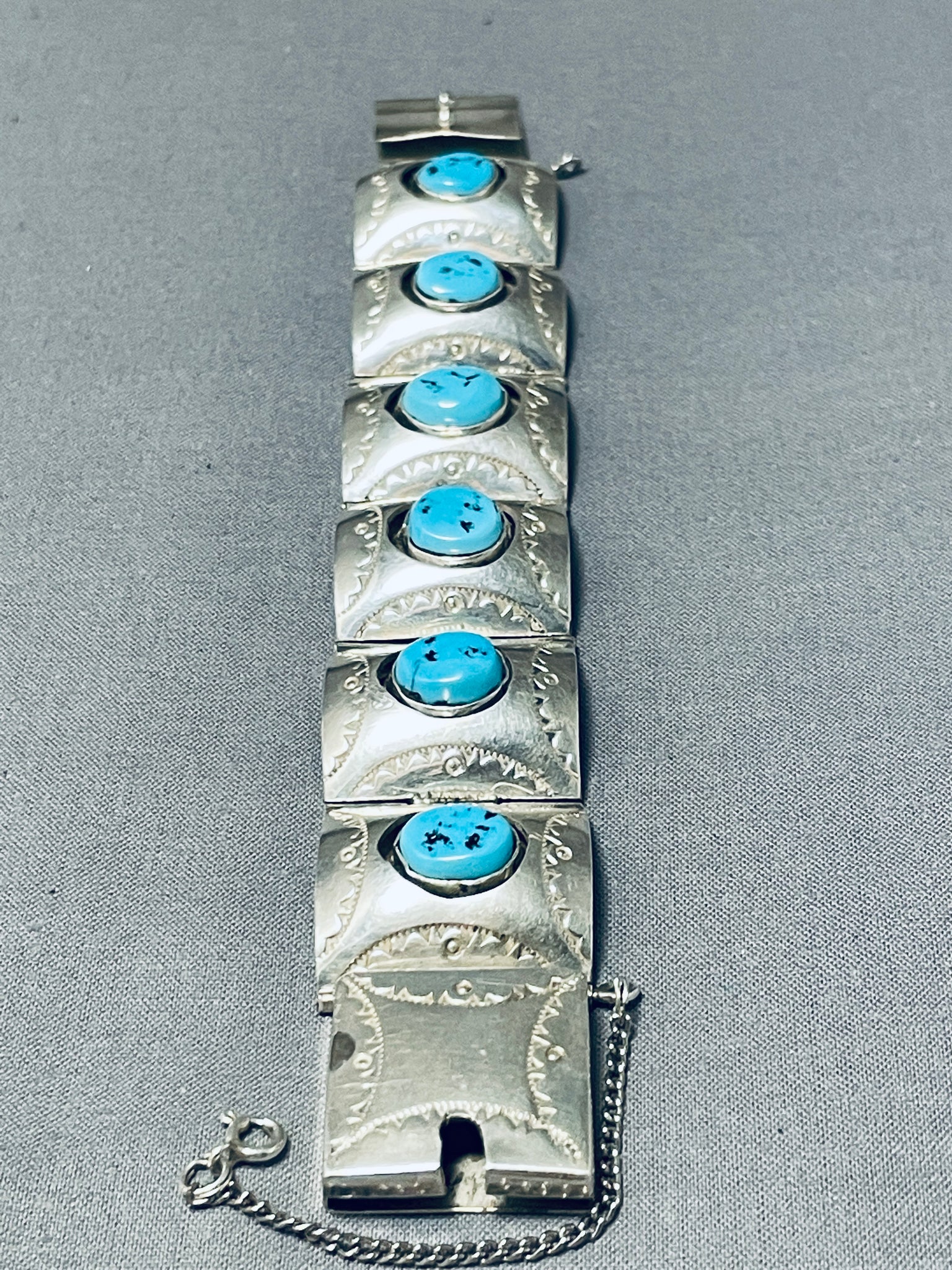 One Of The Best Vintage Native American Navajo Link Sterling Silver Turquoise Bracelet