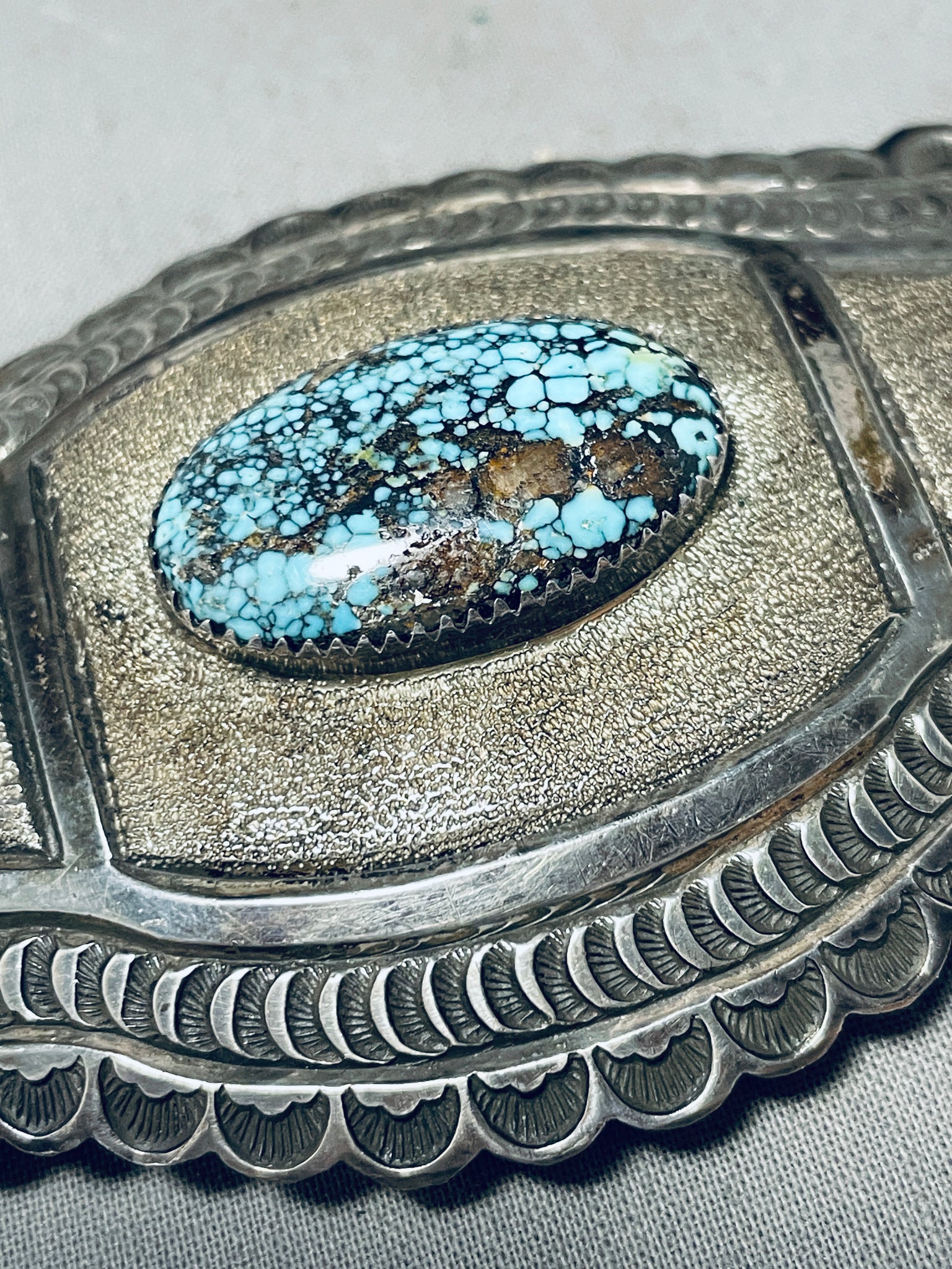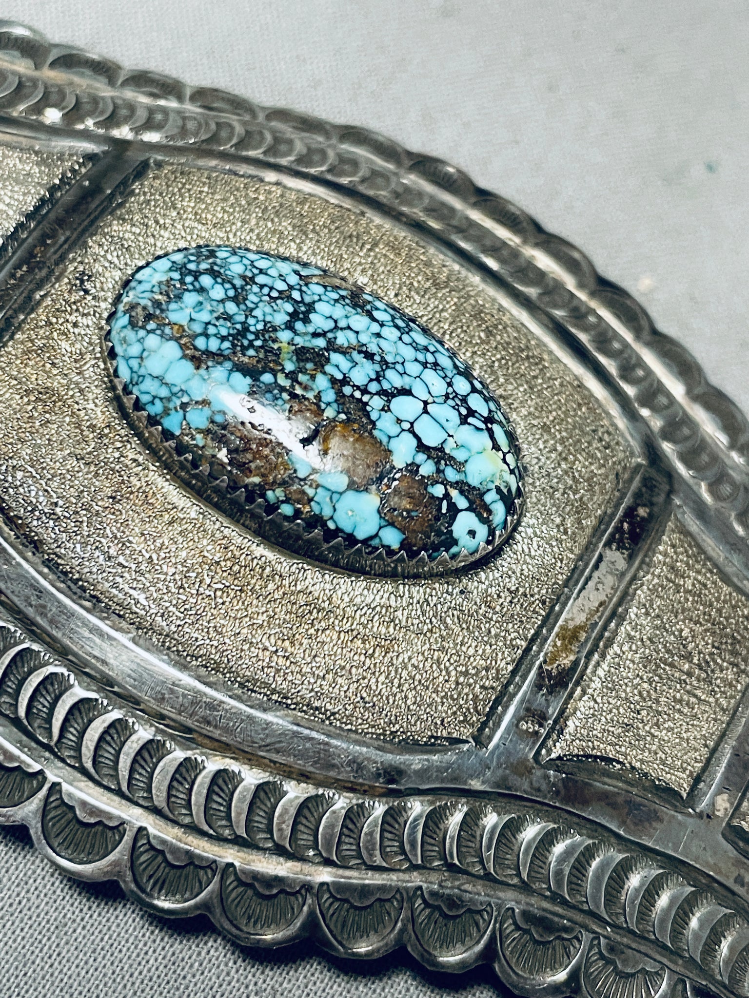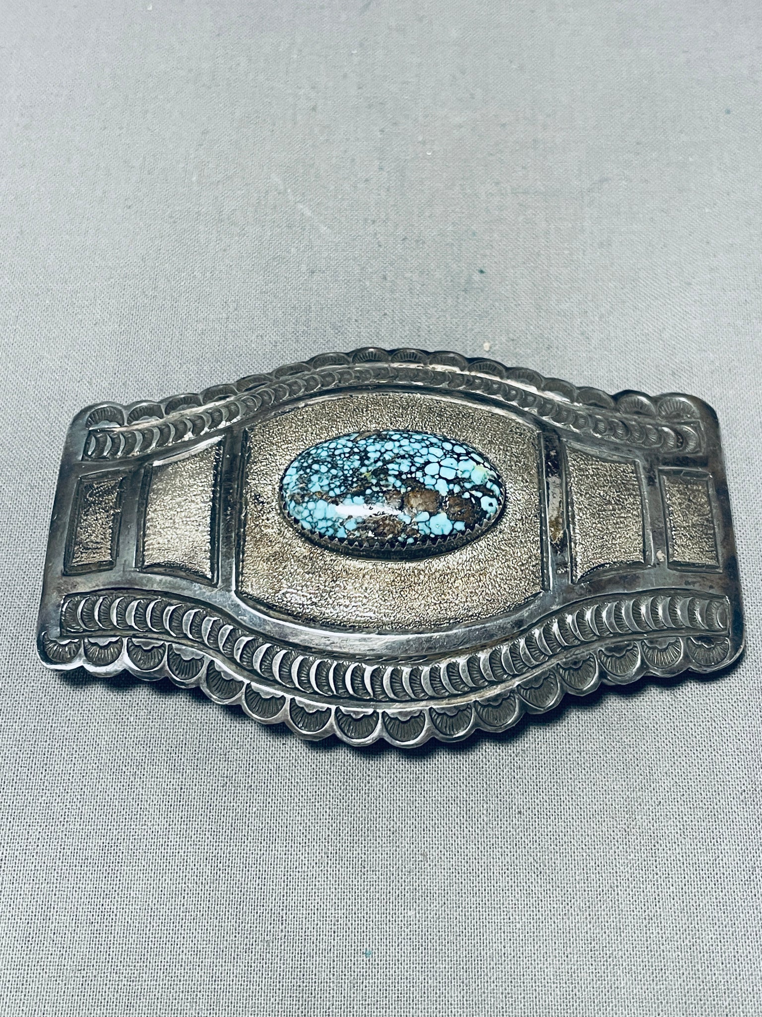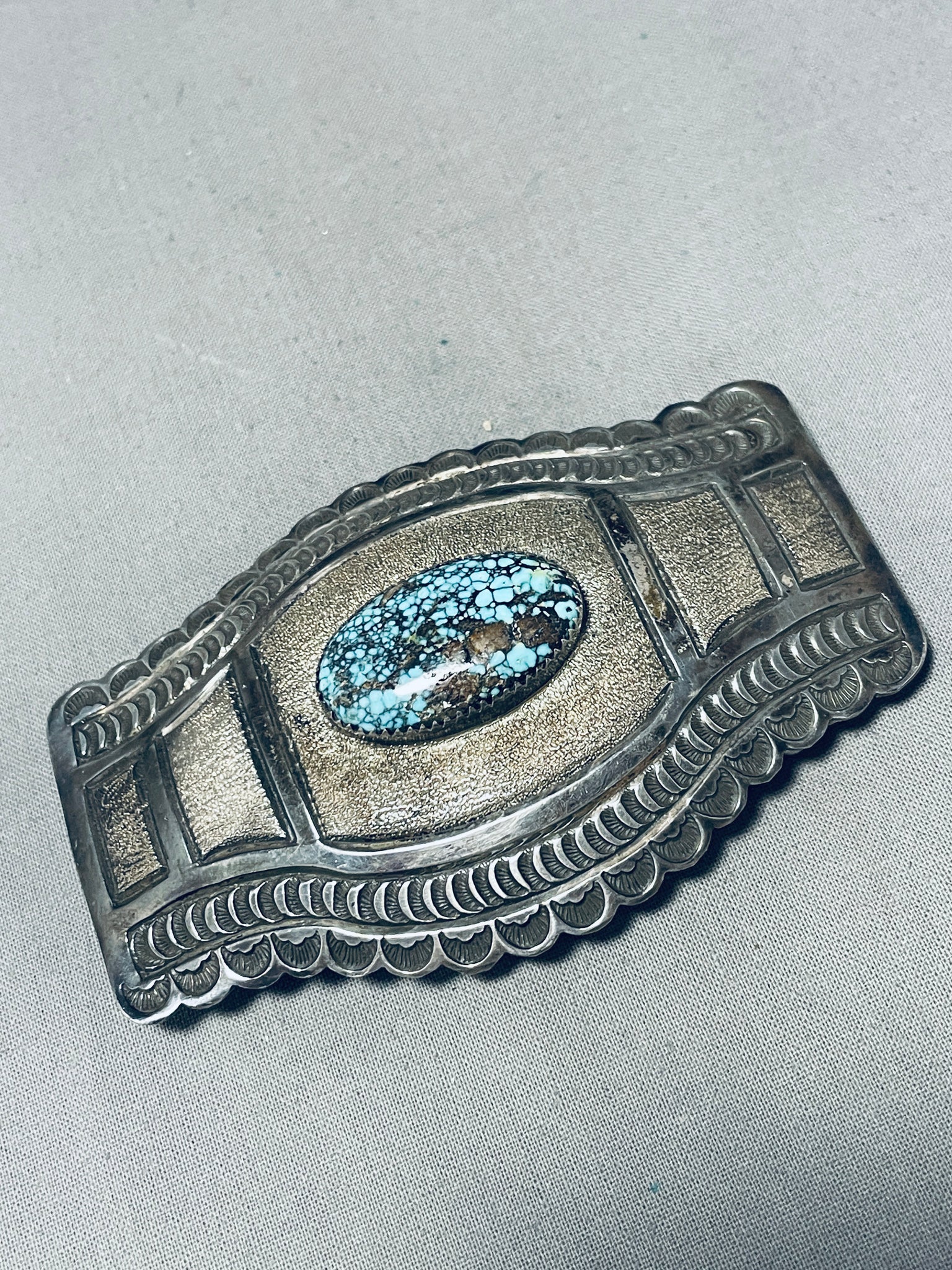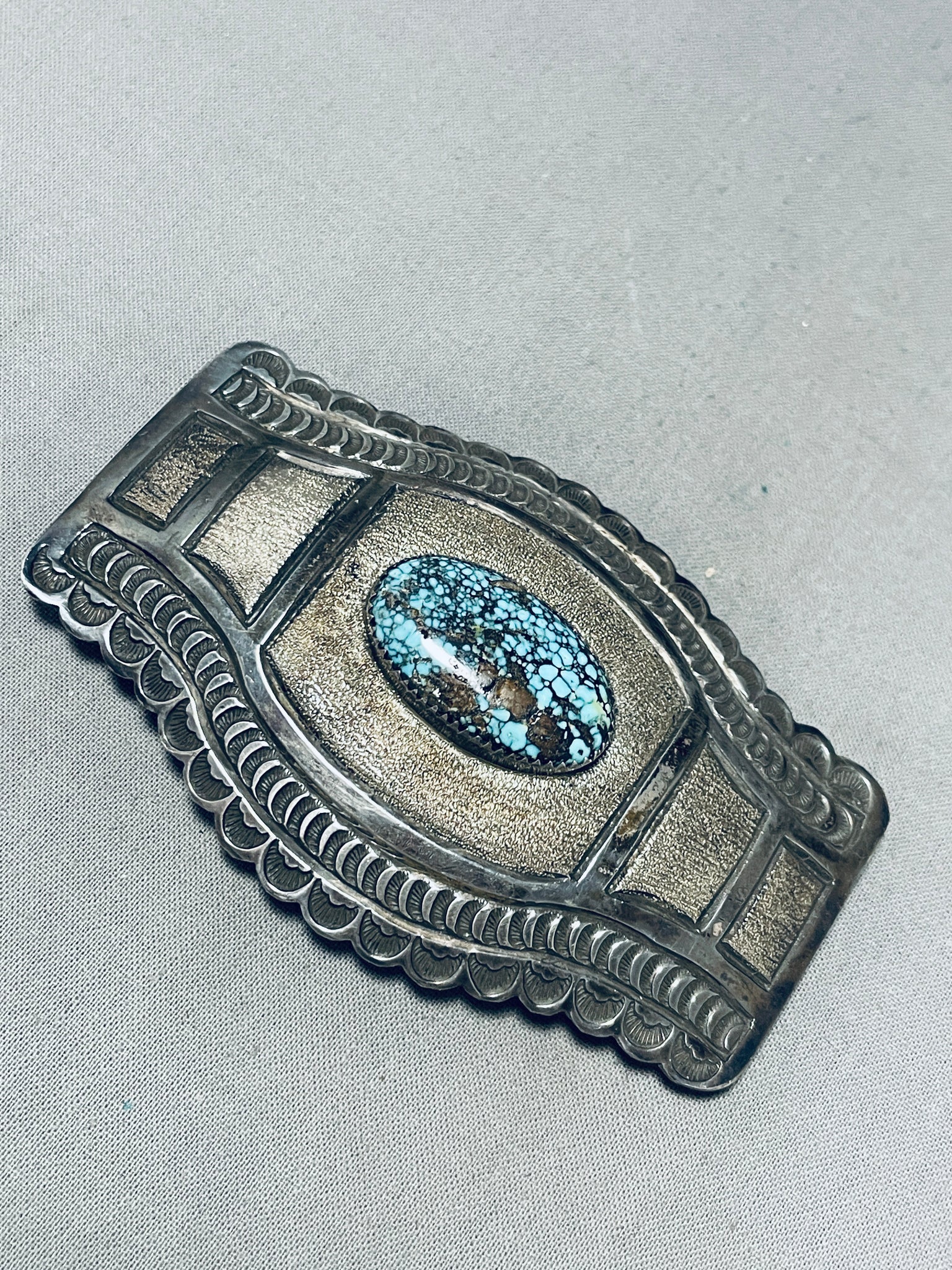 One Of The Best Vintage Native American Navajo Lone Mountasin Turquoise Sterling Silver Buckle