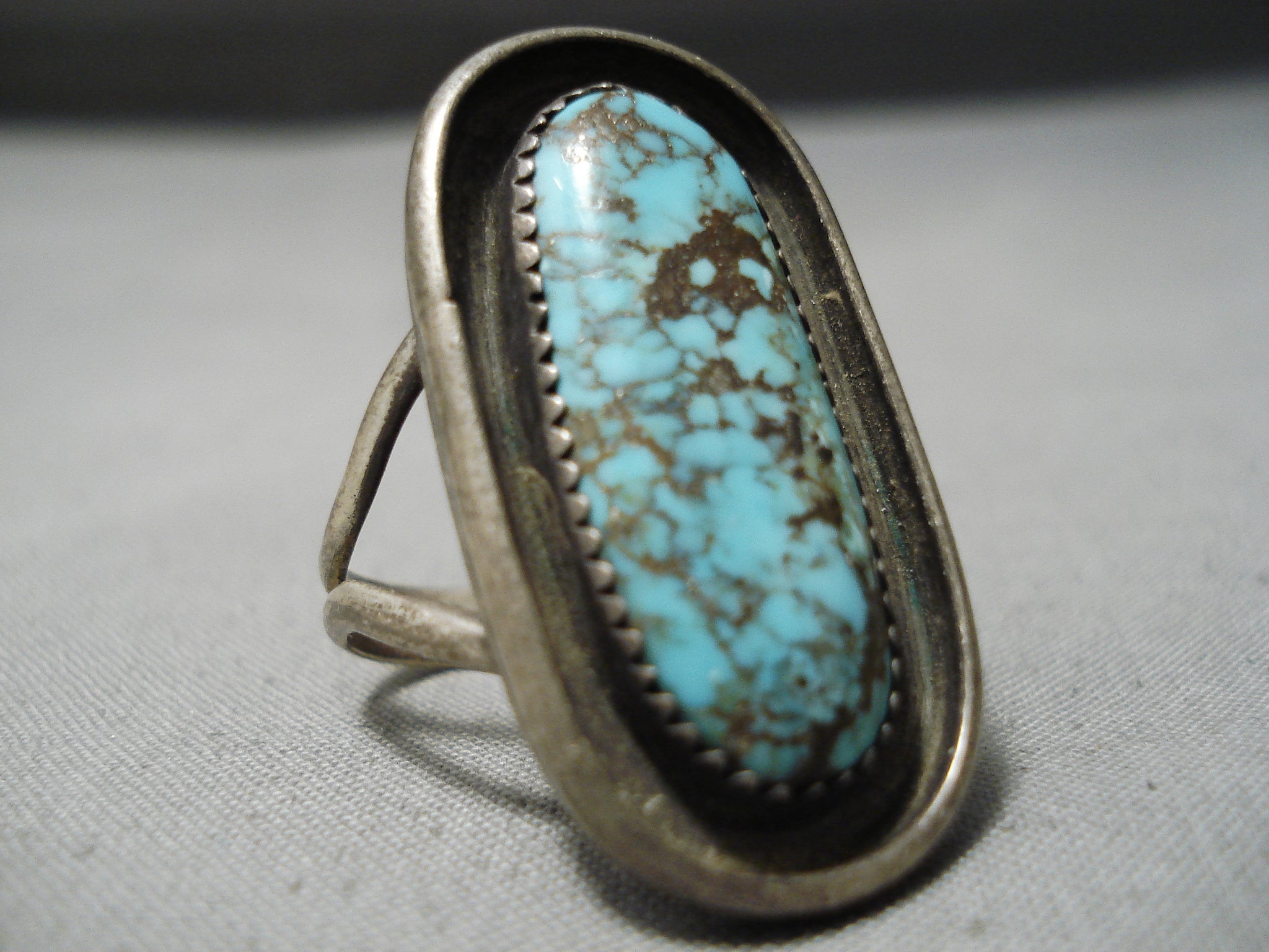 One Of The Best Vintage Native American Navajo Old Kingman Turquoise Sterling Silver Ring